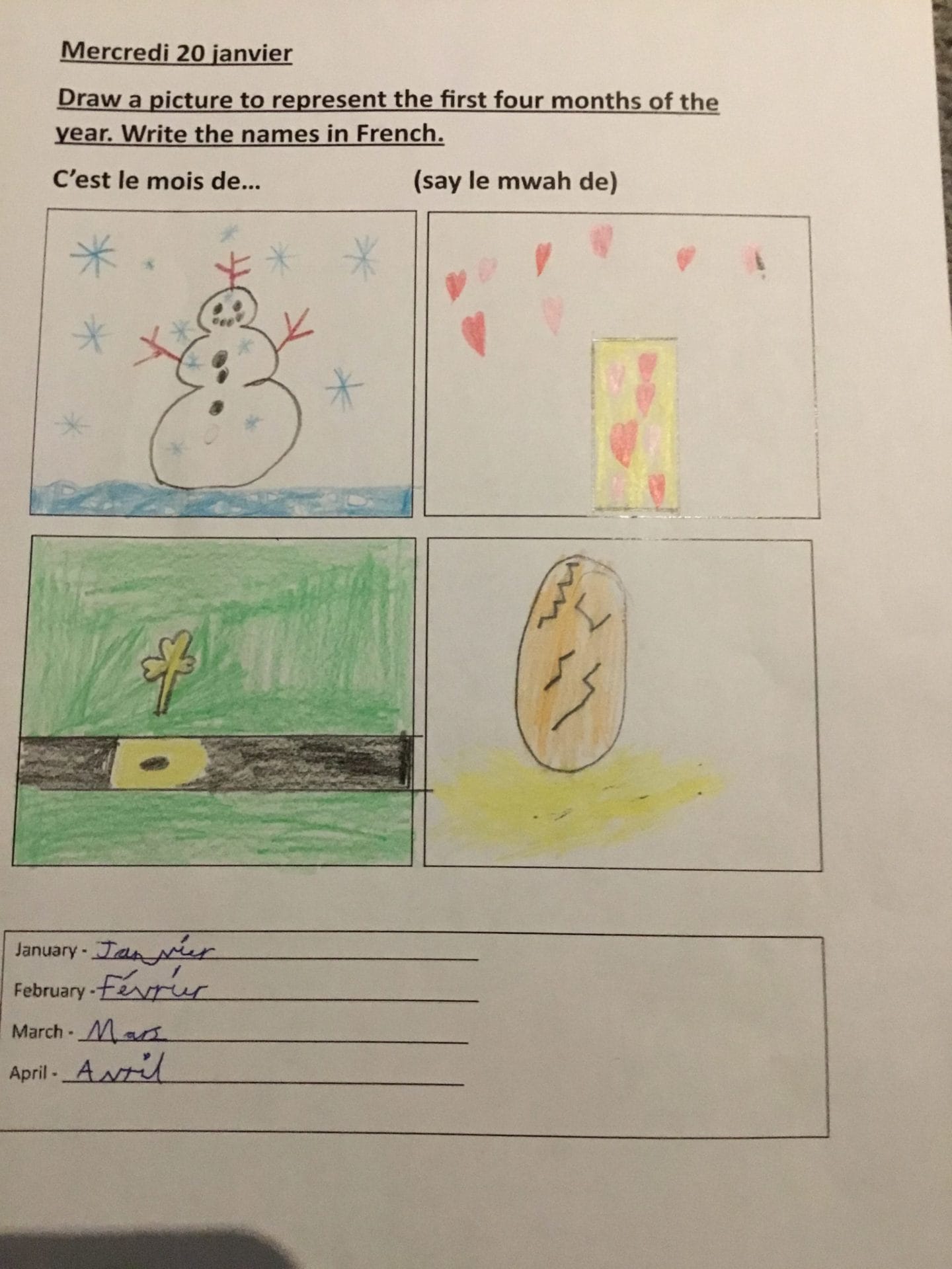 We have also completed some lovely pictures to represent the months and we have been learning to write the French names. Some pictures included for you to enjoy!