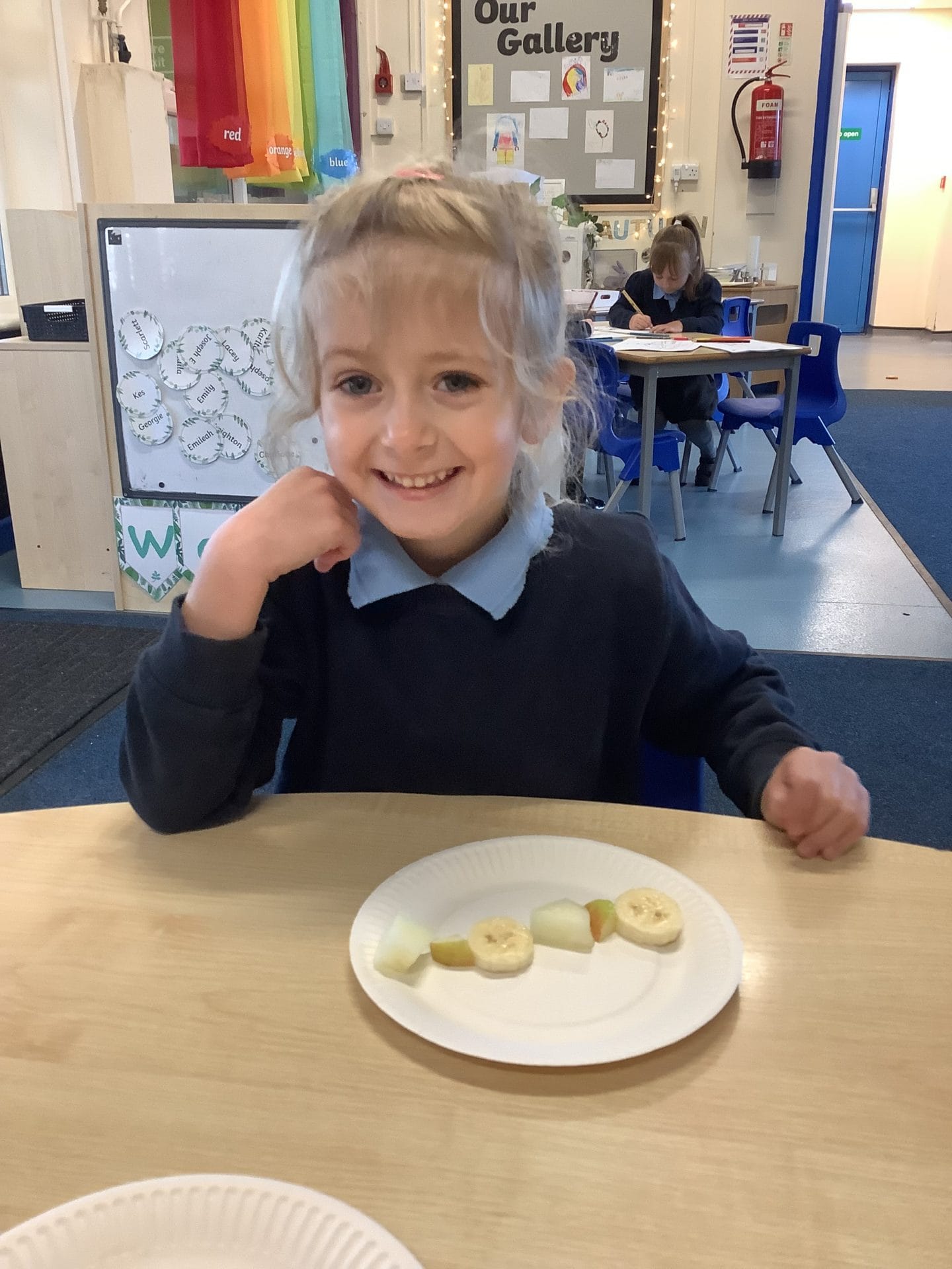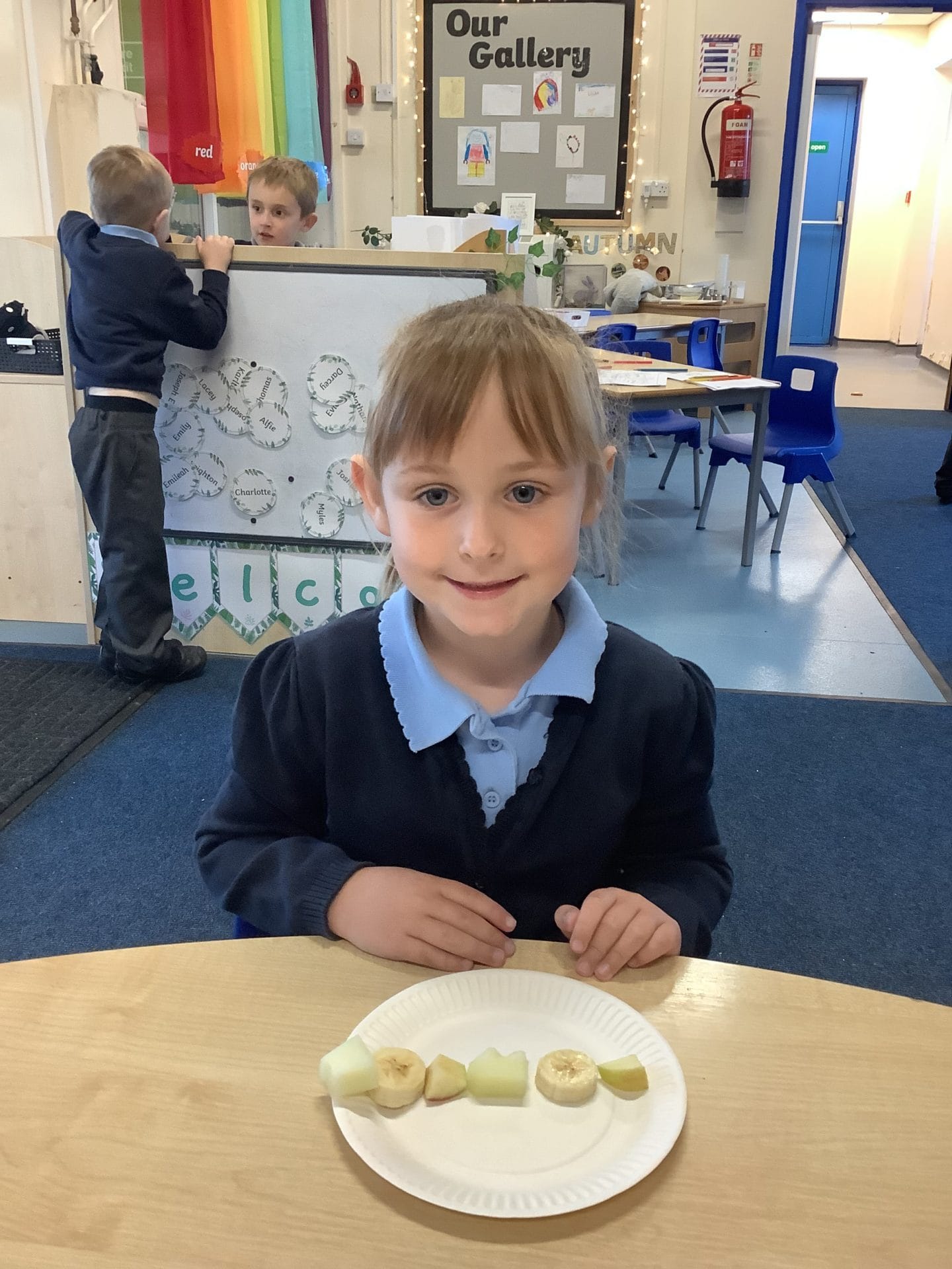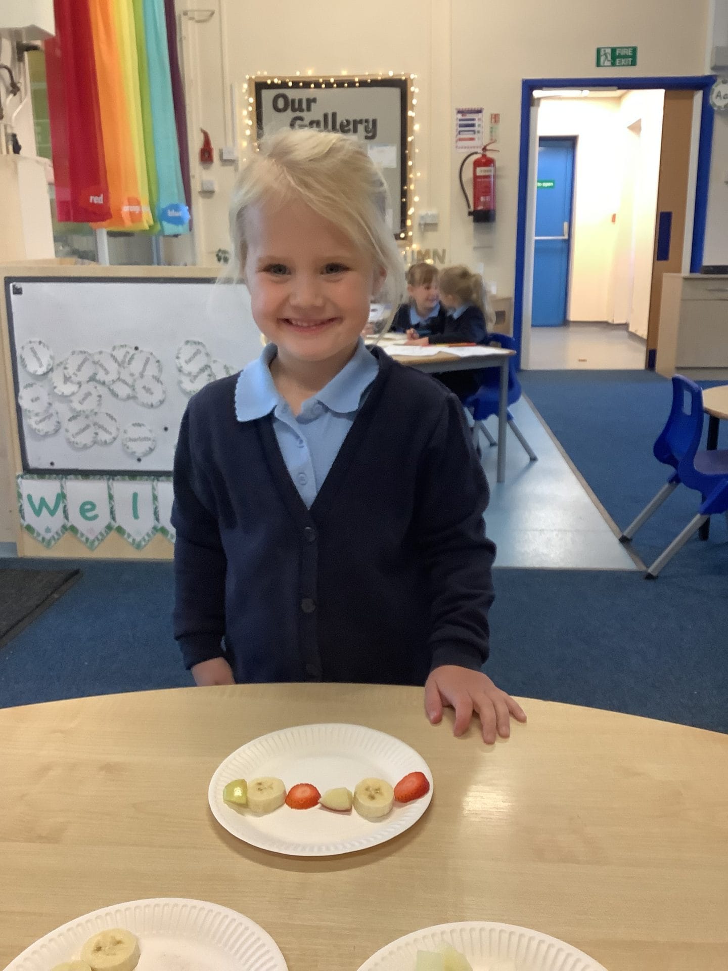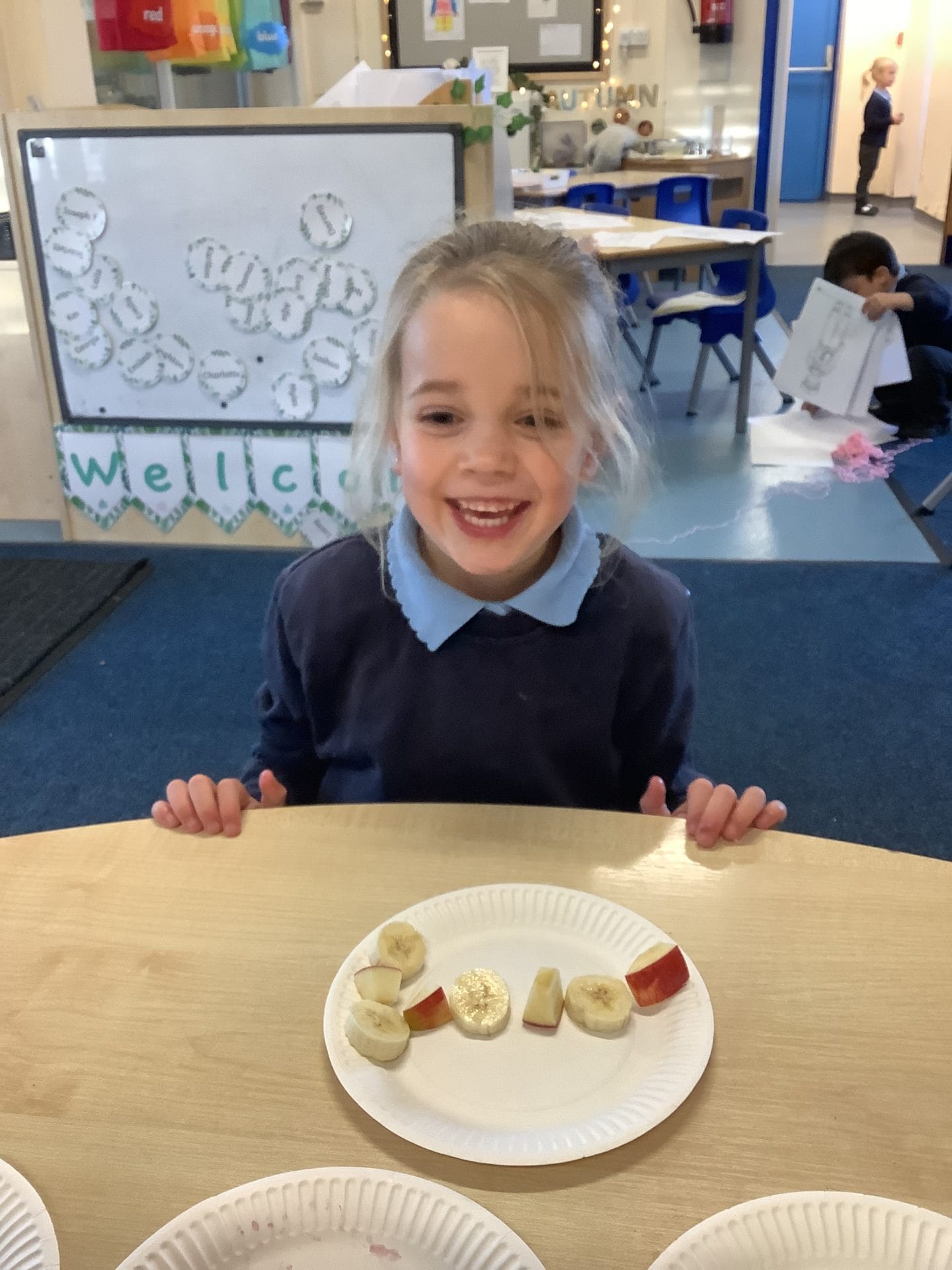 Reception made some healthy fruit kebabs as part of our upcoming food technology day. Since the children have been showing off their skills in pattern making, we challenged them to create their own repeating pattern using fruit.