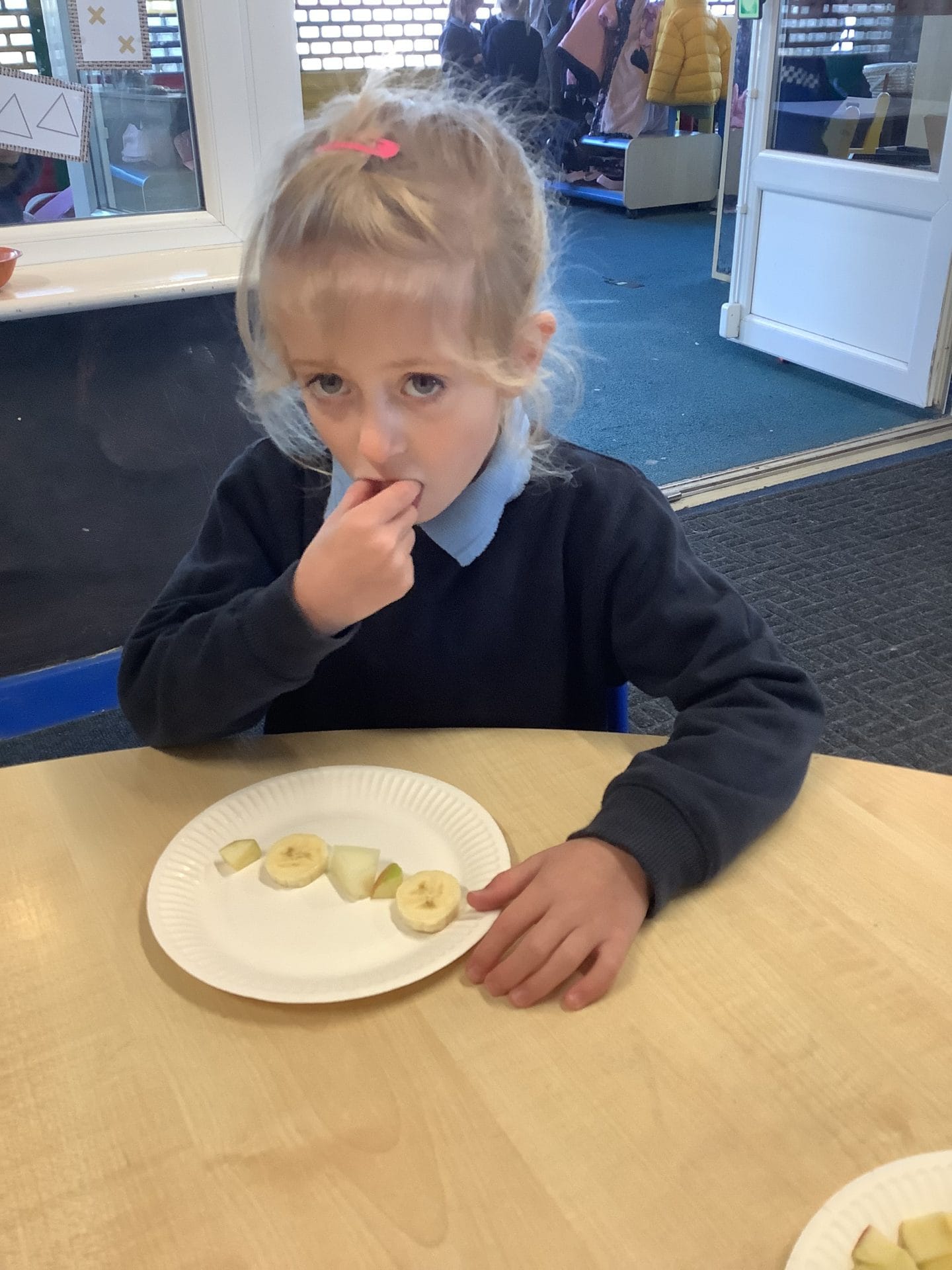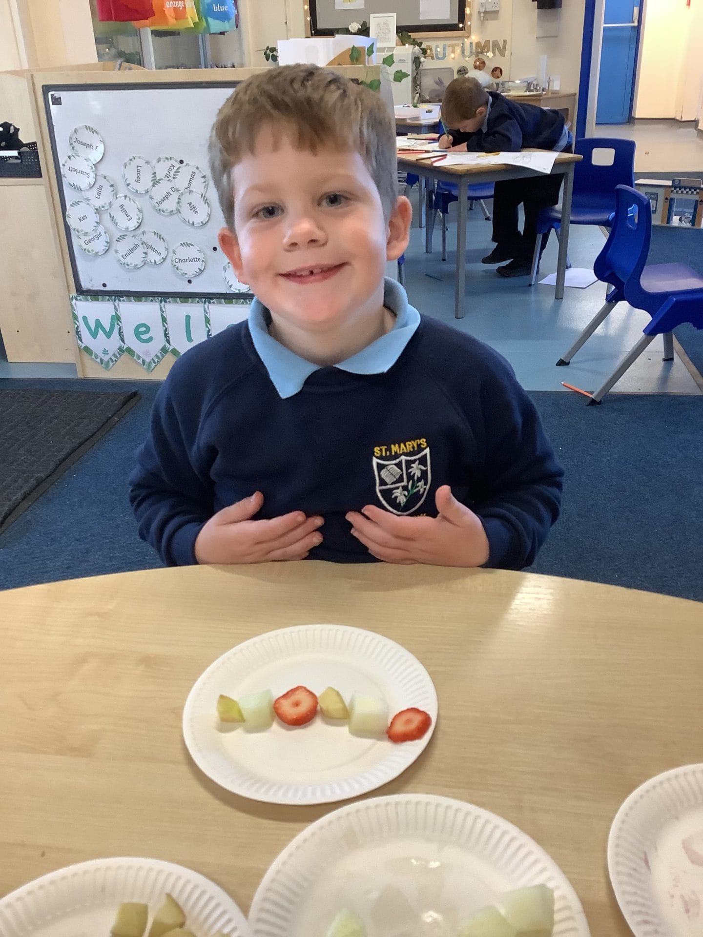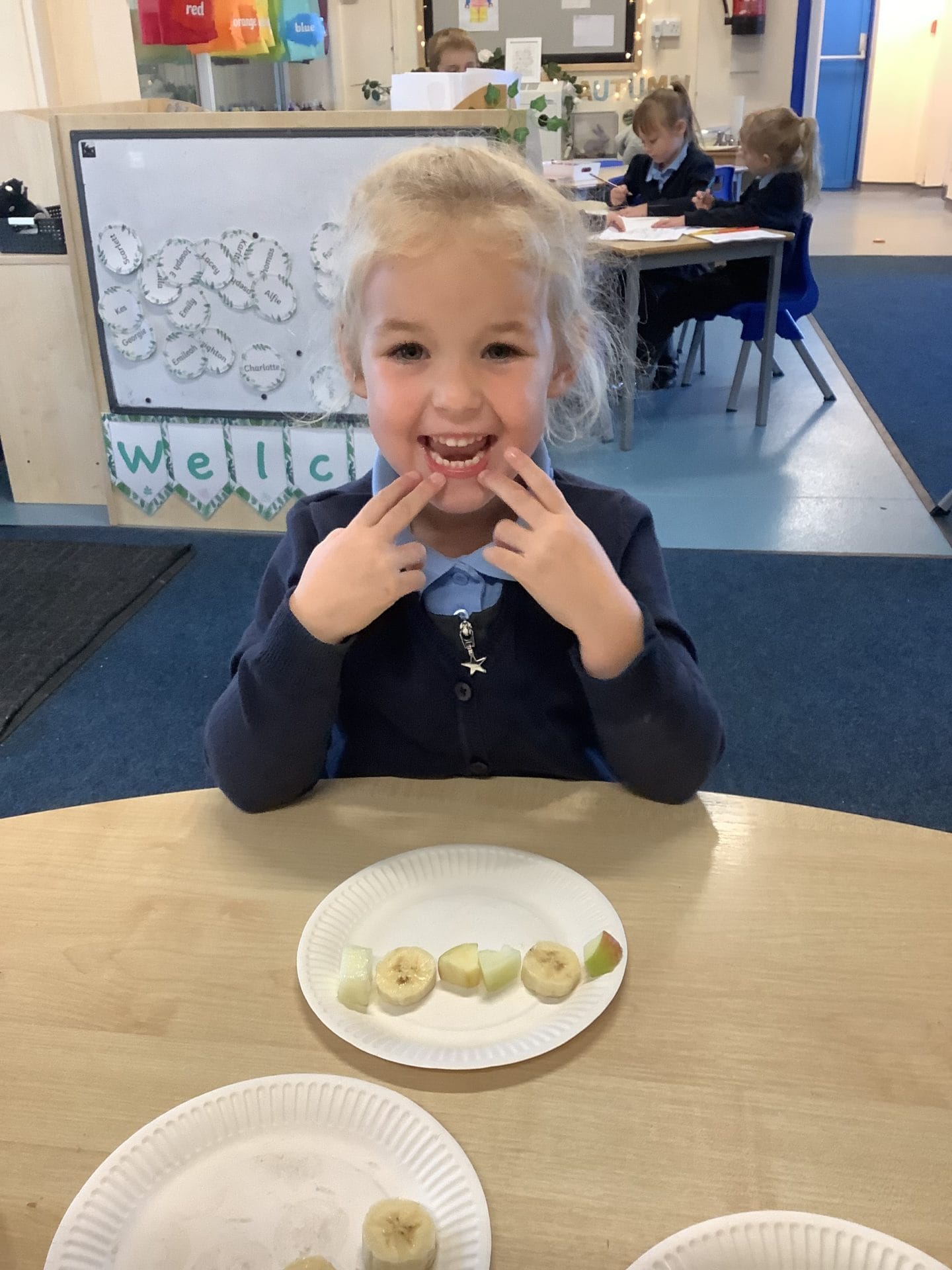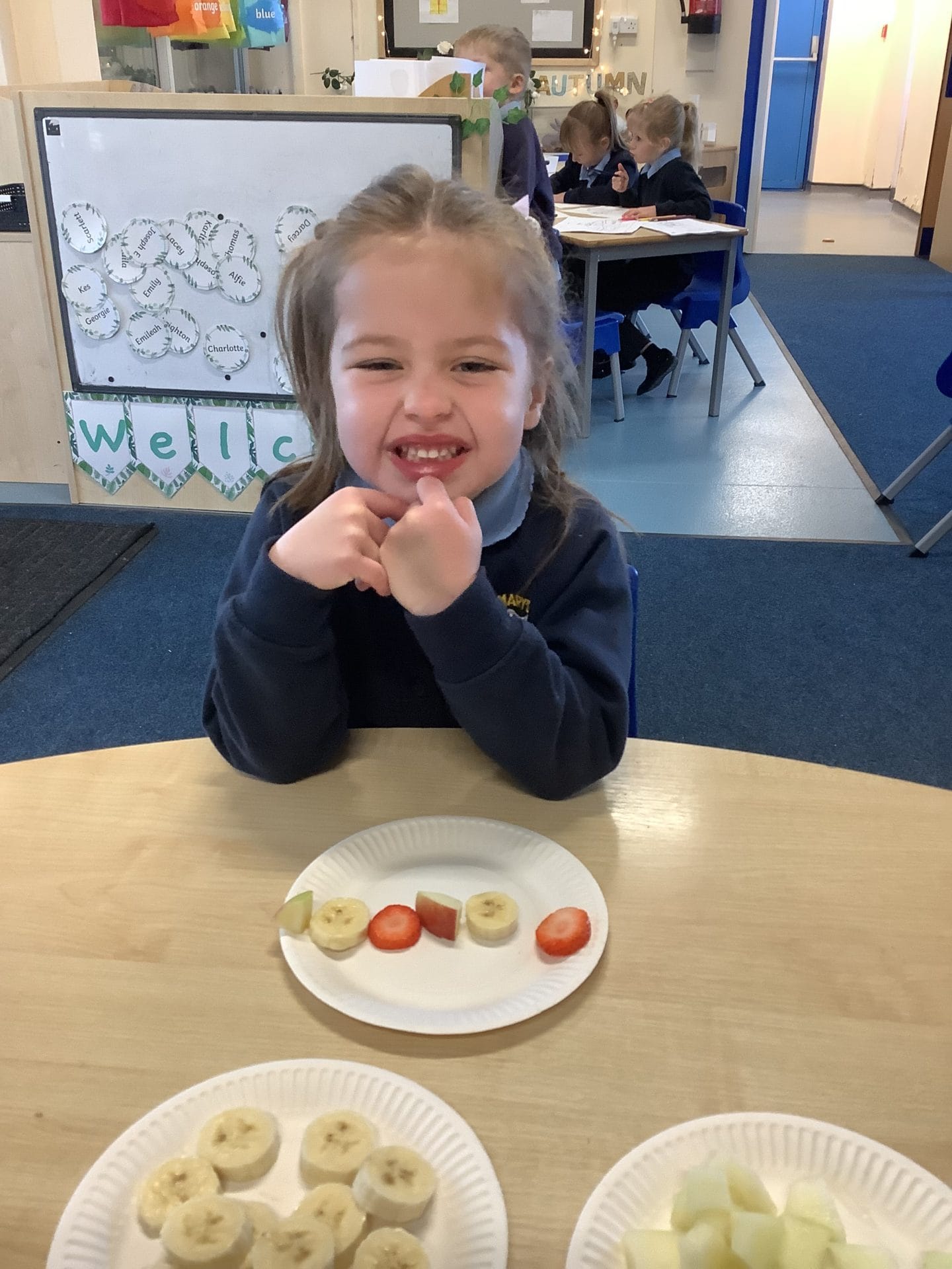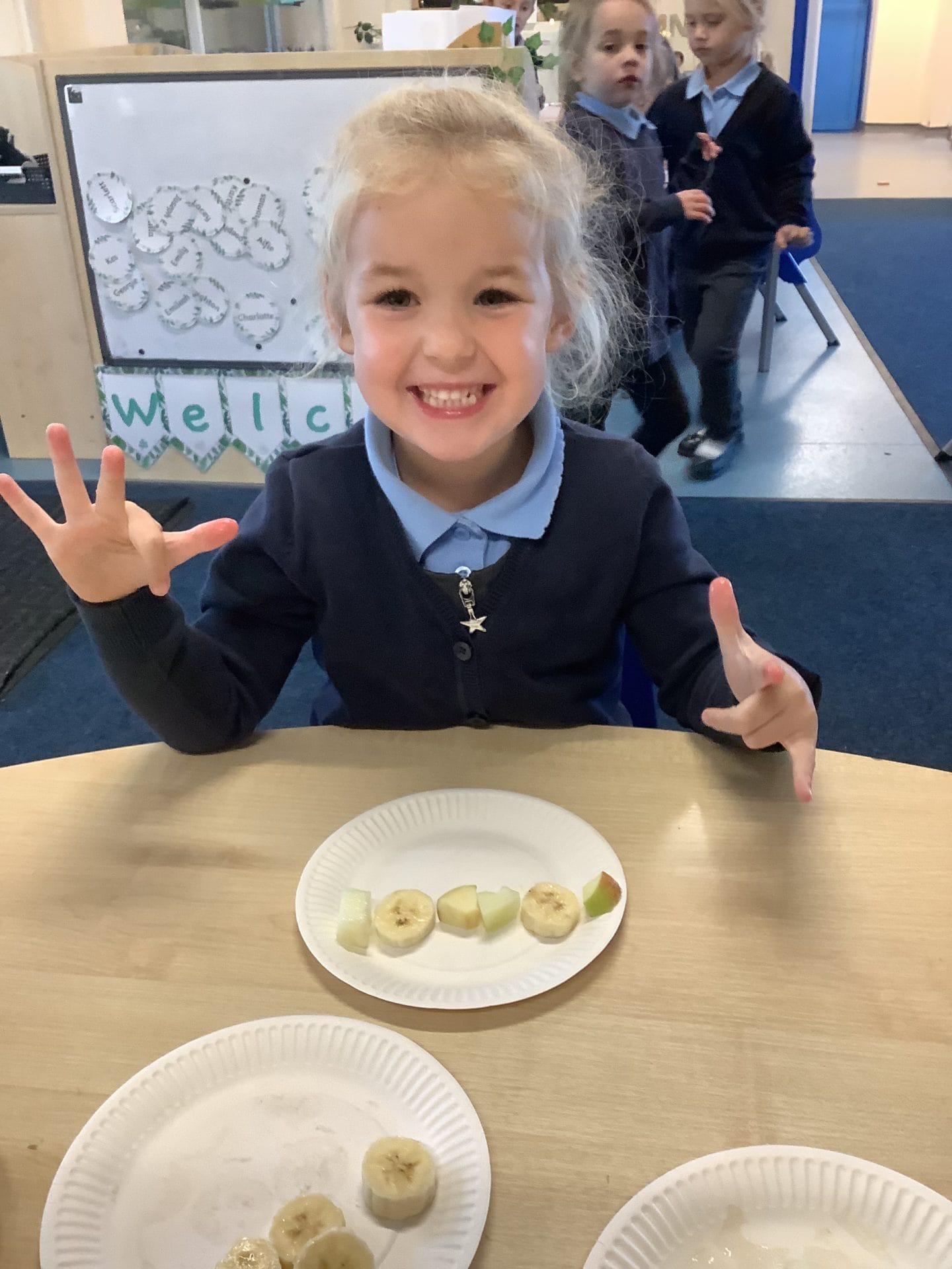 Reception made some healthy fruit kebabs as part of our upcoming food technology day. Since the children have been showing off their skills in pattern making, we challenged them to create their own repeating pattern using fruit.