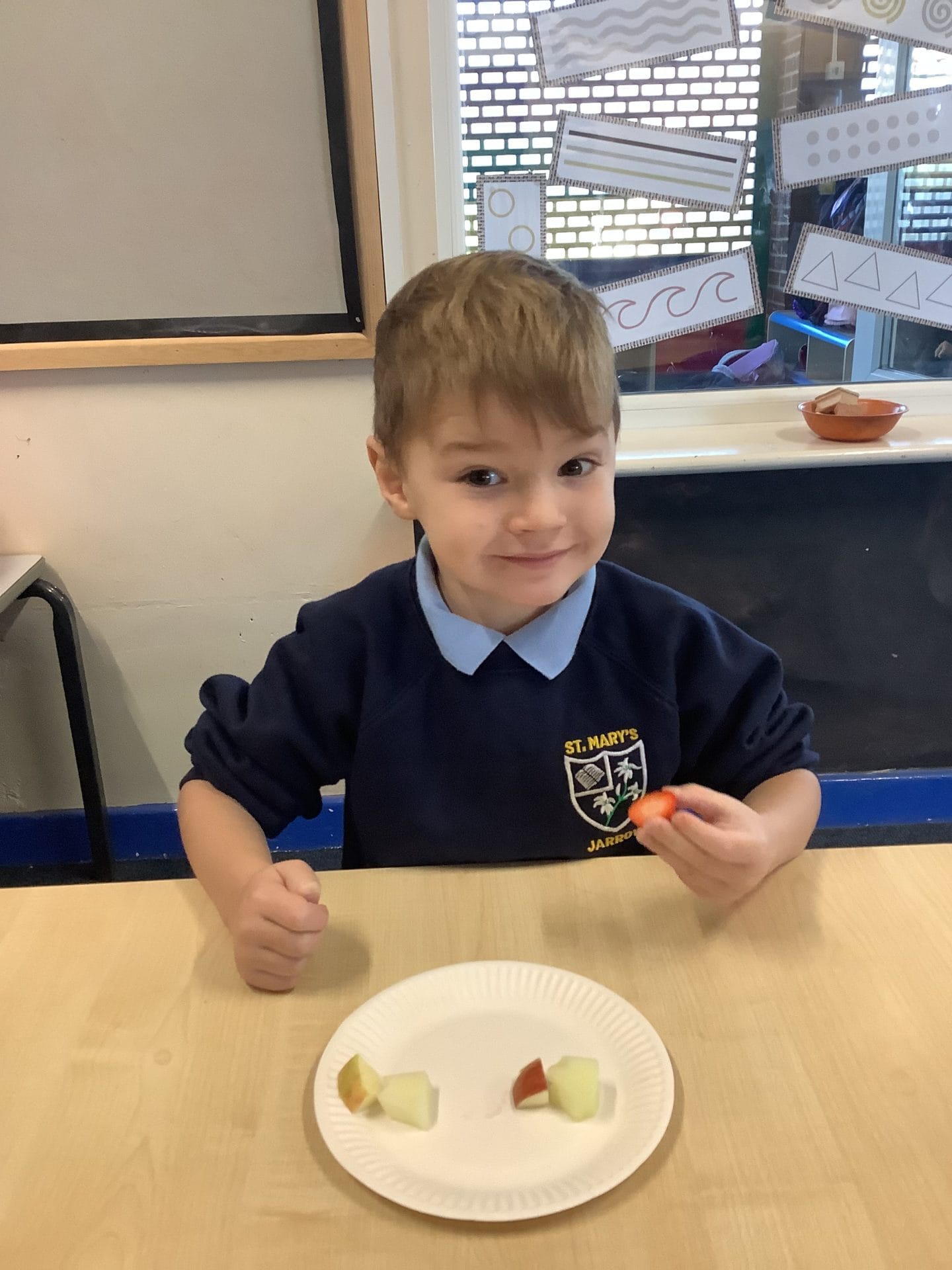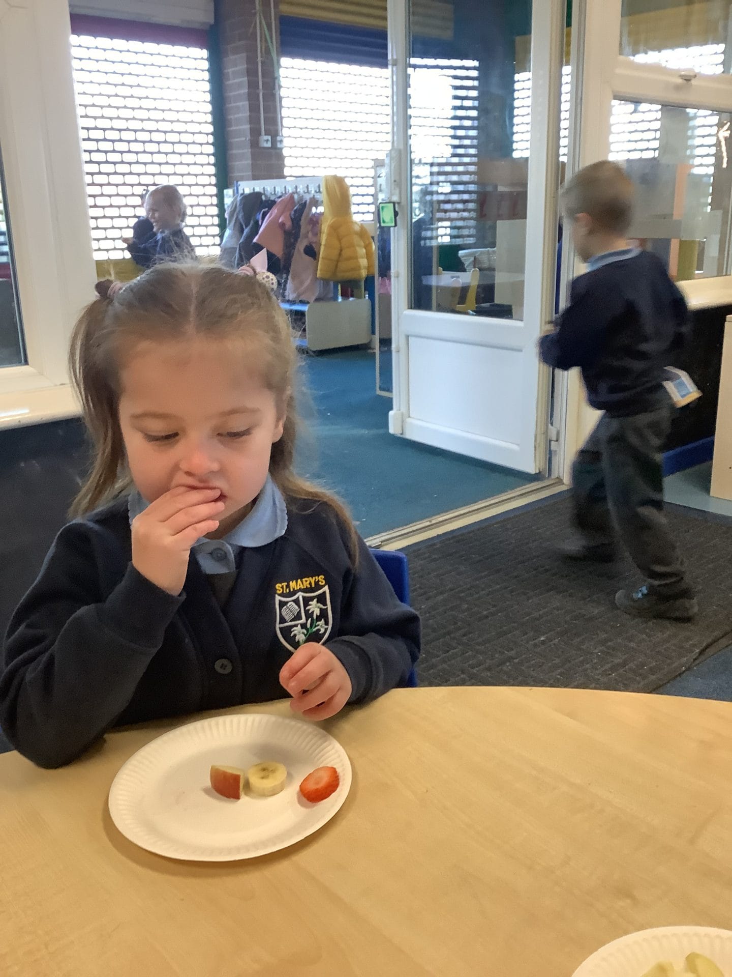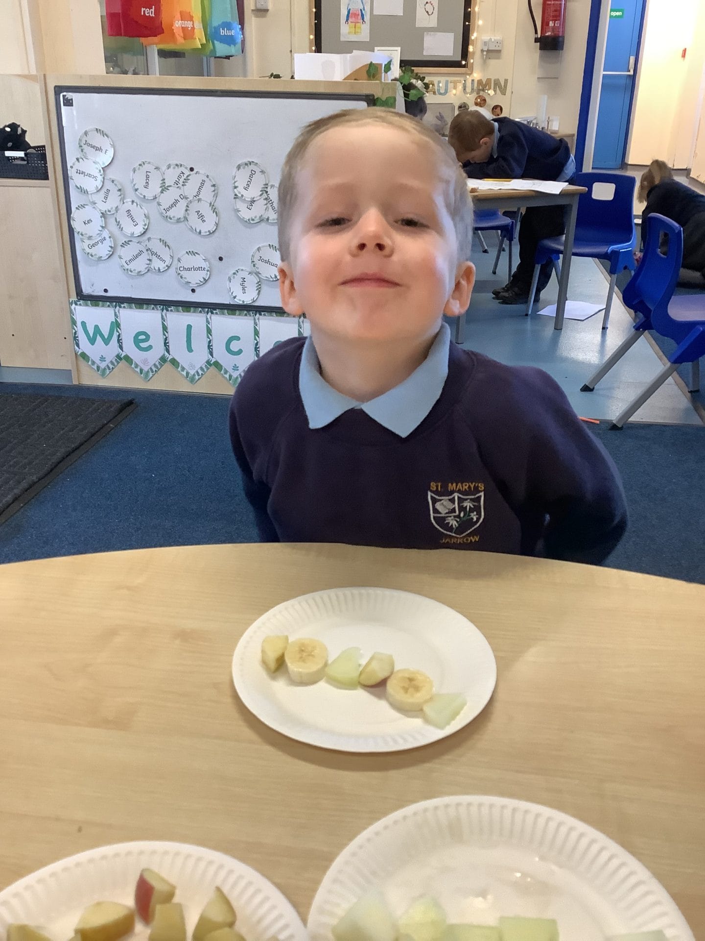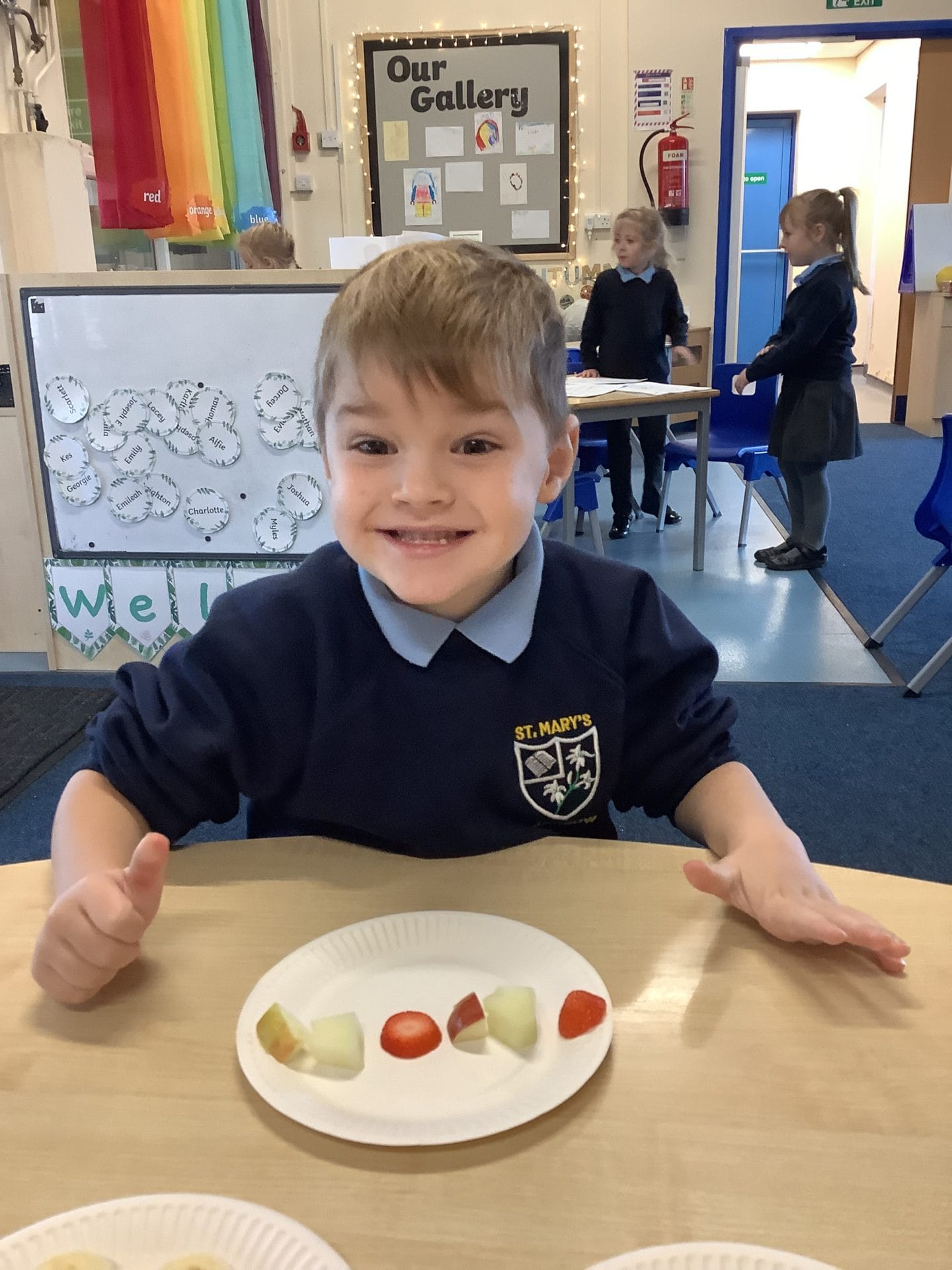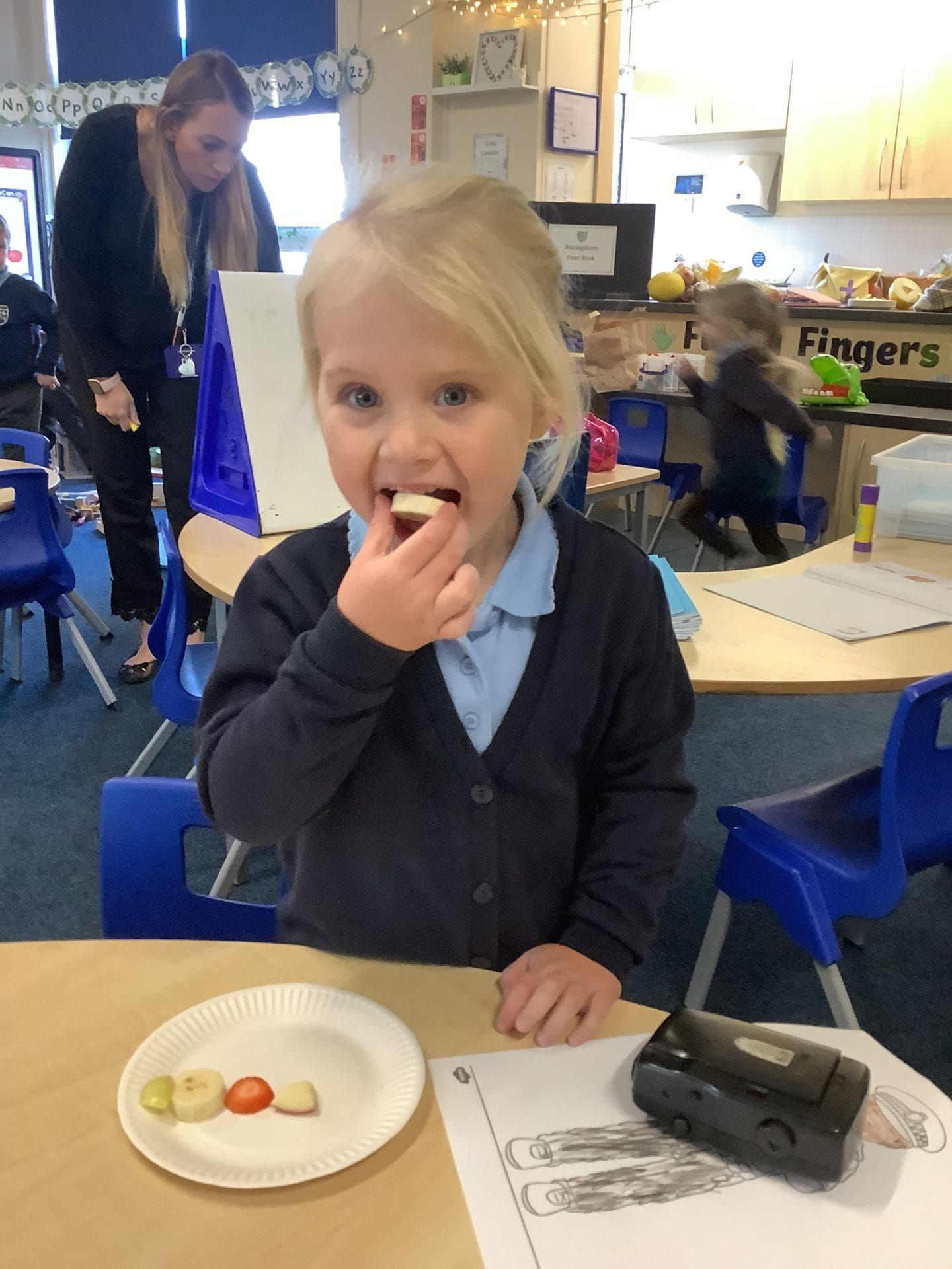 Reception made some healthy fruit kebabs as part of our upcoming food technology day. Since the children have been showing off their skills in pattern making, we challenged them to create their own repeating pattern using fruit.