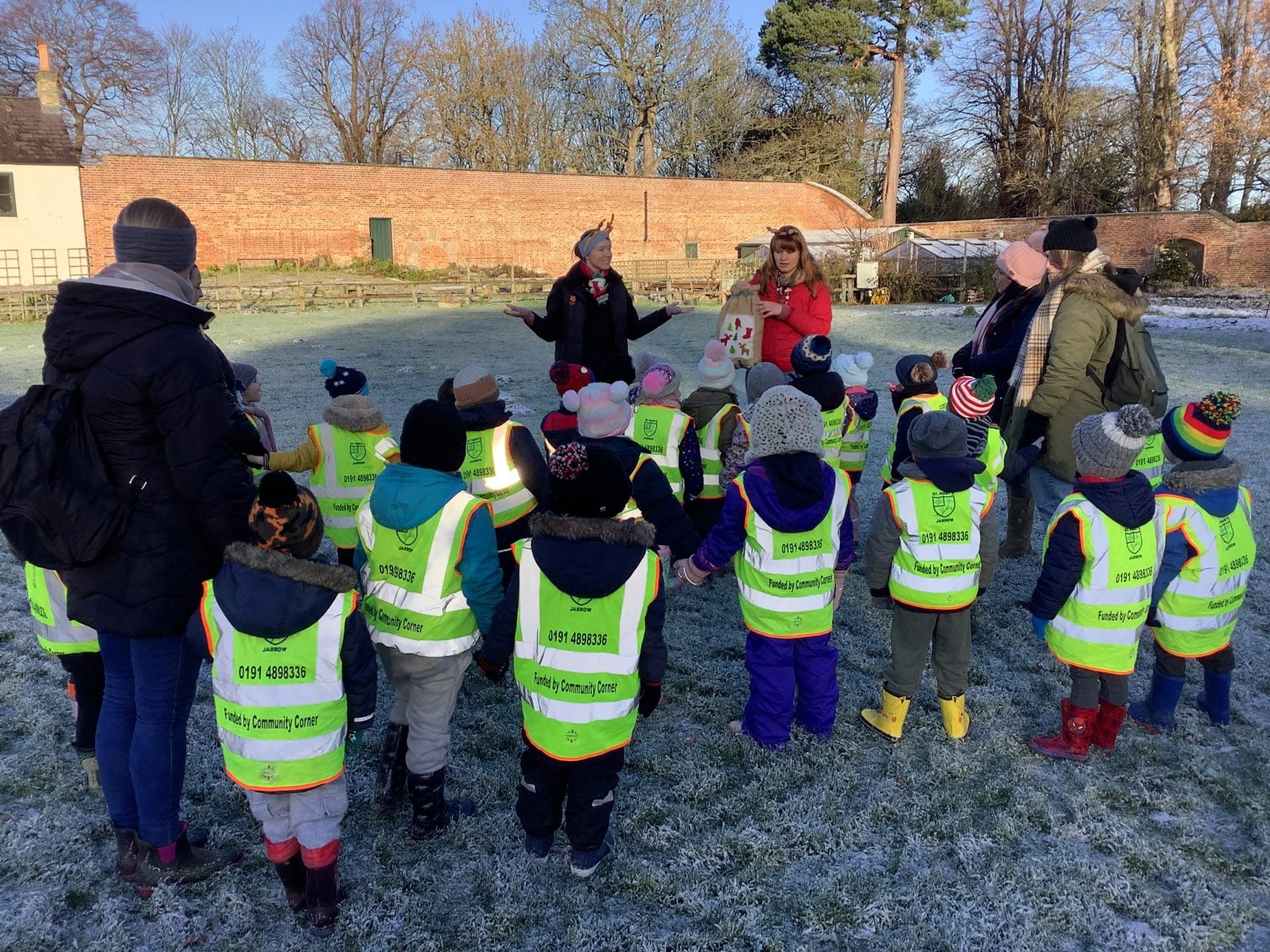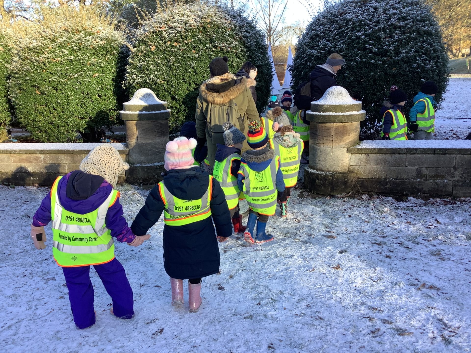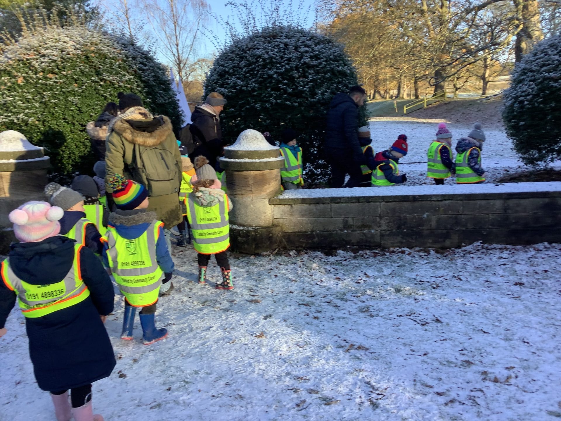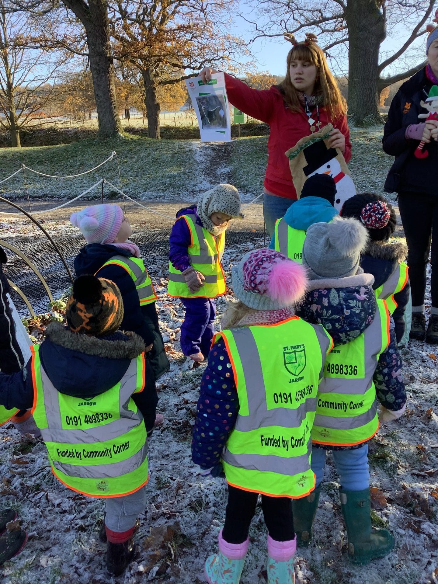 Reception enjoyed their trip out on the coach to Gibside and were feeling very festive. The children had to help Elfie find all of Santa’s lost reindeer food bags. Inside each bag, were seasonal activities such as singing, looking at Christmas traditions from the past/present and around the world. They also looked at what happens to our wildlife during the winter months.