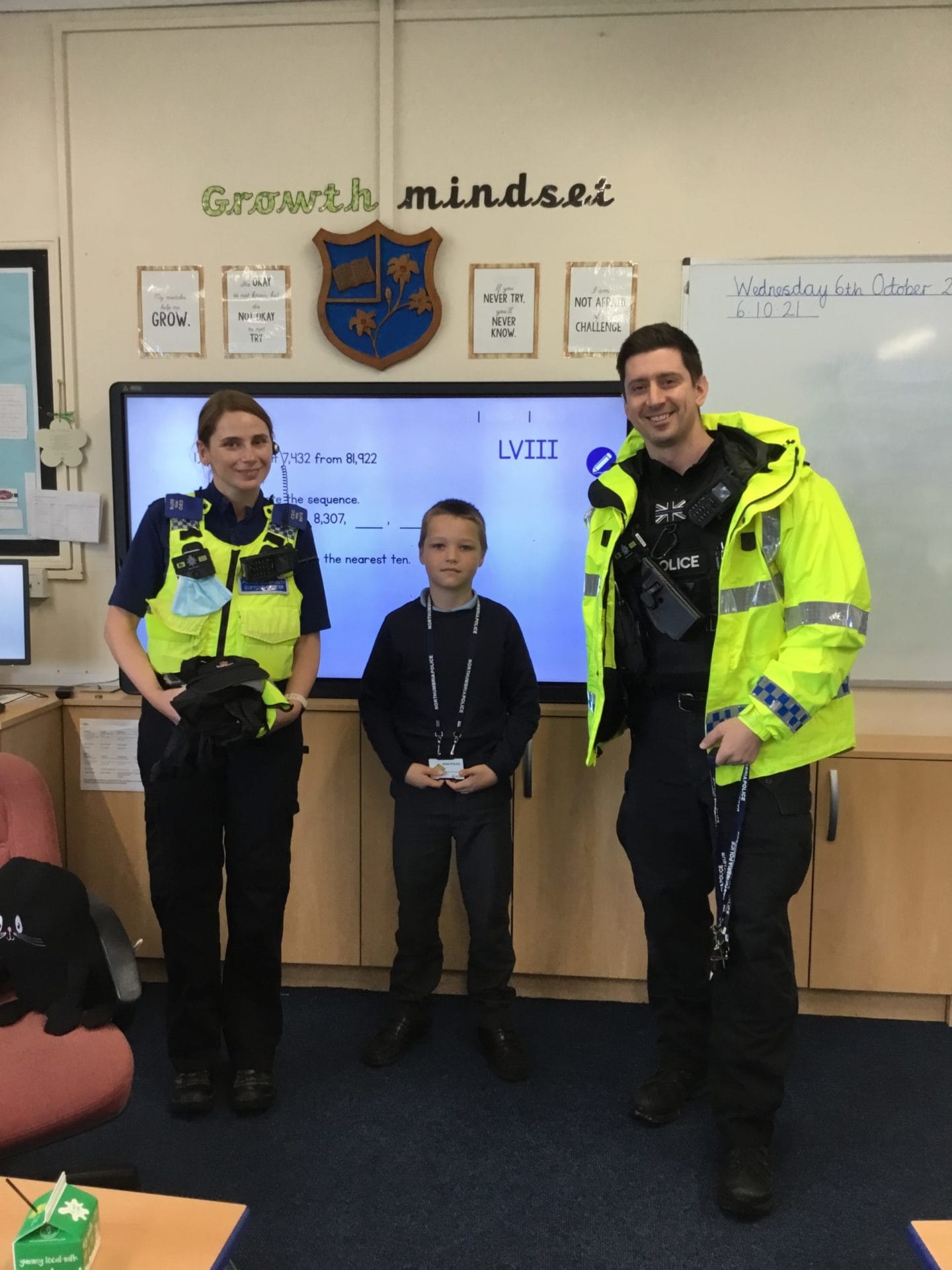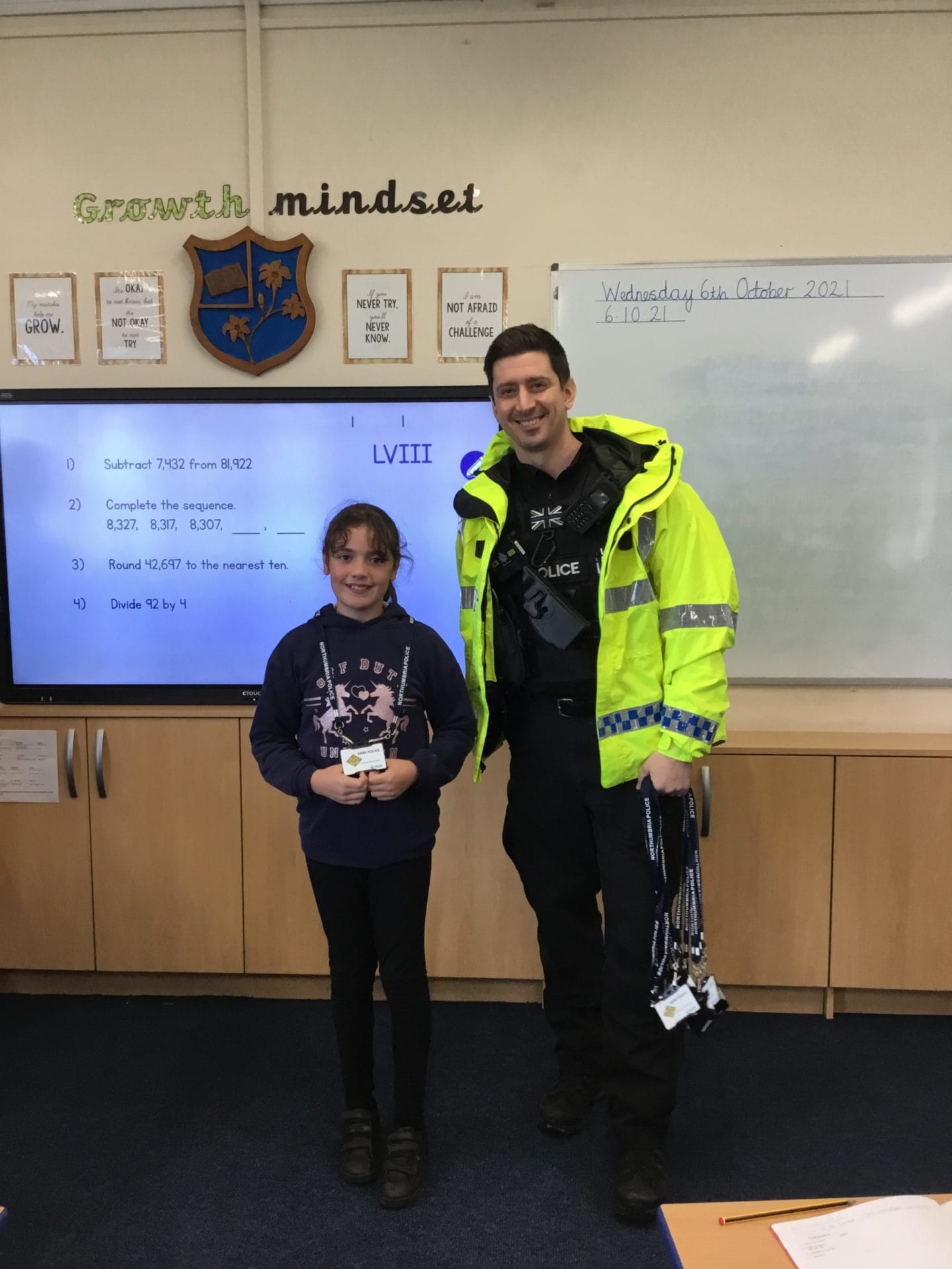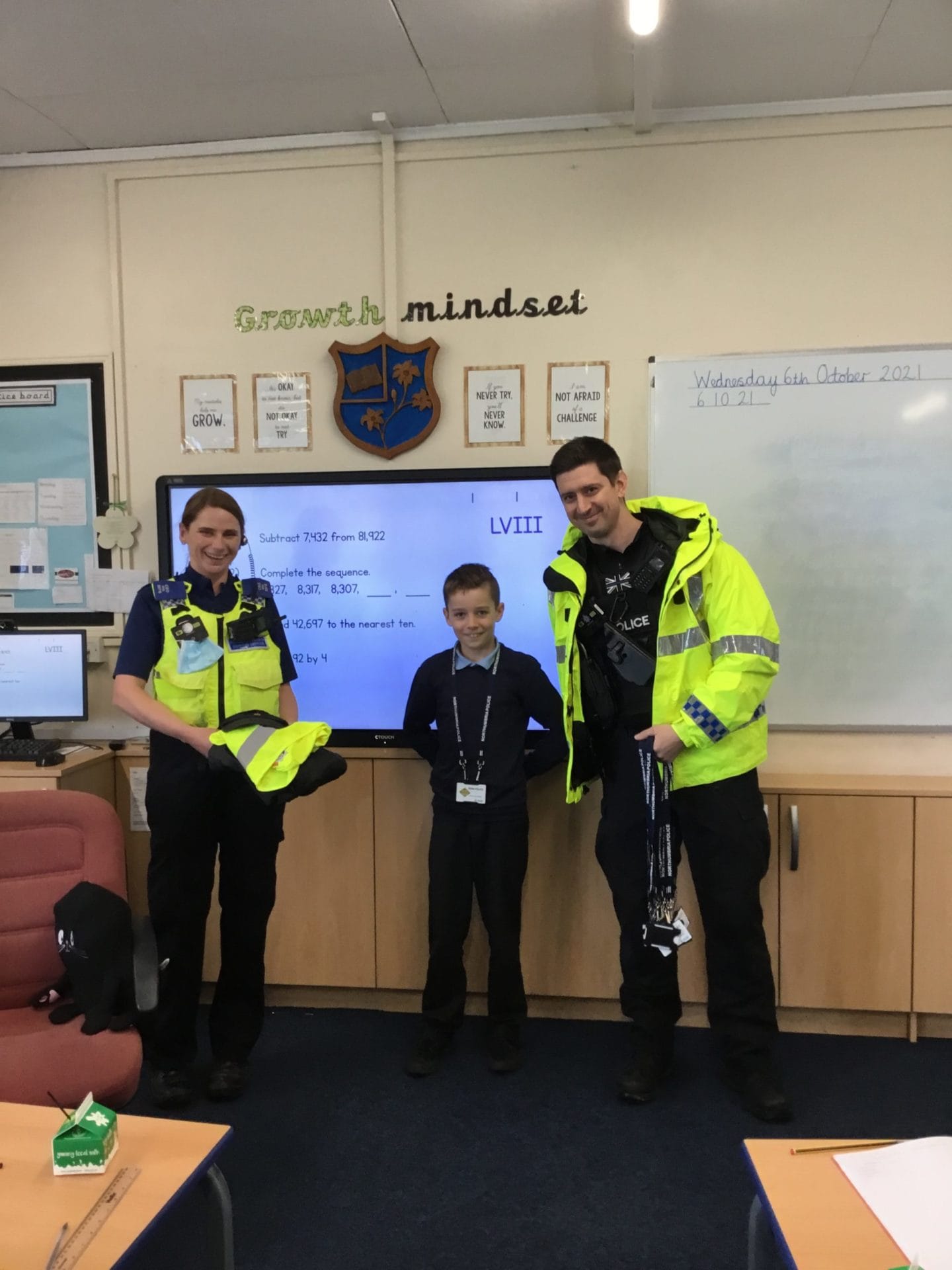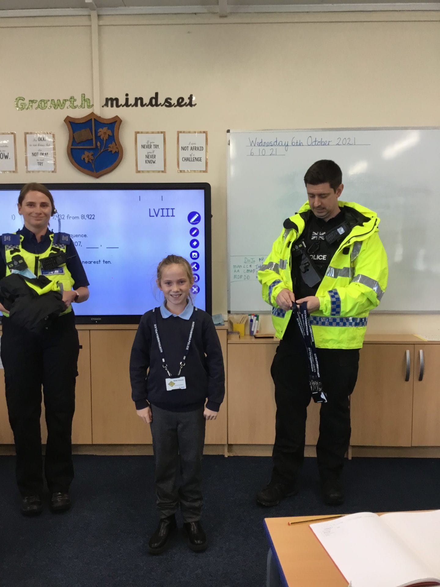 PCSO Jayne Rudd and her colleague came to present our Year 5 mini-police with their uniforms. The Mini Police scheme is an interactive volunteering scheme which follows a 3 step approach Education, Community and Reward. The objective is to introduce children to a positive experience of policing and to get them involved in the local community. We are sure that they will all do us proud!