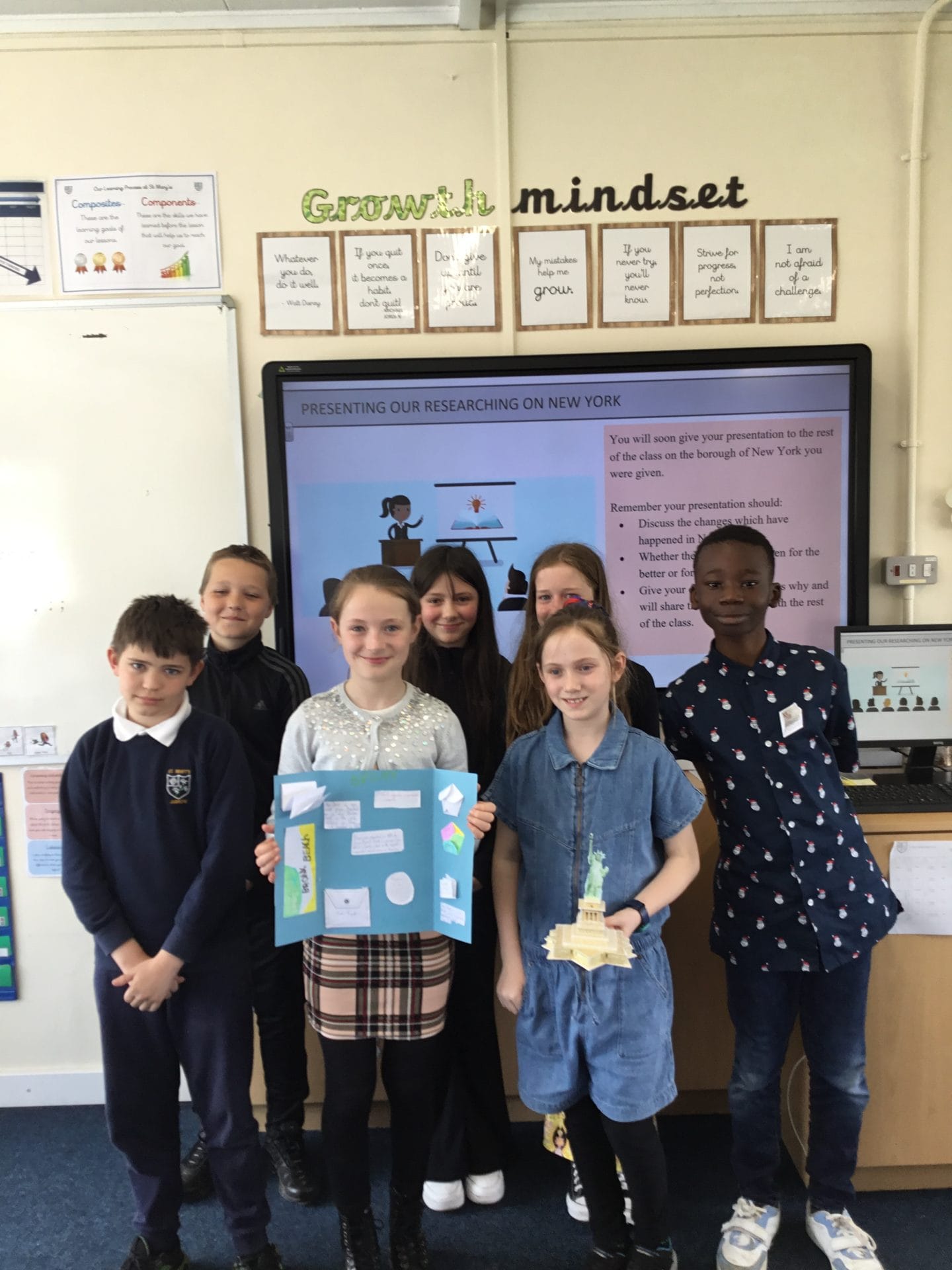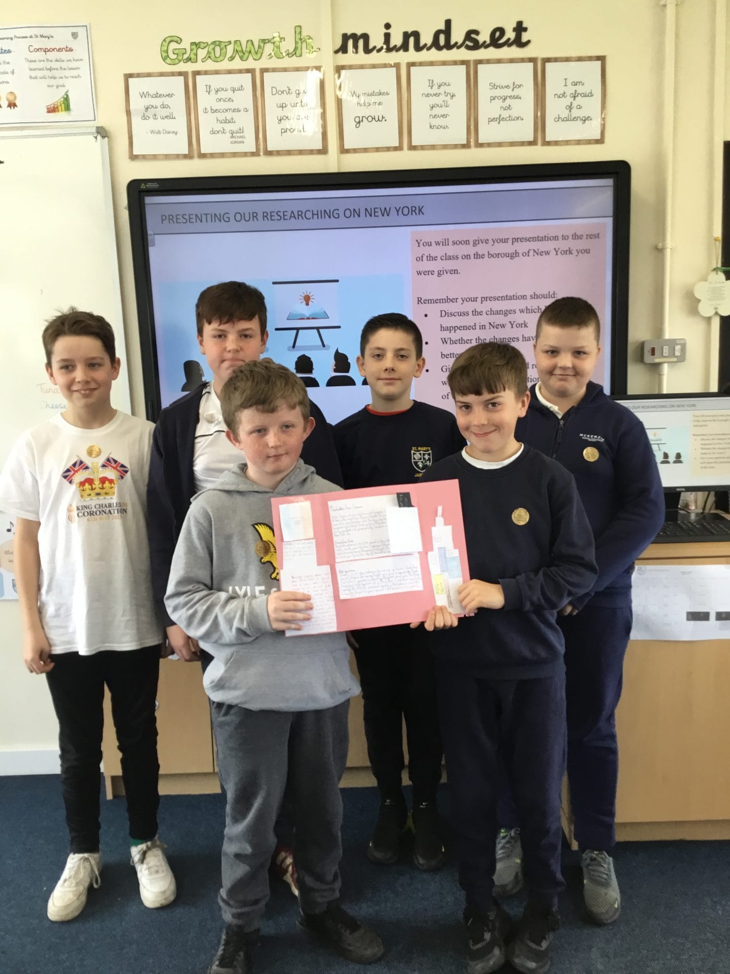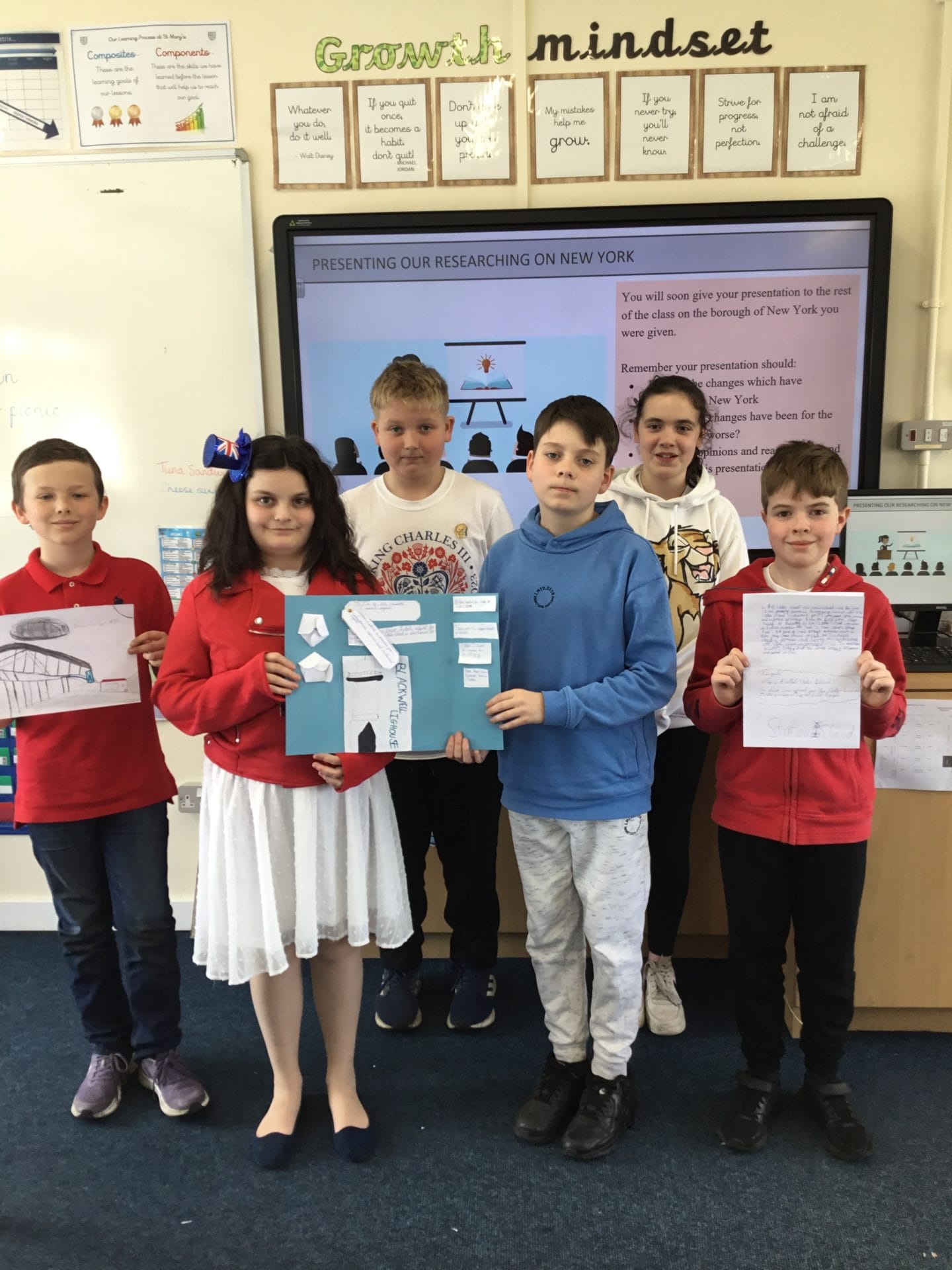 The children finished off their Geography topic on North America by researching a borough in New York. They chose from the Bronx, Manhatten, Queens, Brooklyn and Staten Island. They created a presentation for the rest of the class and used a lap book to present their work.