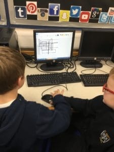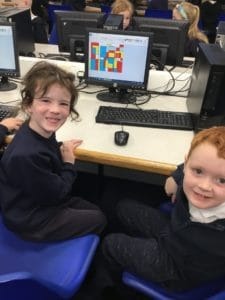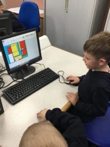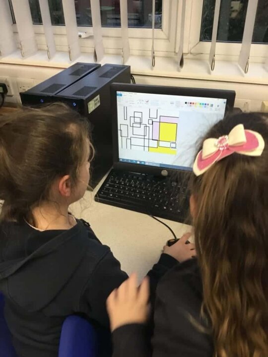 In Year 1, we have been developing our mouse control skills over the last few weeks. This week we created some Mondrain pictures using the Paint program on the computers. We created some squares and rectangles using the shape tool and then filled in the white spaces using red, yellow and blue. We created some fantastic artwork!