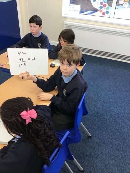 Year 5 have began to explore percentages, fractions and decimals. We used hundred squares to help us represent fractions as decimals and began finding equivalent fractions, decimals and percentages.