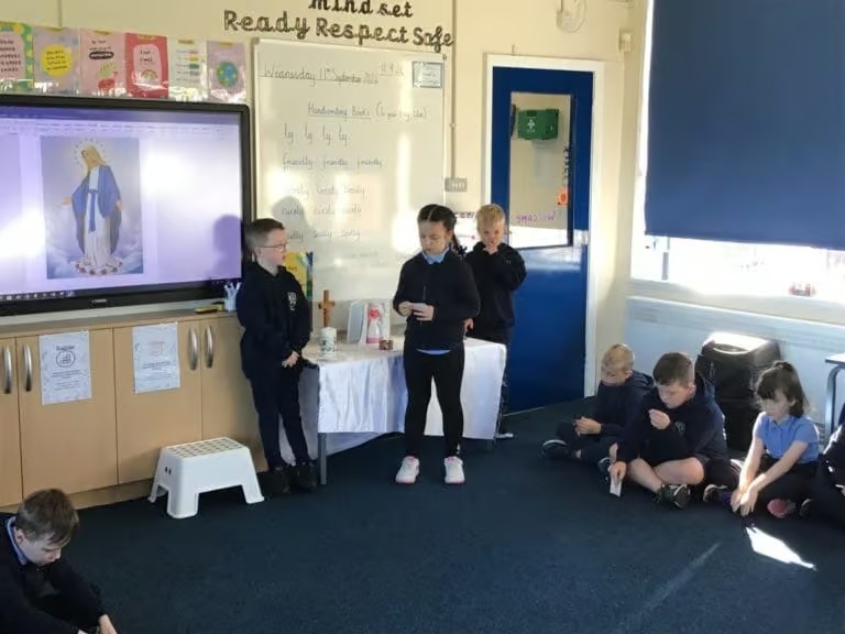 Today’s class liturgy was prepared and presented by Lola, Isaac and Aiden. They asked us to spend time thinking of others and to be grateful for all we have.