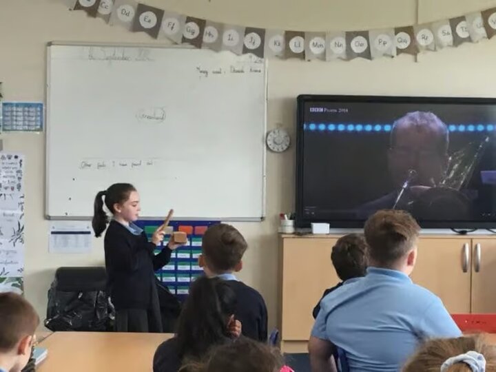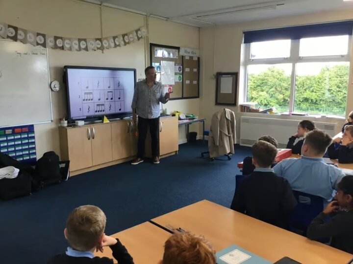 Year 4 had a fantastic time when Les from Tardis Music joined us. He was so impressed with their understanding of musical notation and they even played a game of musical bingo using music notes.