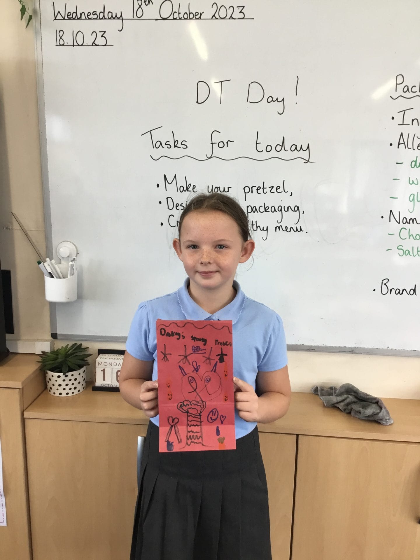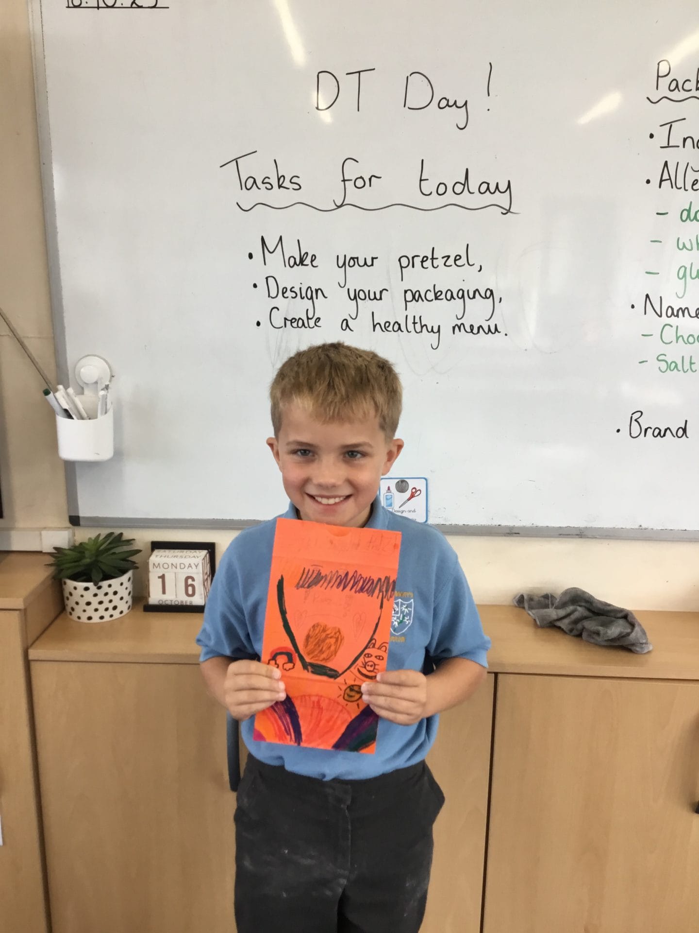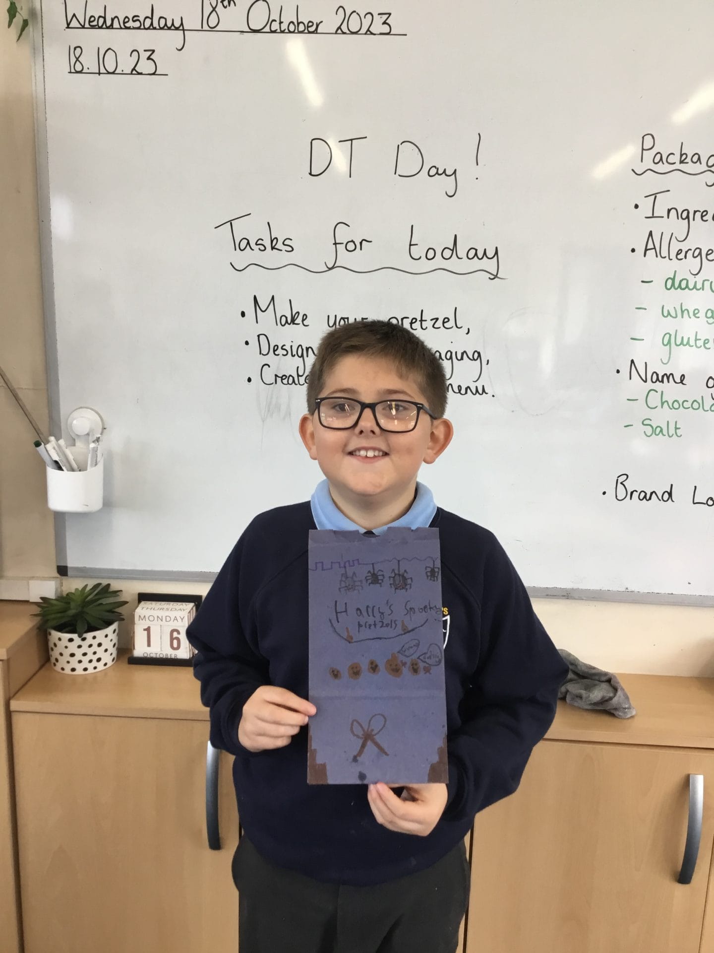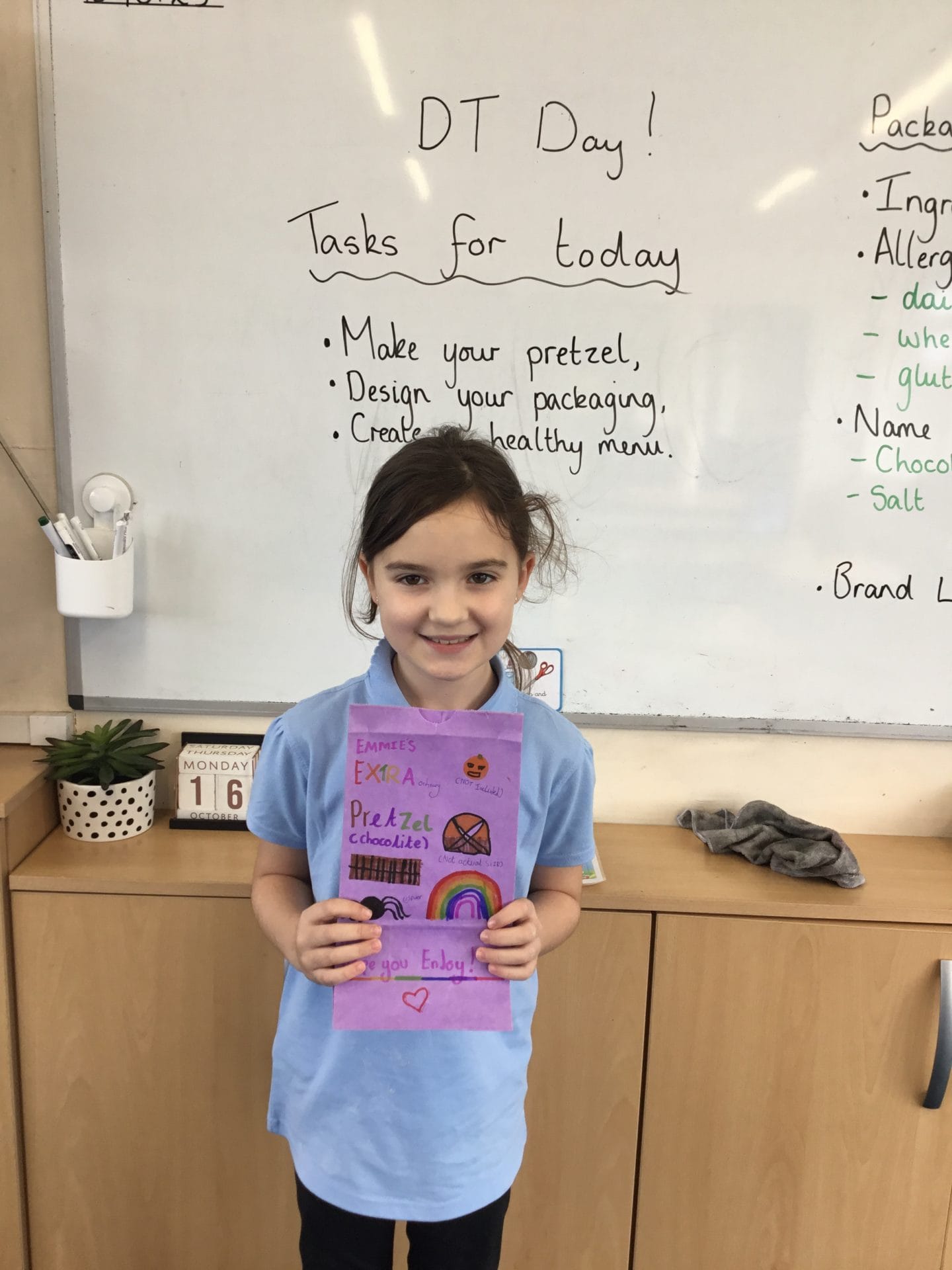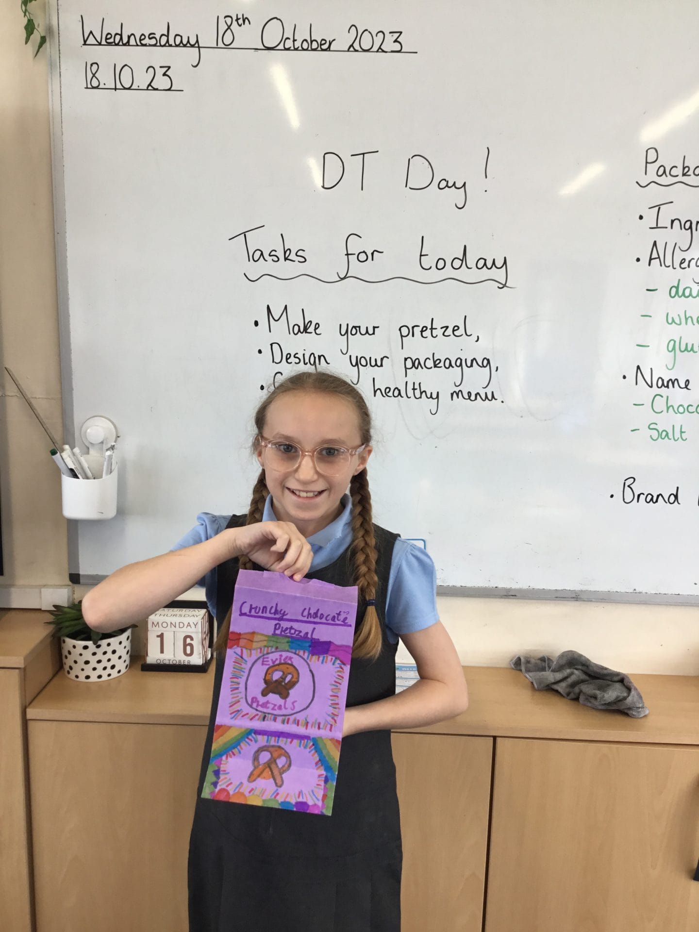 Year 5 had a blast preparing, making and cooking their pretzels to finish our DT food topic. Throughout our topic, we have looked at food groups, nutrition and the purpose of ingredients within a pretzel. We used whisking, mixing and kneading skills and even designed our own packaging, which included an ingredients list and an allergen warning. The pretzels turned out amazing and they were delicious!