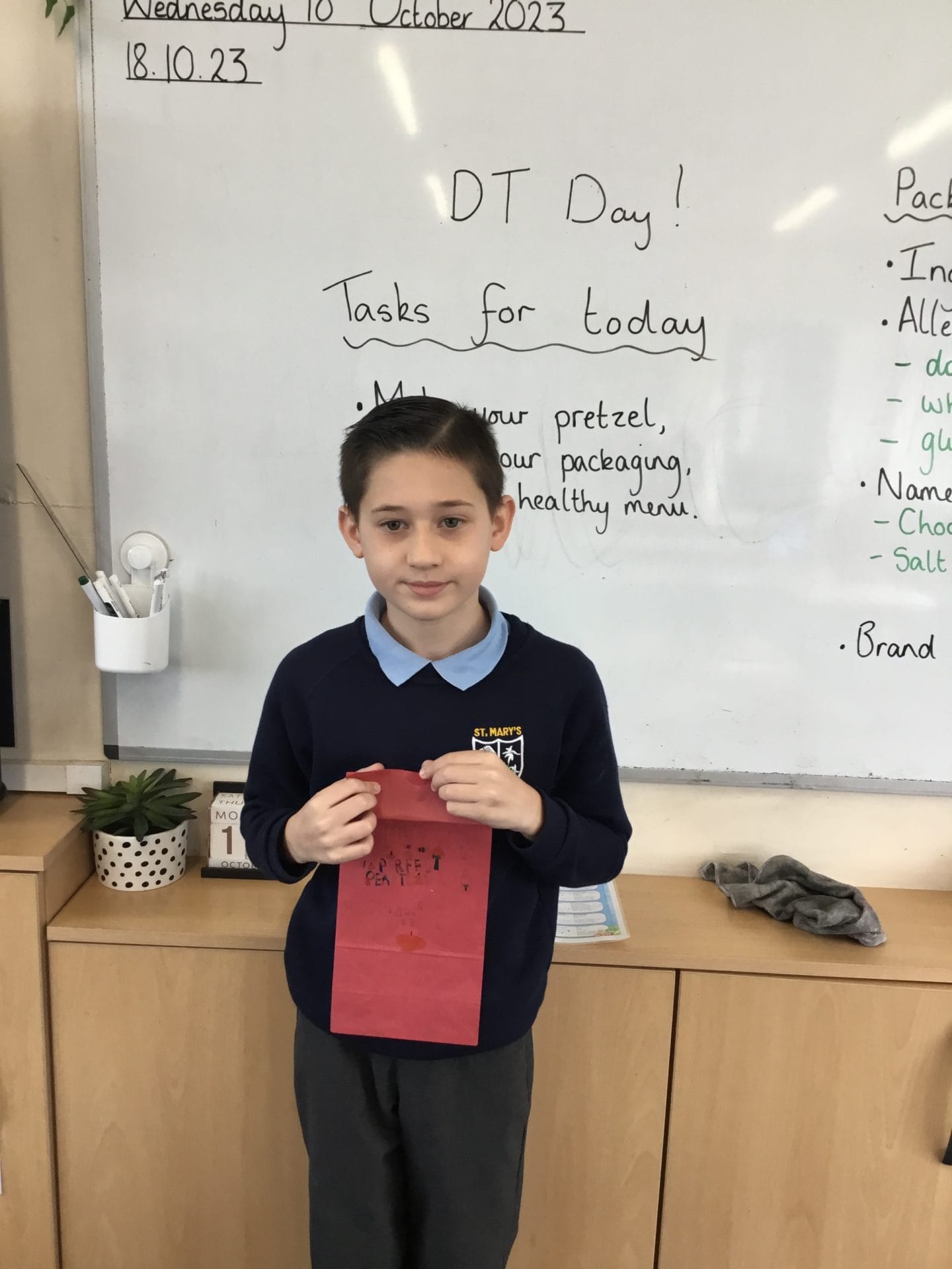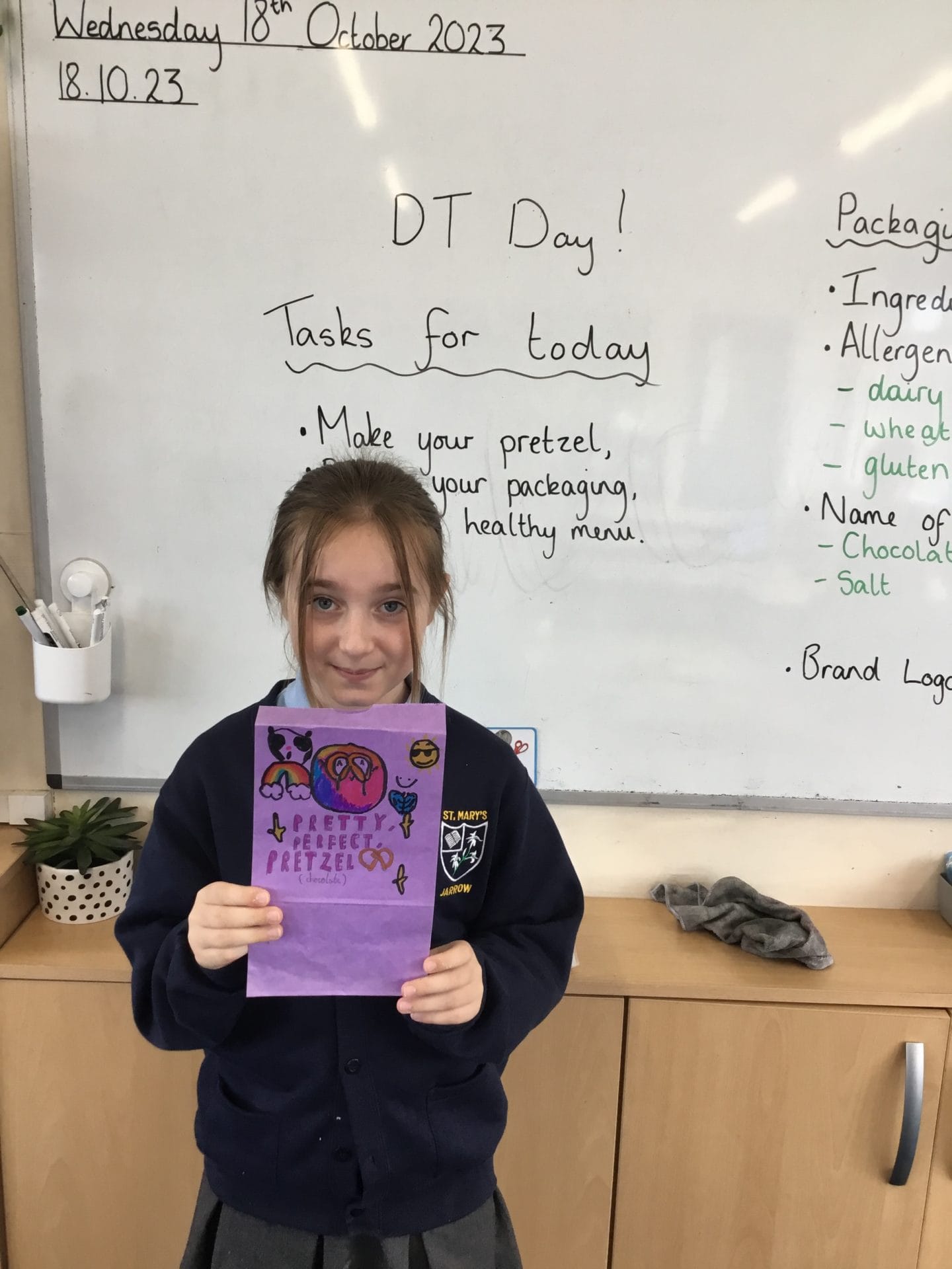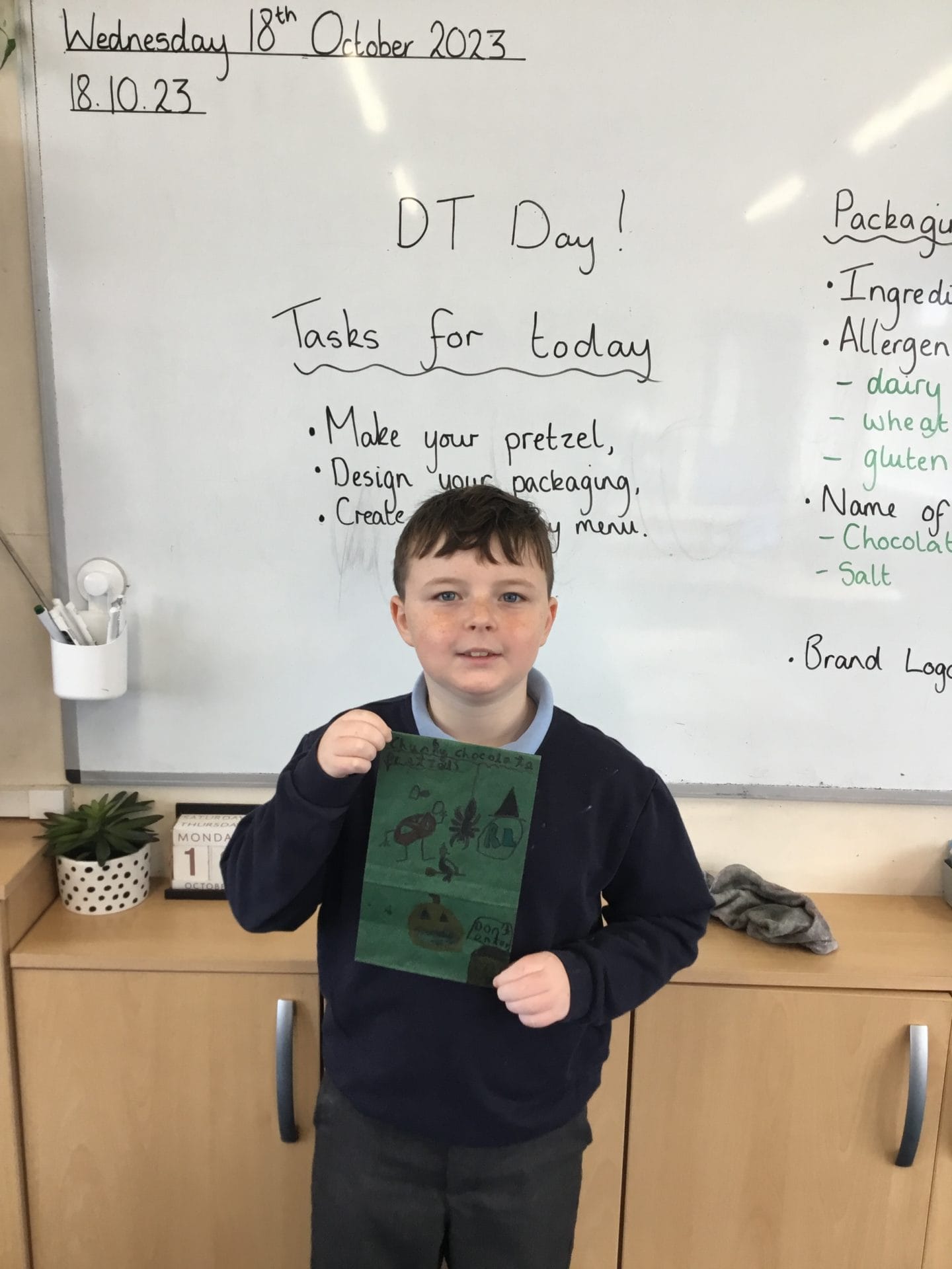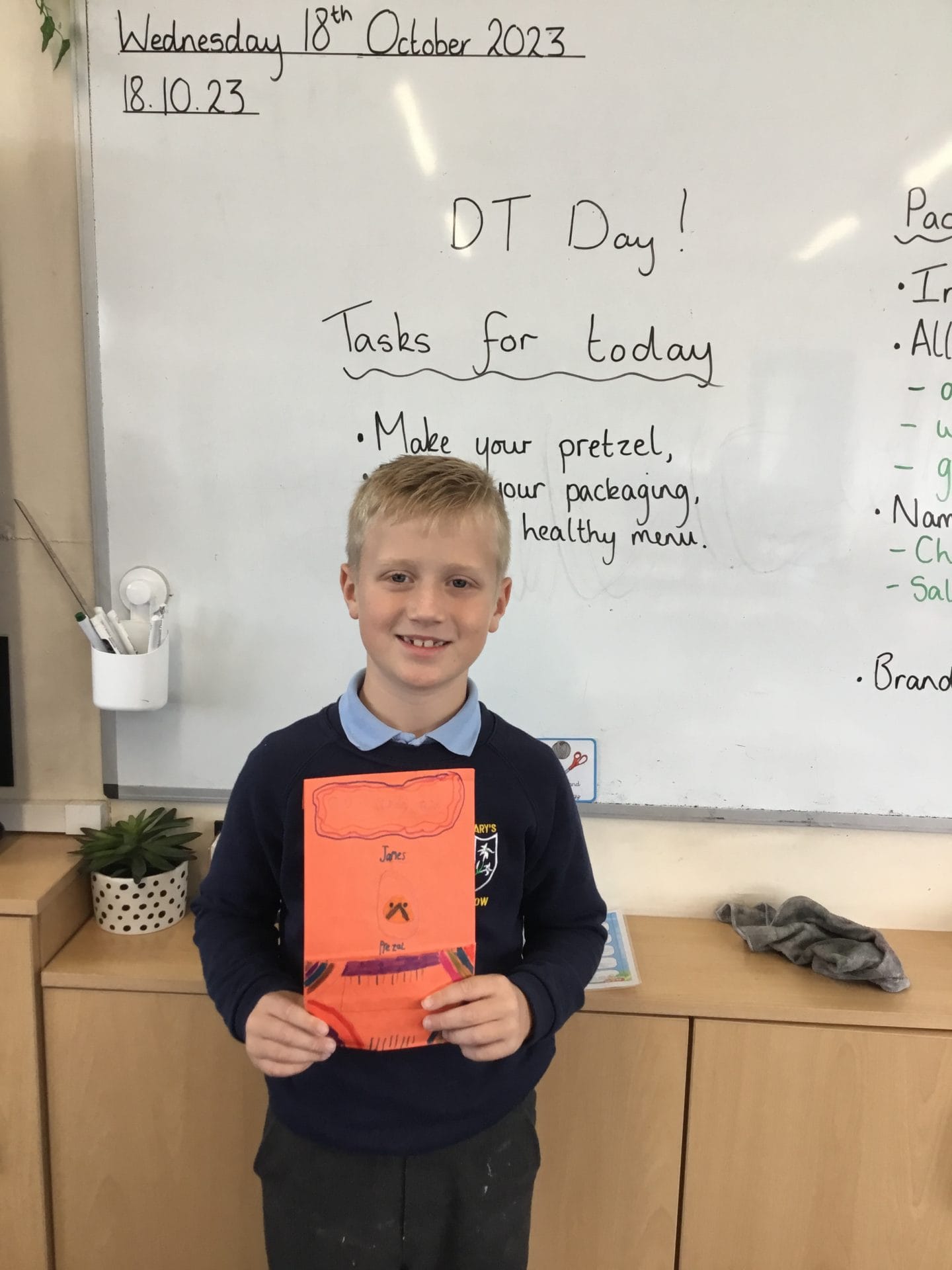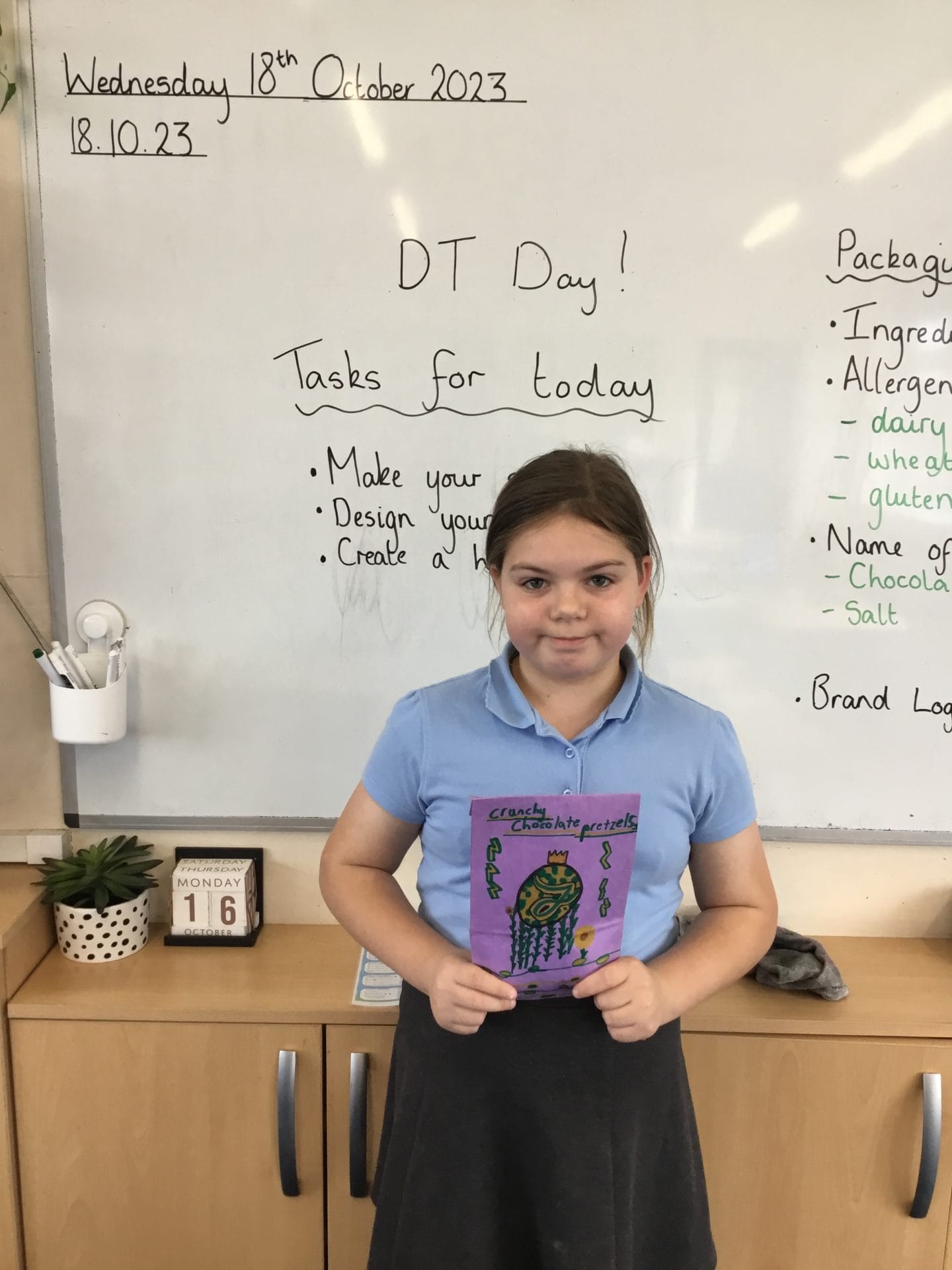 Year 5 had a blast preparing, making and cooking their pretzels to finish our DT food topic. Throughout our topic, we have looked at food groups, nutrition and the purpose of ingredients within a pretzel. We used whisking, mixing and kneading skills and even designed our own packaging, which included an ingredients list and an allergen warning. The pretzels turned out amazing and they were delicious!