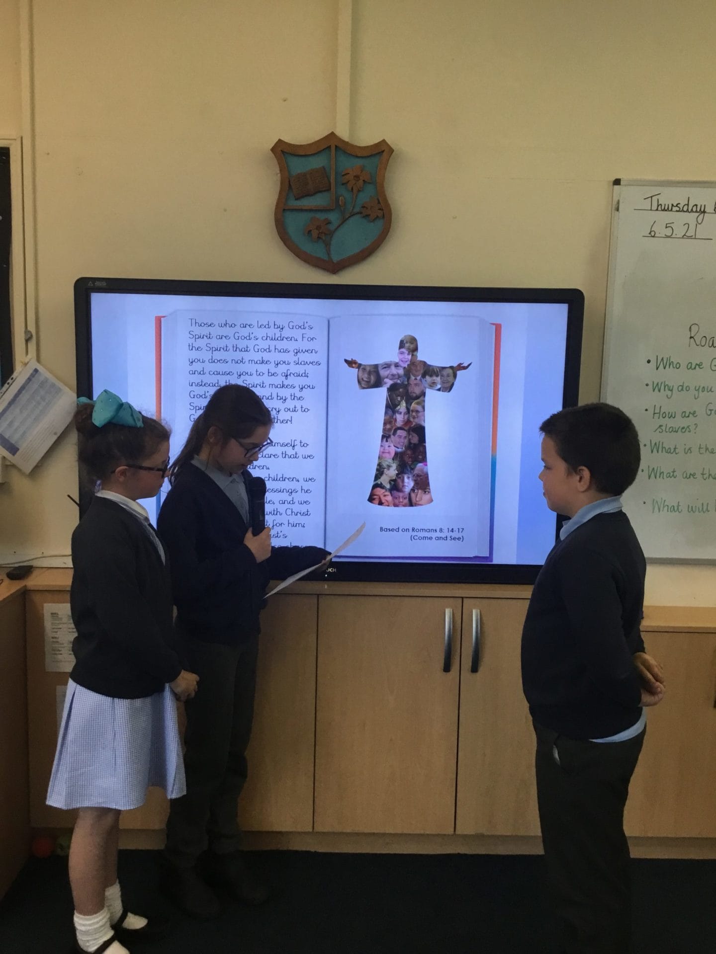 Following his conversion on the road to Damascus, Saul became known as Paul. Paul was a key figure in the beginning of the Church. Paul’s letter to the Romans was written to prepare the way for a visit he planned to make to the Christians living in Rome. In his letter to the Romans, Paul looks forward to going to Rome and meeting the Christians there. Paul discusses how Christians should live and how God’s Spirit will help and strengthen them. Today, in pairs, the children took on the role as interviewer and interviewee (Paul) where they were asked to explore how belief in the transforming power of the Spirit and the message expressed in Paul’s letter give meaning and purpose to life.