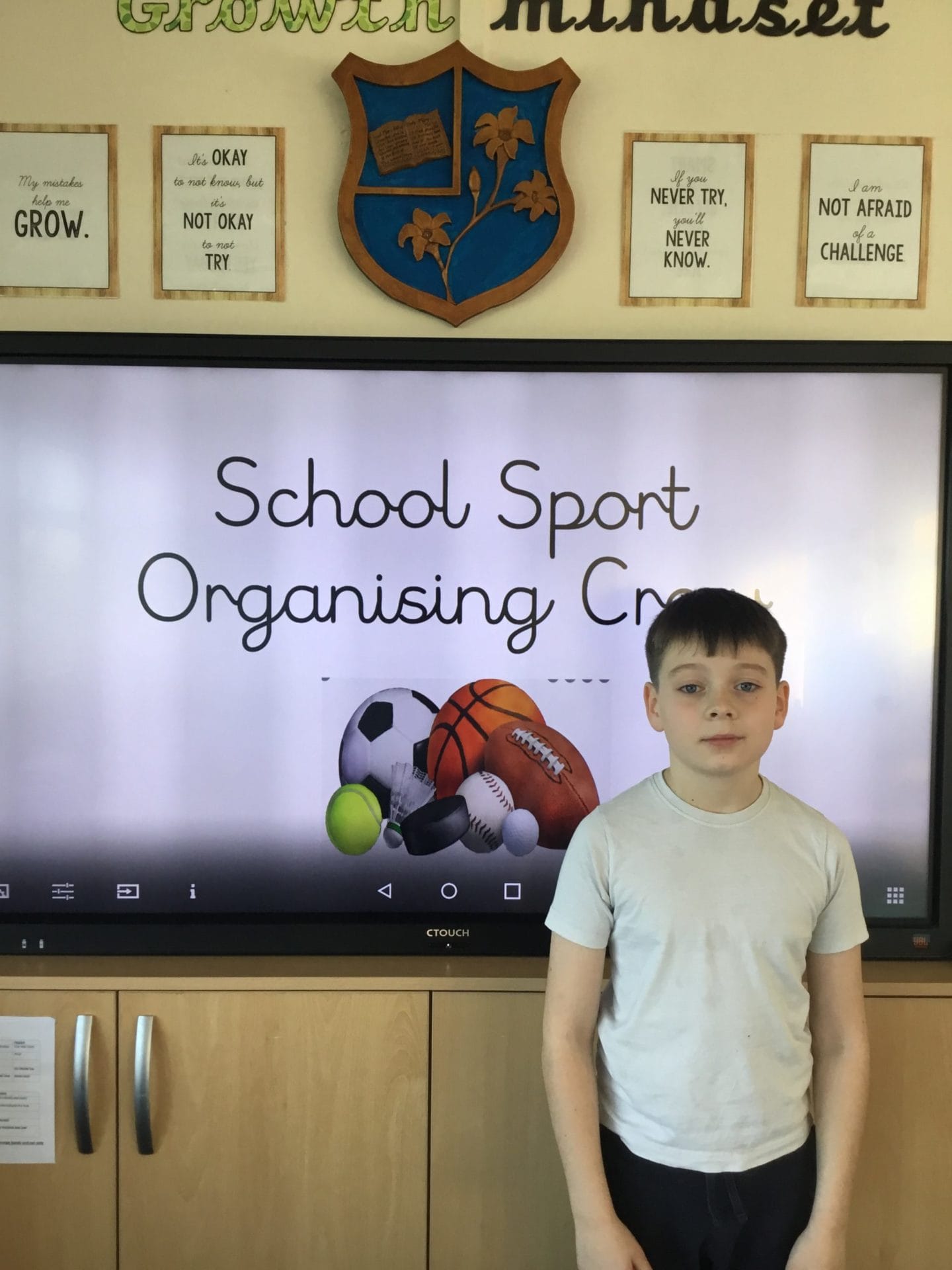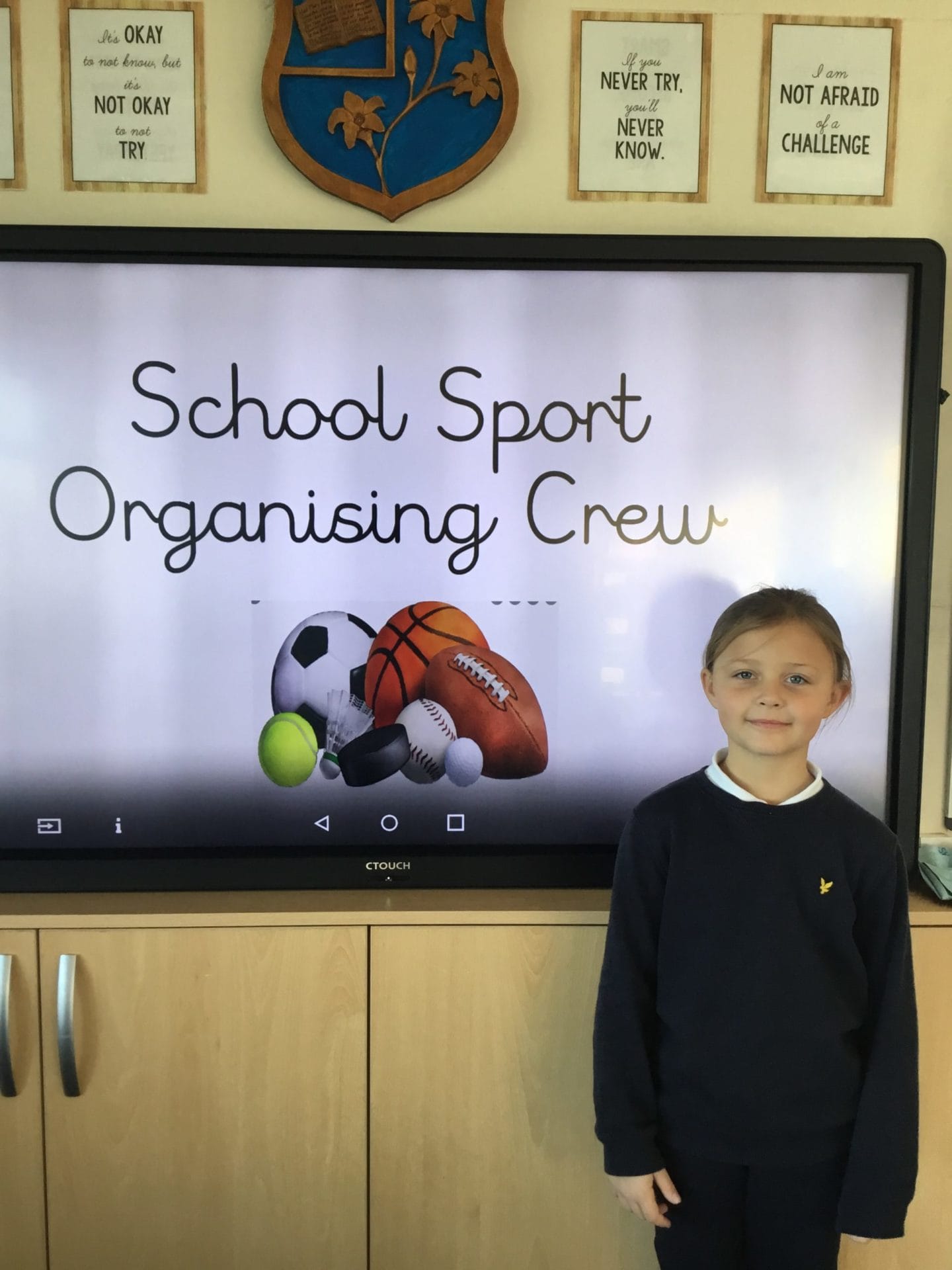The School Sport Organising Crew is our Primary Leadership Academy. Each school is invited to set up it’s own SSOC consisting of 4 pupils. The aim of the SSOC is to empower and support fellow students in school to become more involved in sport and physical activity. This allows members of the crew to build responsibility, help others and to develop leadership skills. Below are the pupils who have been given this role.