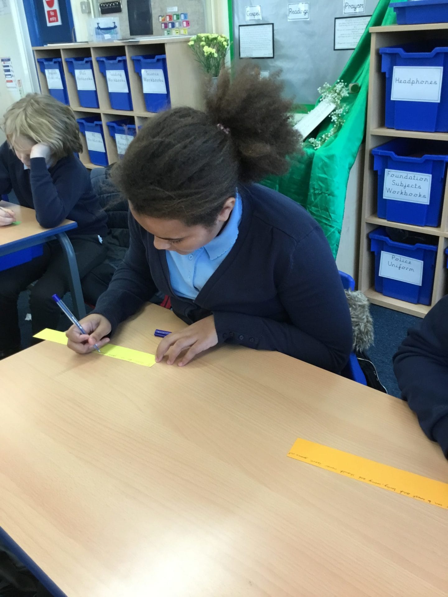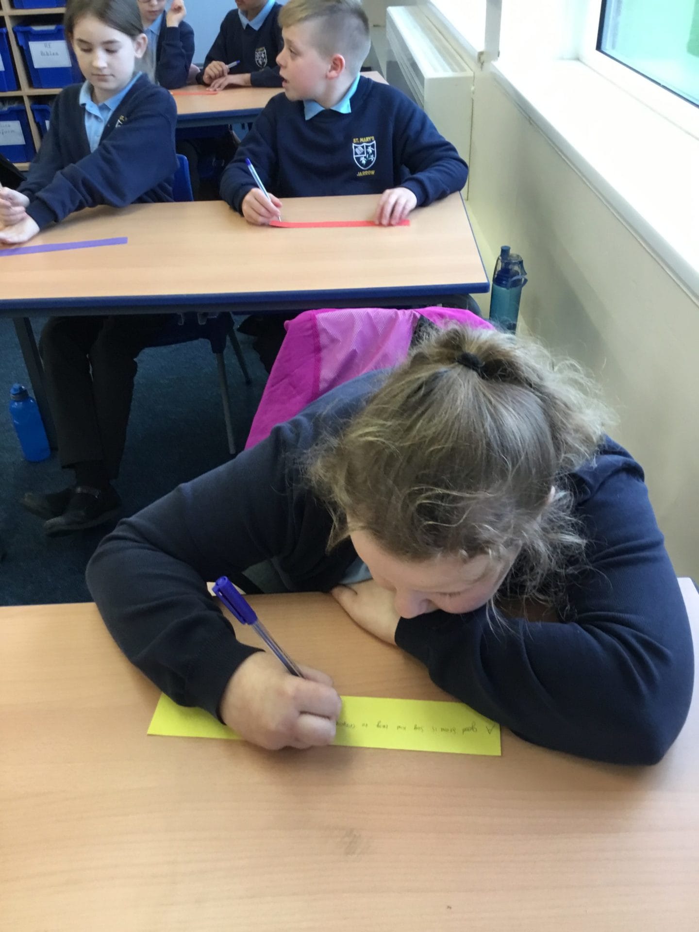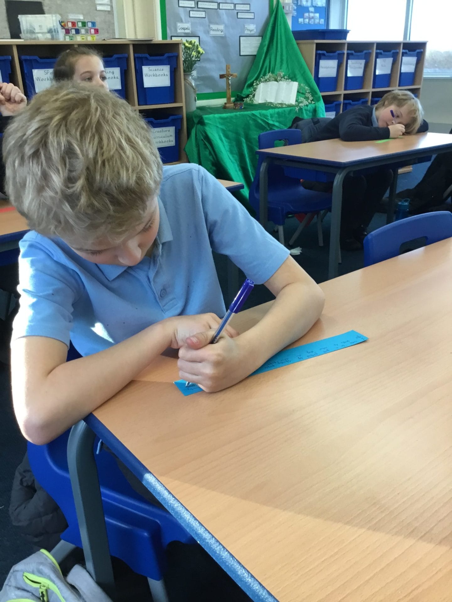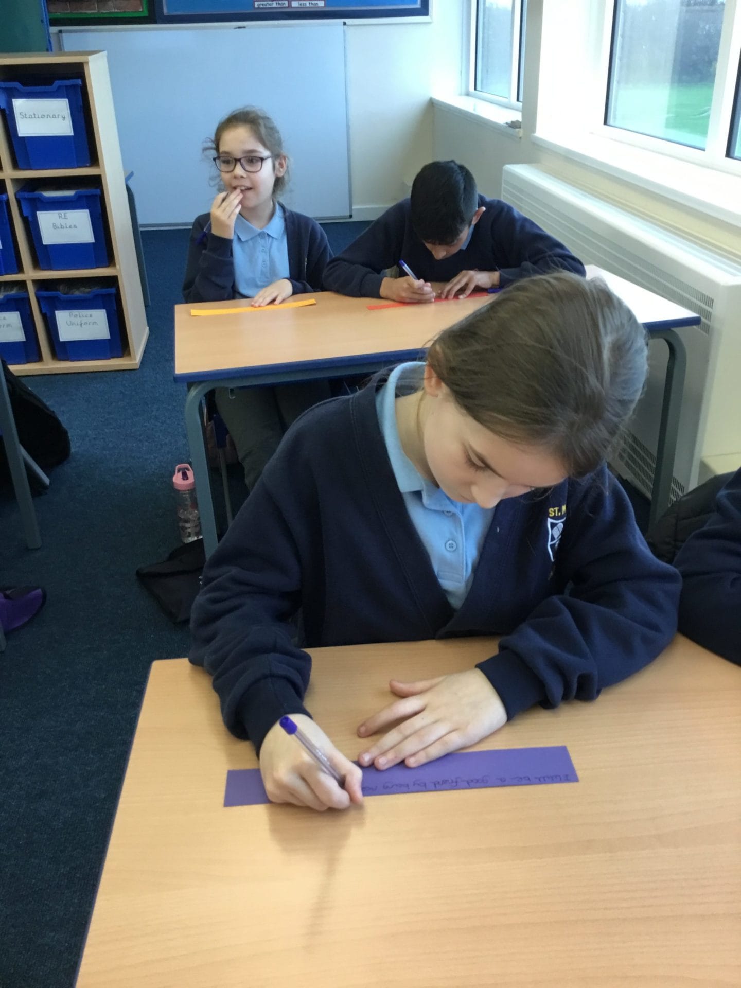 As part of Anti-Bullying Week, Year 5 thought about the qualities of a good friend. They then set themselves goals to become good friends by sharing kindness inside and outside of school. They each made a link, where they wrote how they would be a good friend, and attached them together to make one big friendship bracelet. This bracelet is a symbol