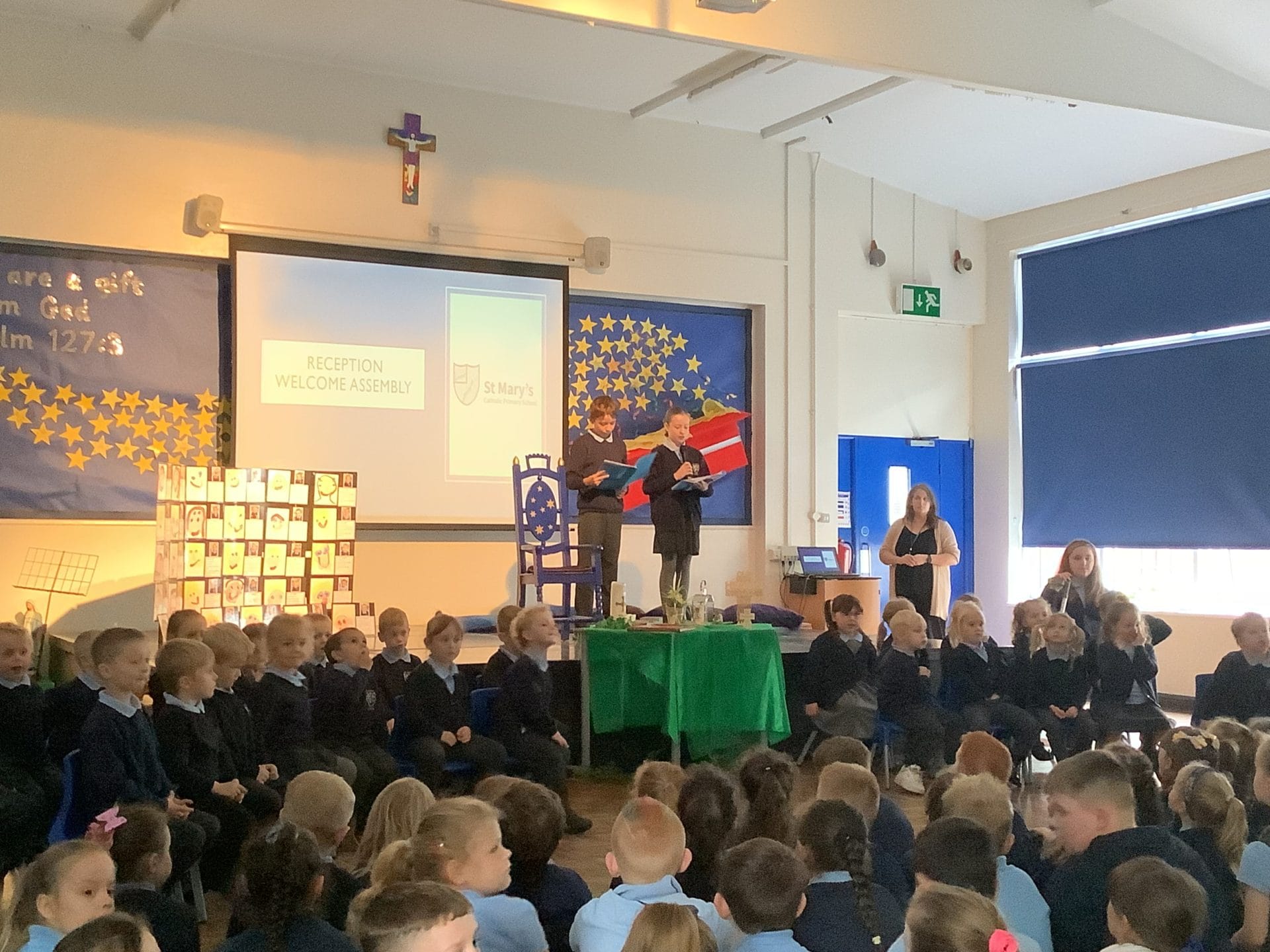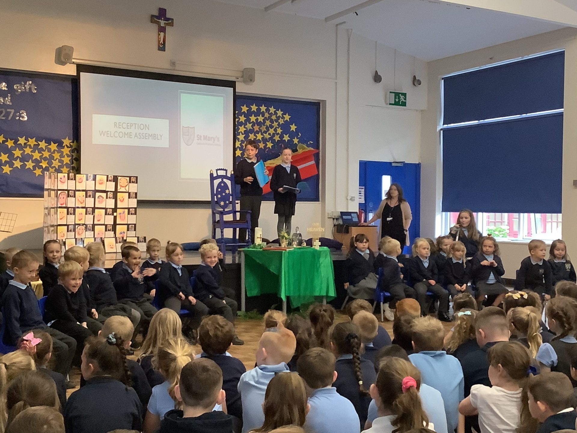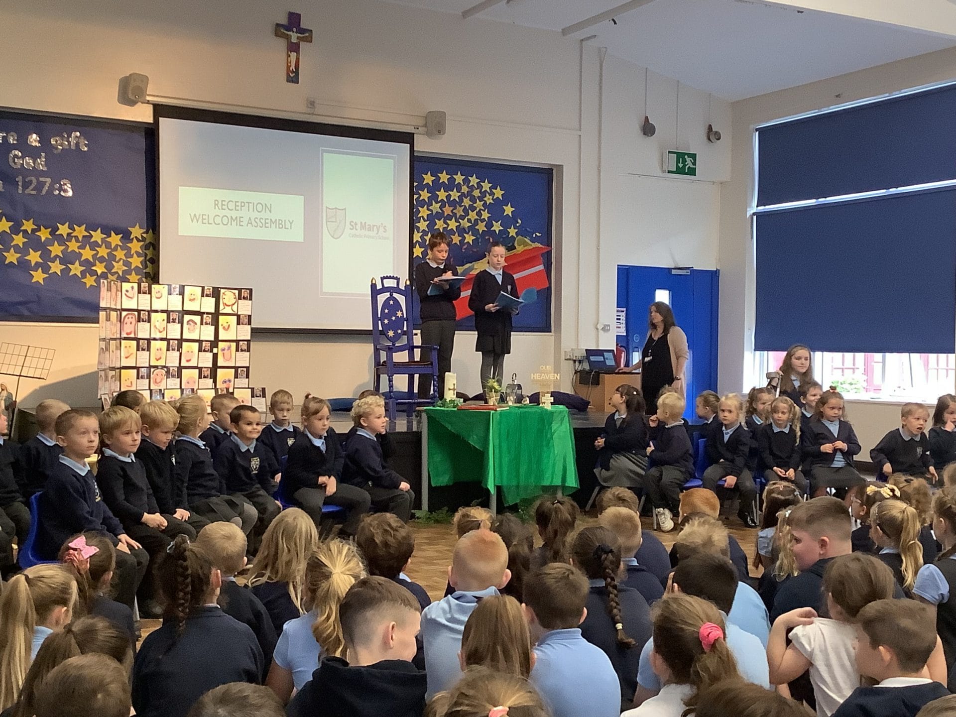 Today we welcomed our wonderful reception children and their families into our school. Their Year 6 buddies enjoyed taking them onto the stage and enjoyed telling us all about the children’s interests and future career goals. All children did a fantastic job and we are looking forward to the year ahead together.