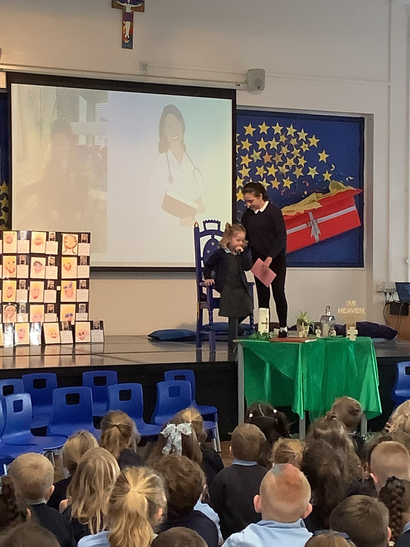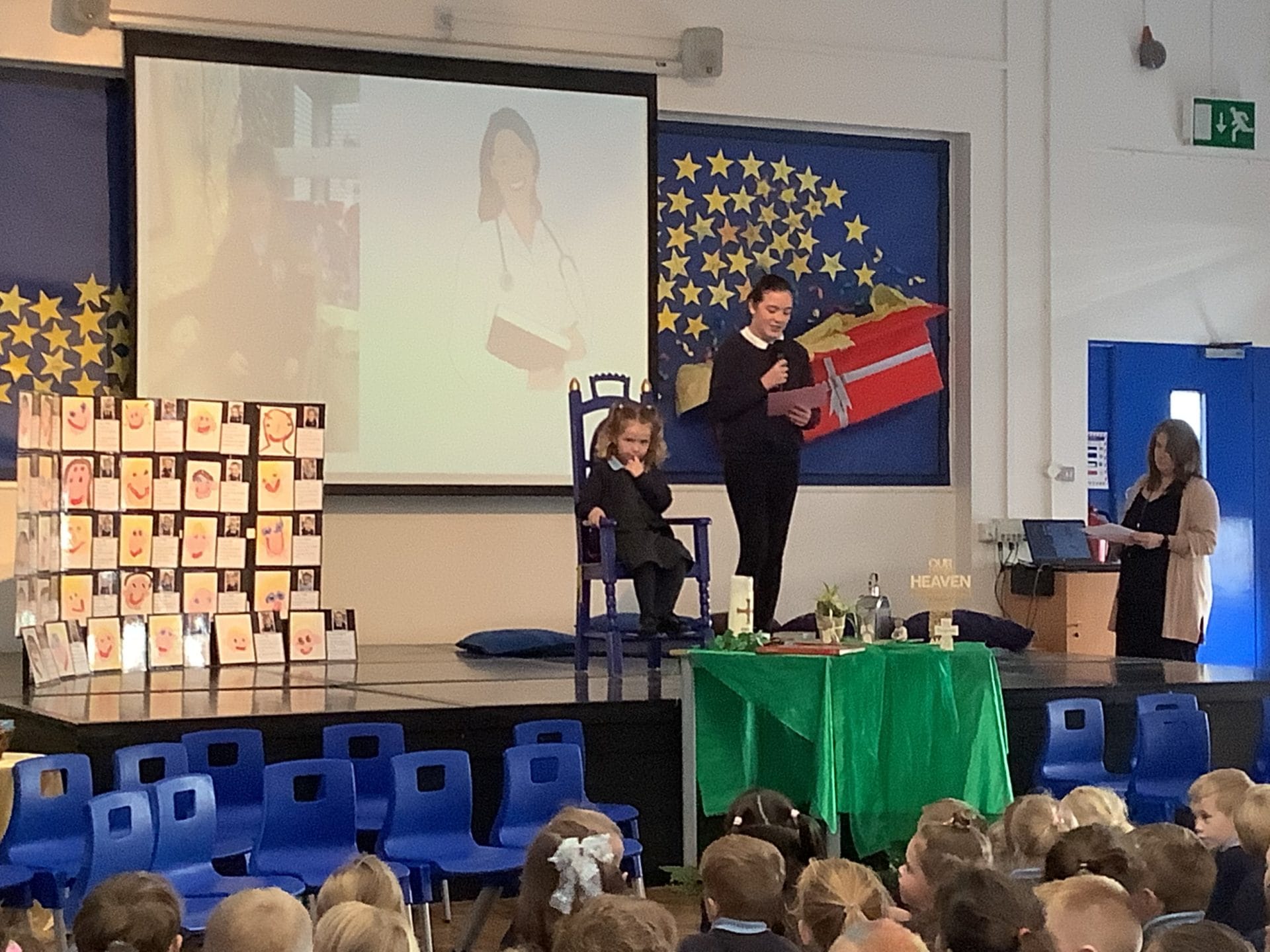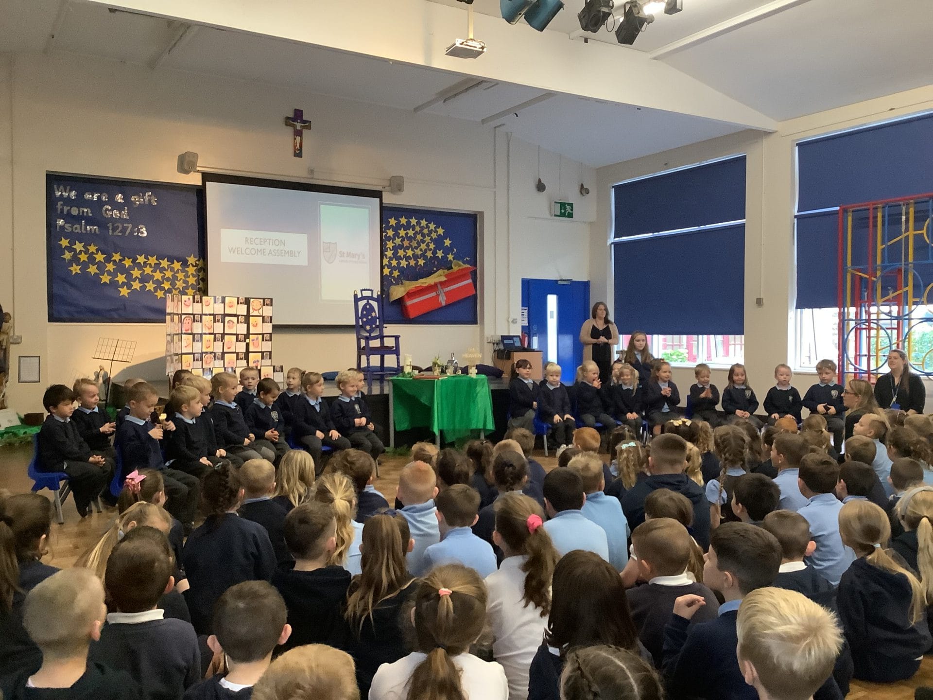 Today we welcomed our wonderful reception children and their families into our school. Their Year 6 buddies enjoyed taking them onto the stage and enjoyed telling us all about the children’s interests and future career goals. All children did a fantastic job and we are looking forward to the year ahead together.