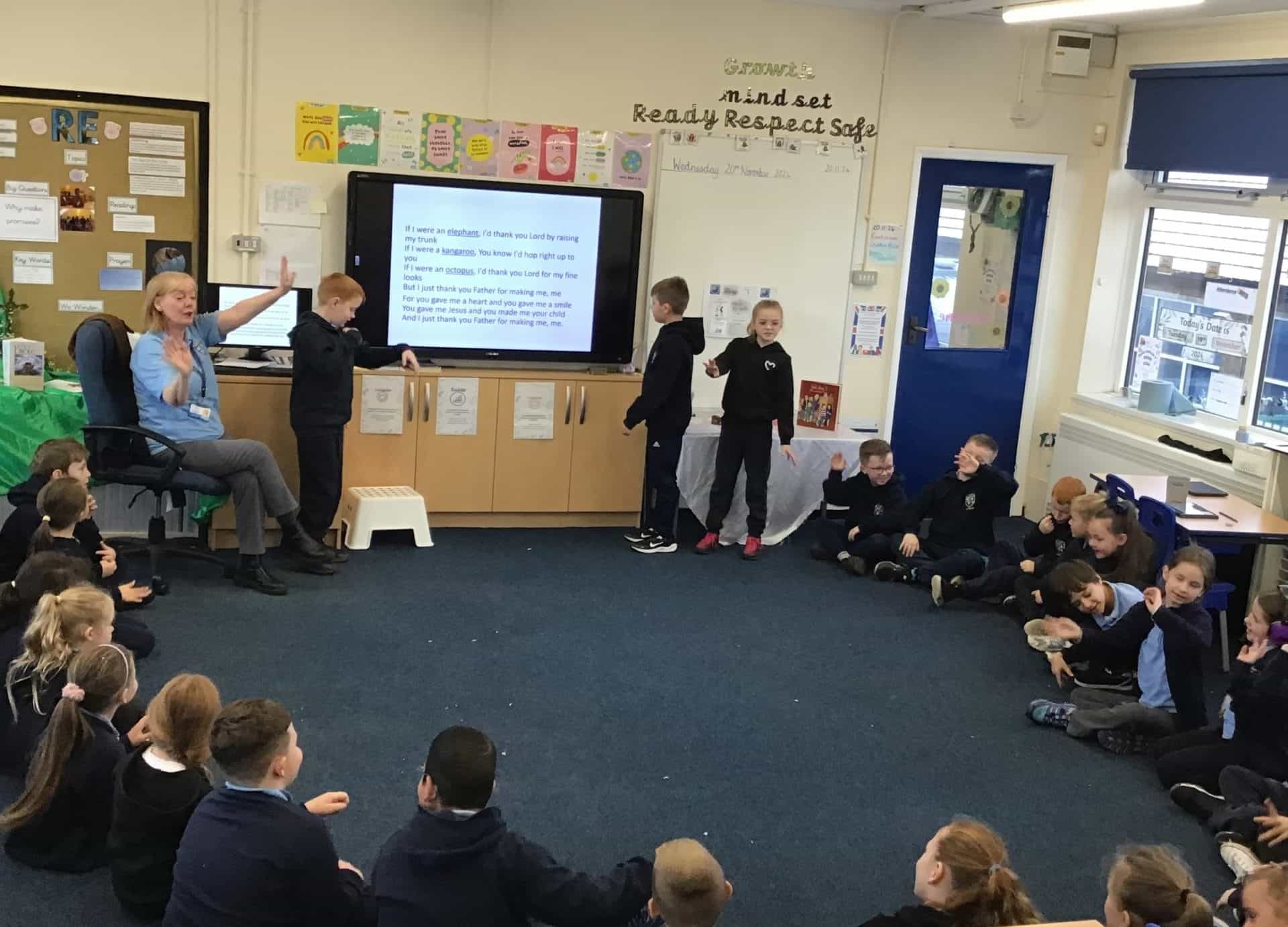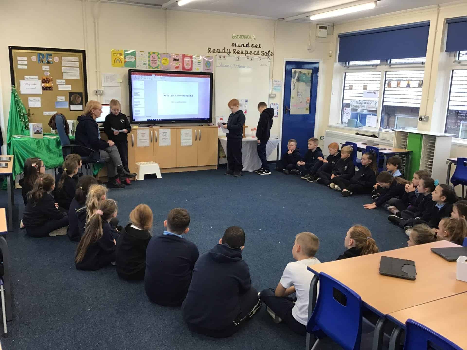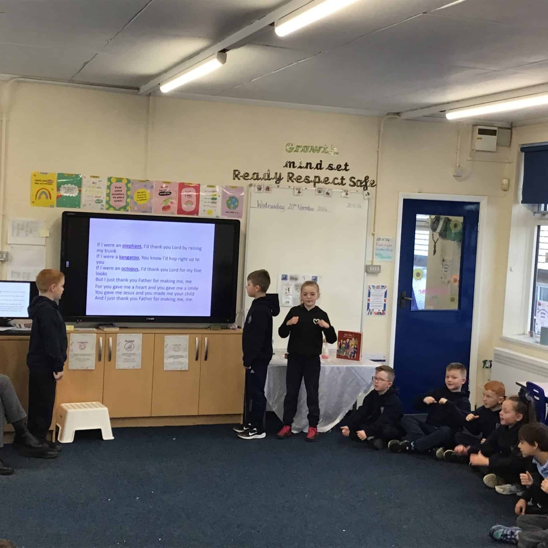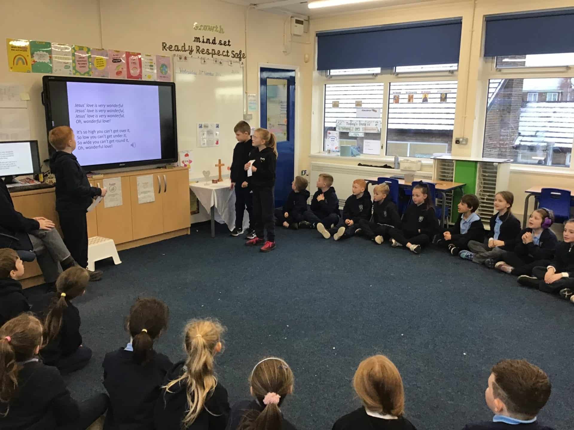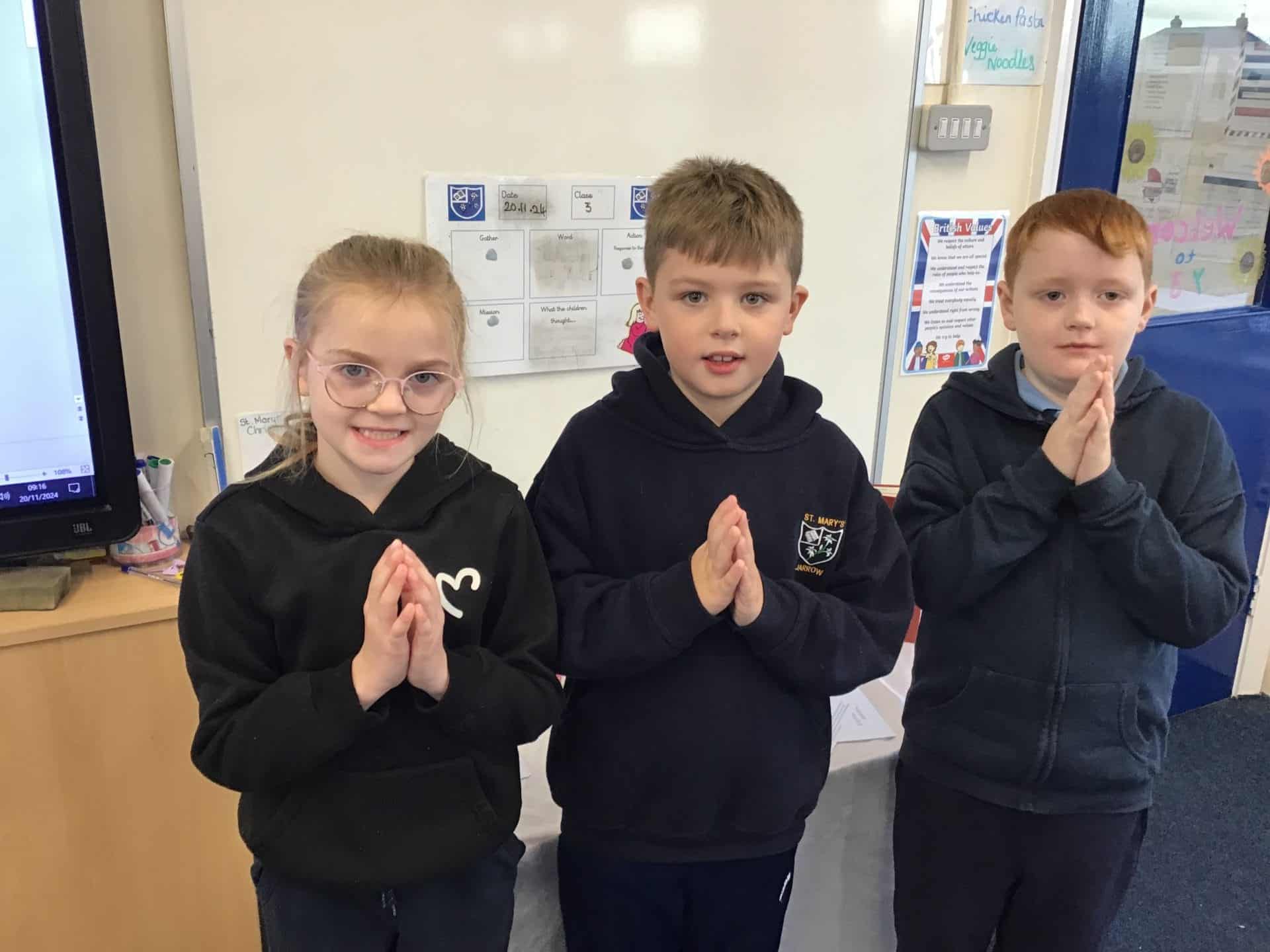 Today in class we were guided through a lovely liturgy by Joel, Myles and Kaci. The liturgy was a celebration of our topic of ‘Baptism – Belonging and Promises’. The reading was from the Acts of the Apostles and explained to us the importance of sharing and being a community. We sang ‘Jesus’ love is very wonderful and If I were a butterfly’. The children enjoyed sharing some of the promises and commitments they have made.