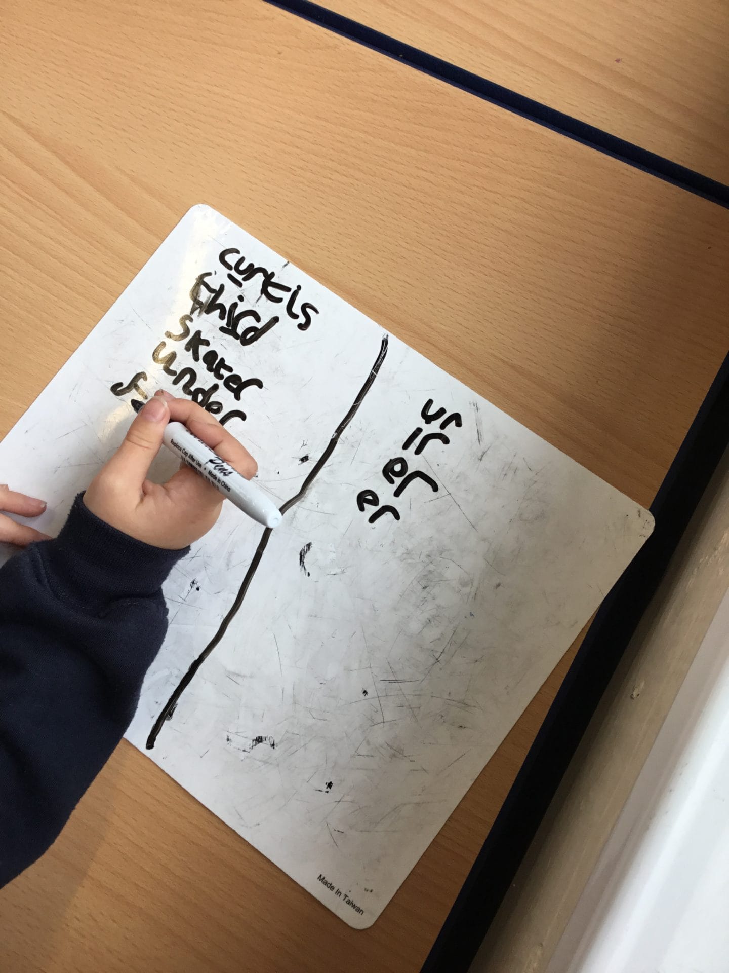 This week, we have been looking at the /er/ sound in phonics. We have looked at four different ways to spell the /er/ sound. We looked through a text called ‘Saturday Skater’ and found lots of words that contain the /er/ sound. We wrote the way we spell the sound next to the word too. Year 1 are phonics superstars!