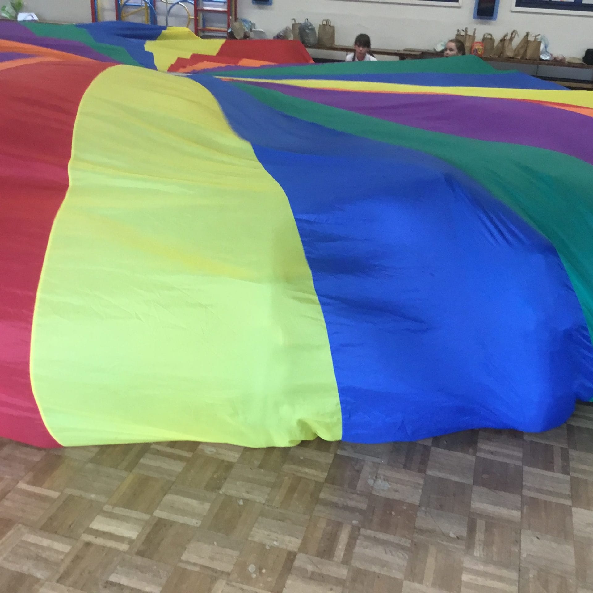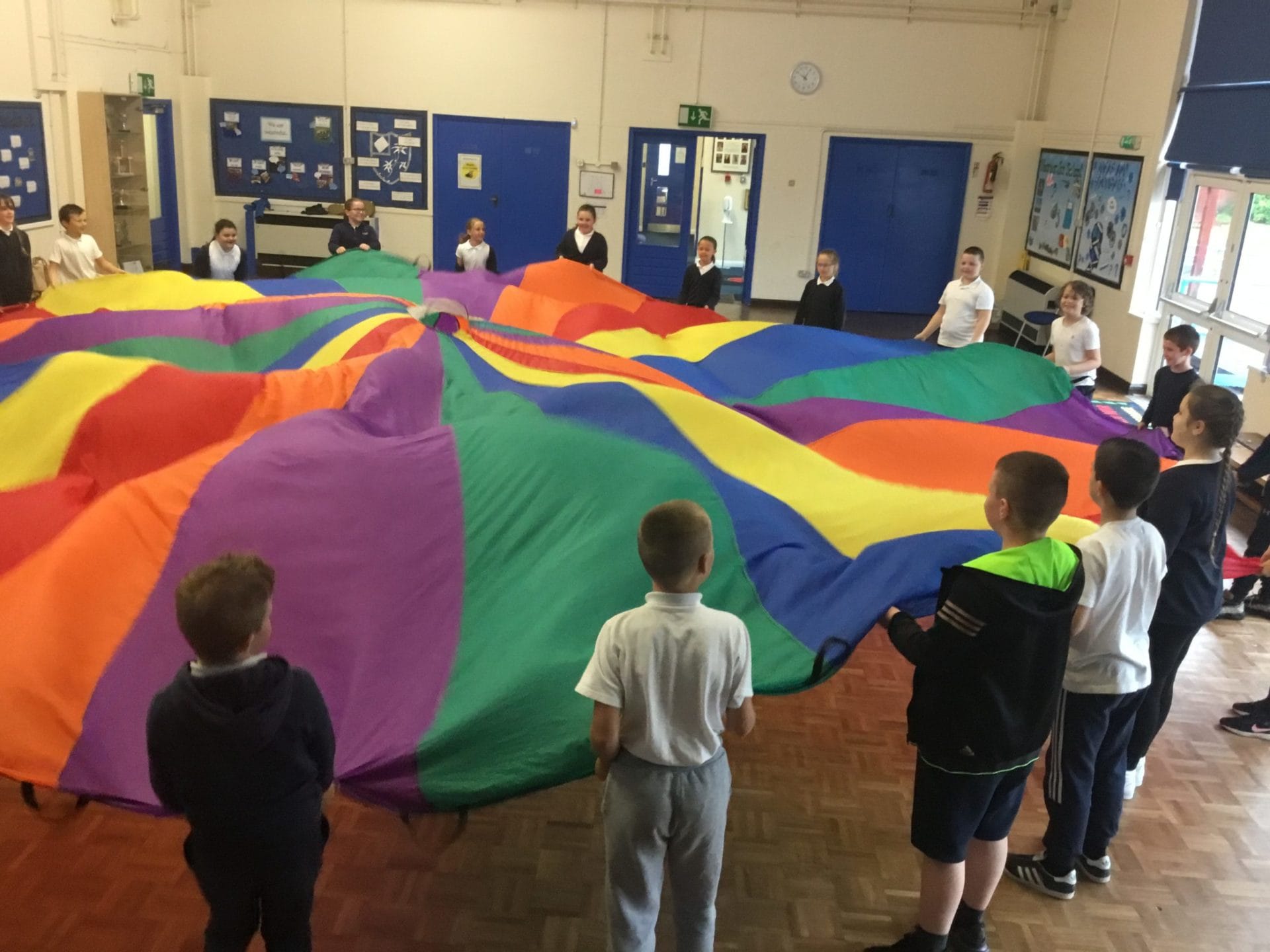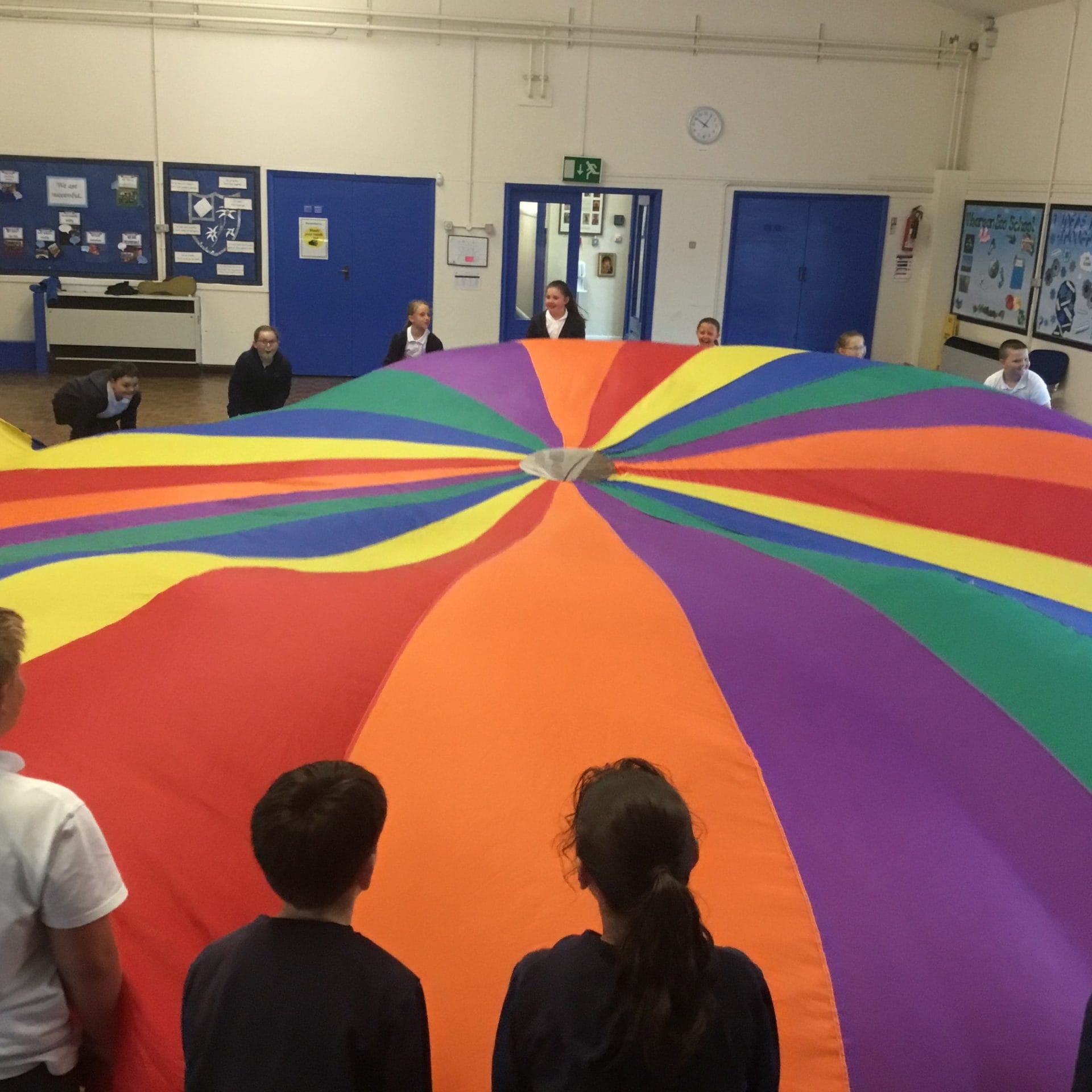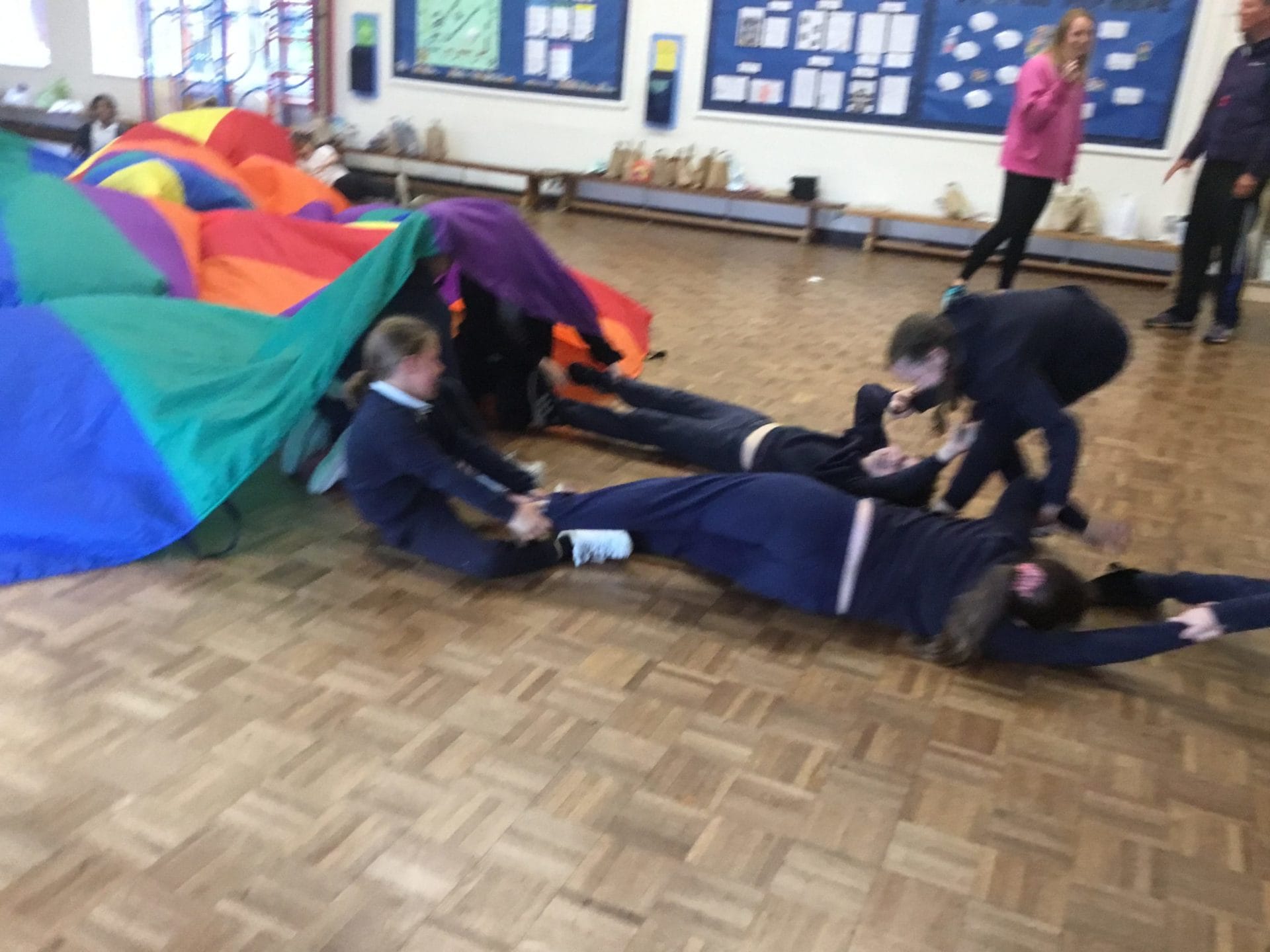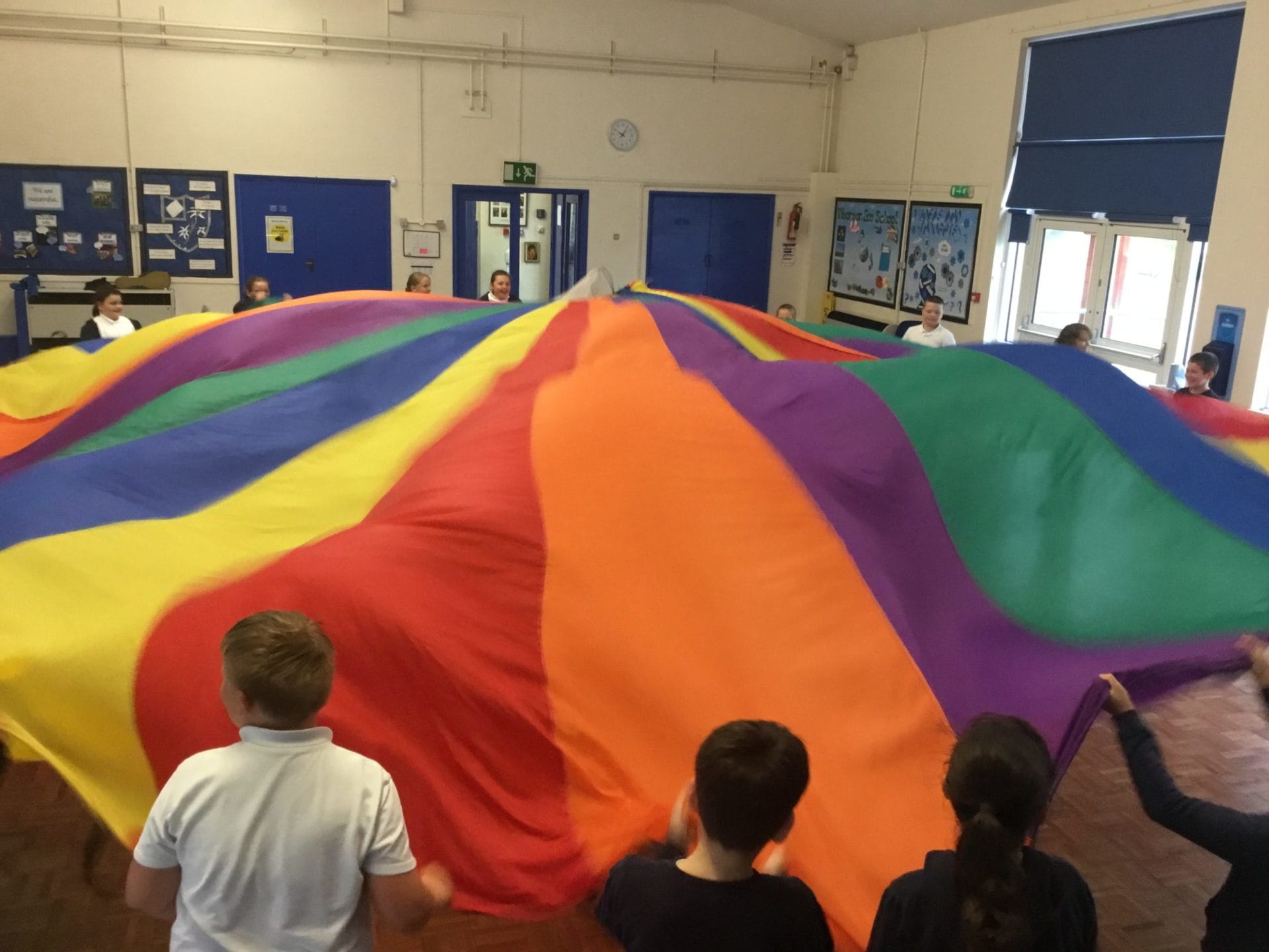 We put lots of effort into tug-of-war. We were eaten by sharks and cats when we were under the parachute and then we all disappeared!