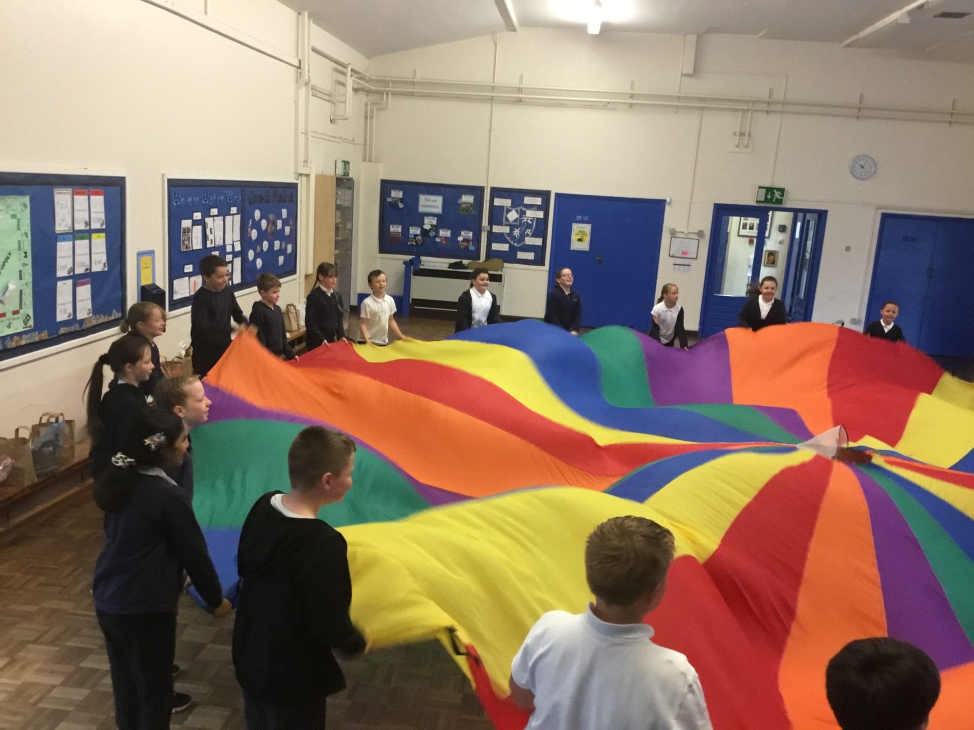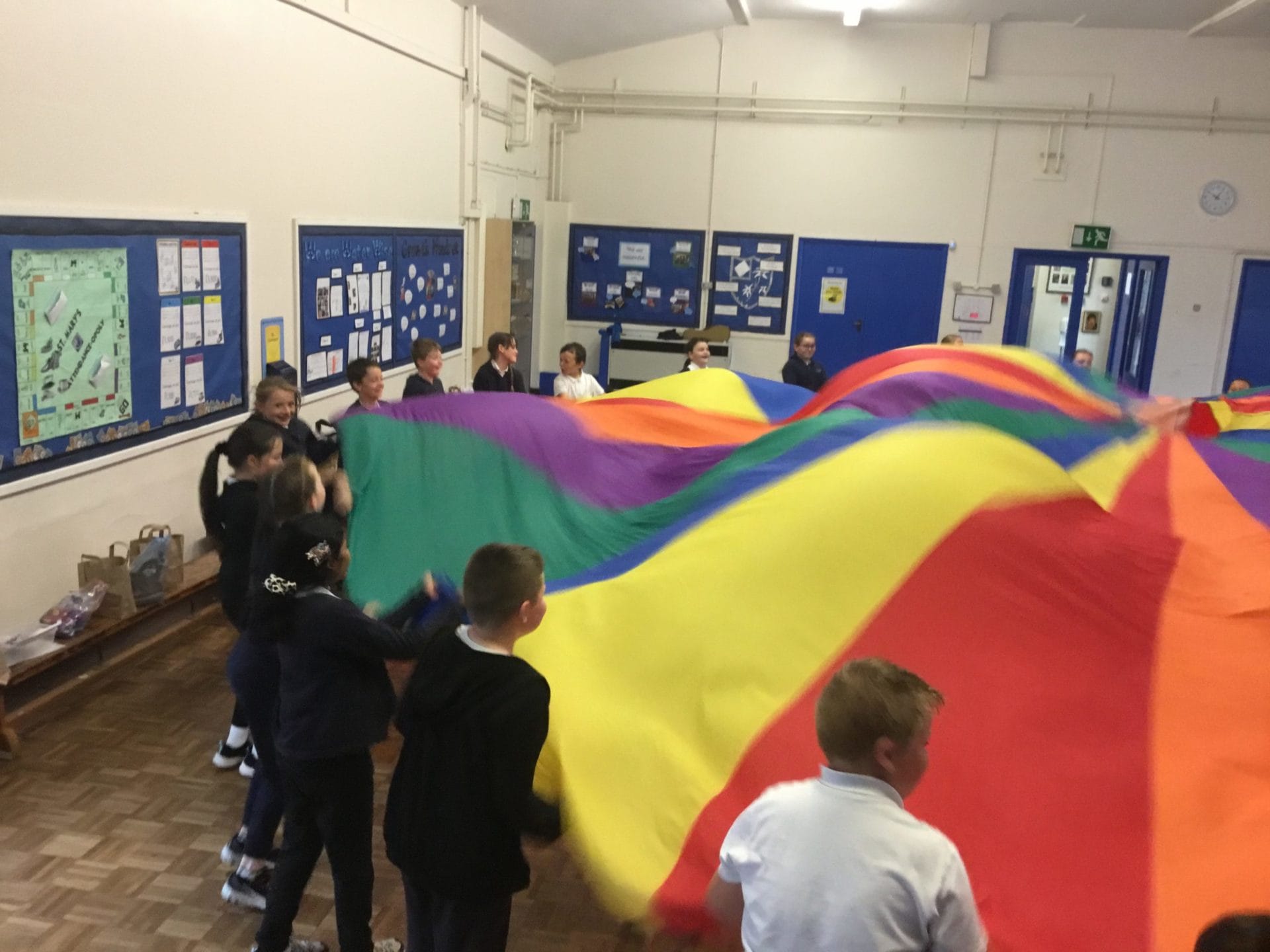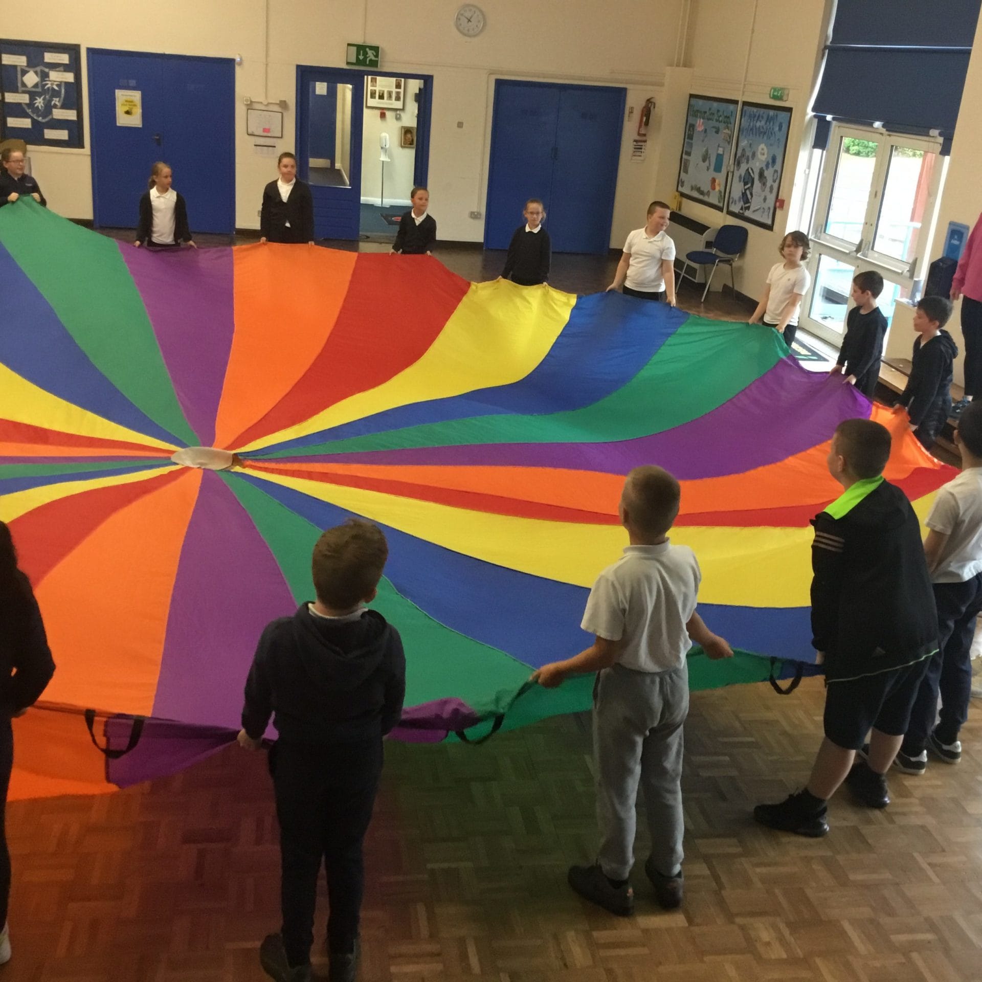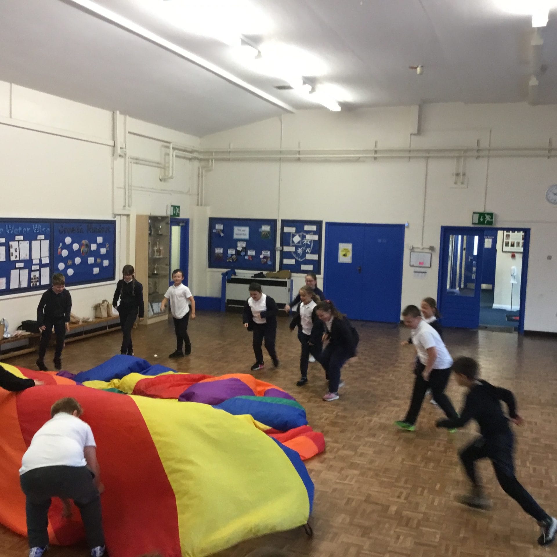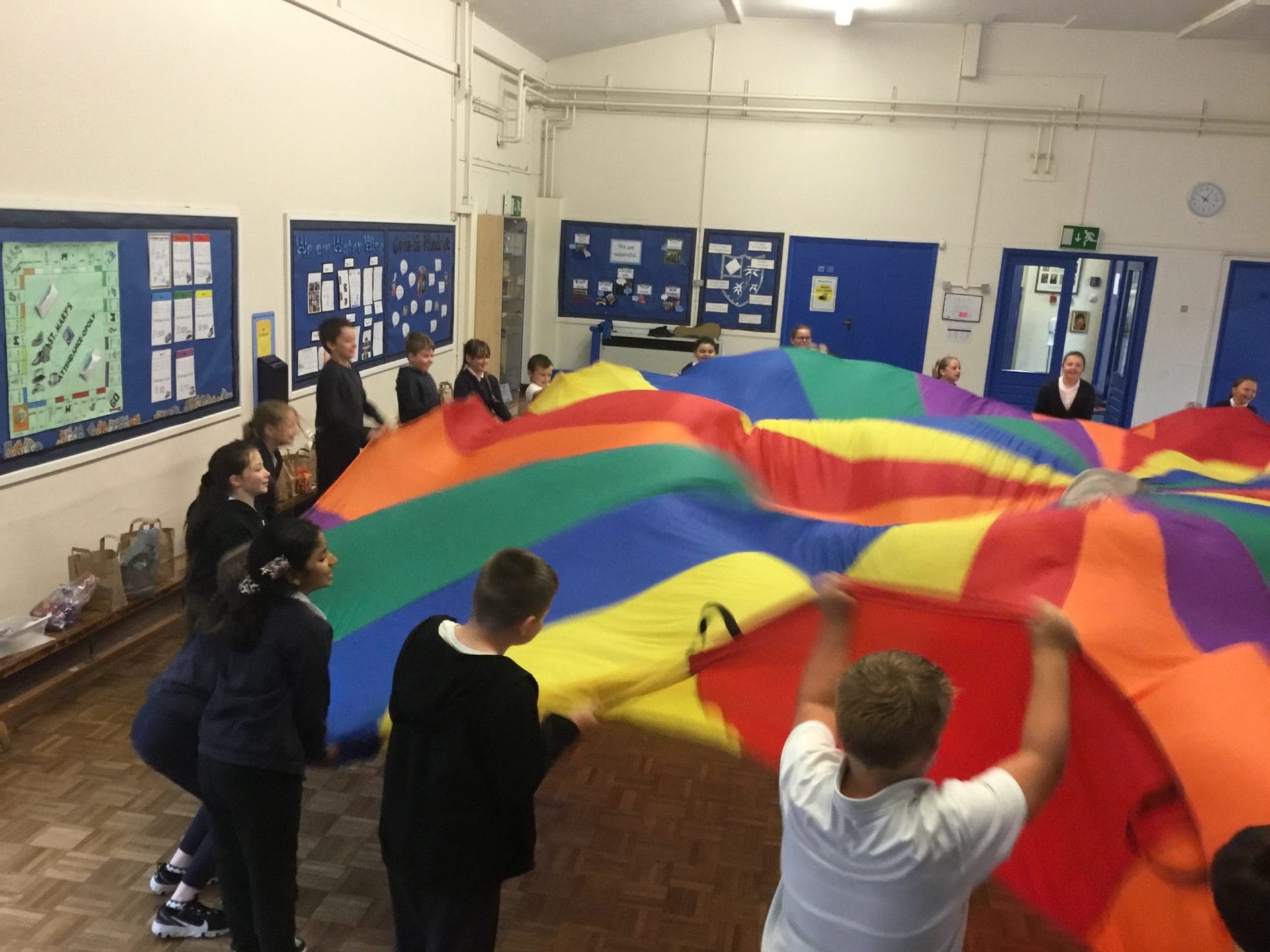 We put lots of effort into tug-of-war. We were eaten by sharks and cats when we were under the parachute and then we all disappeared!