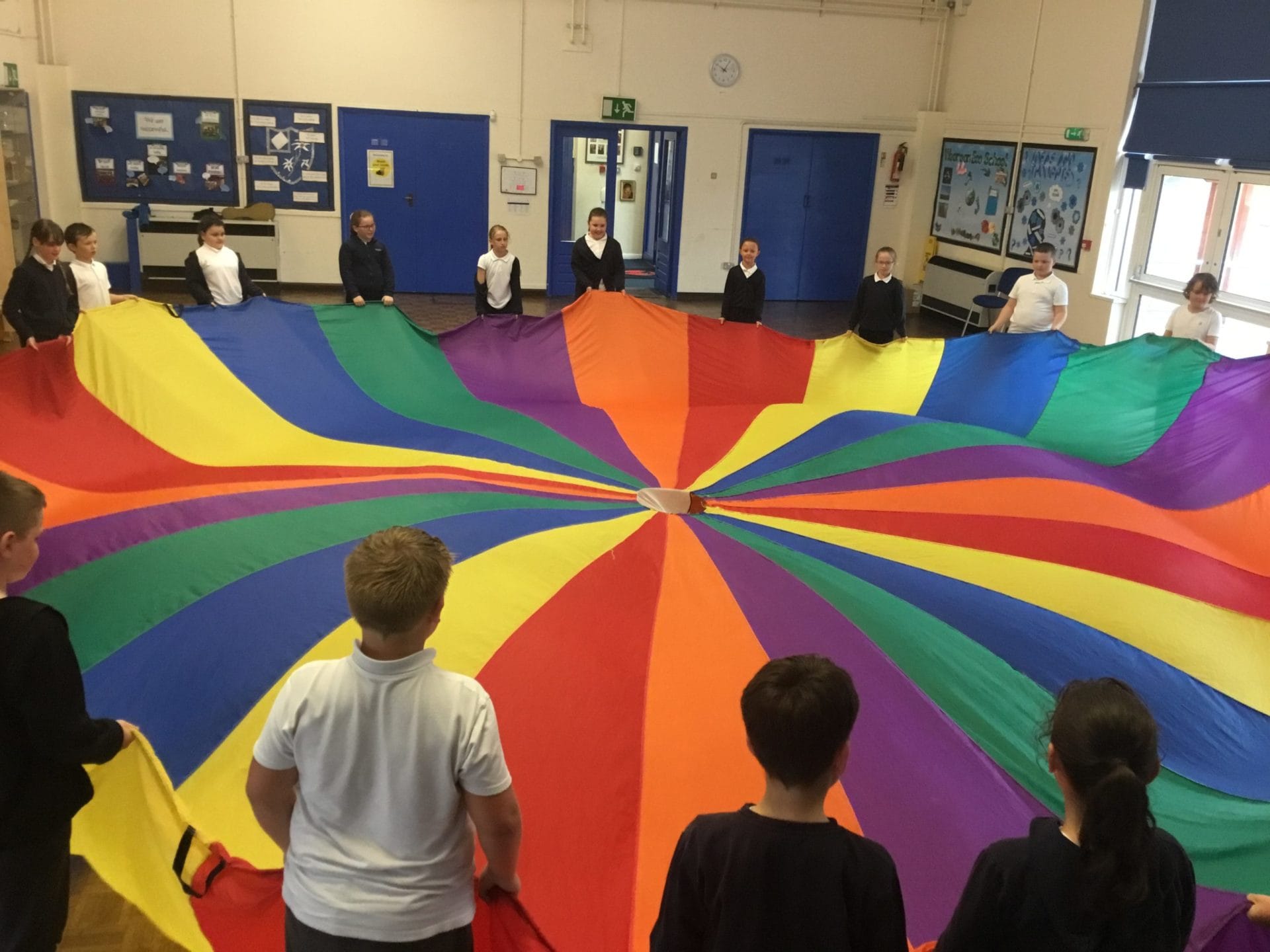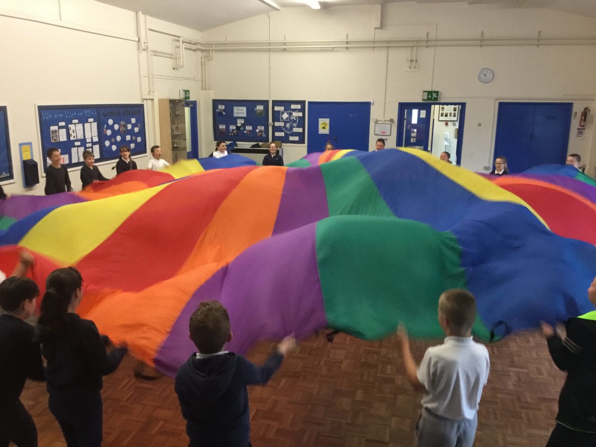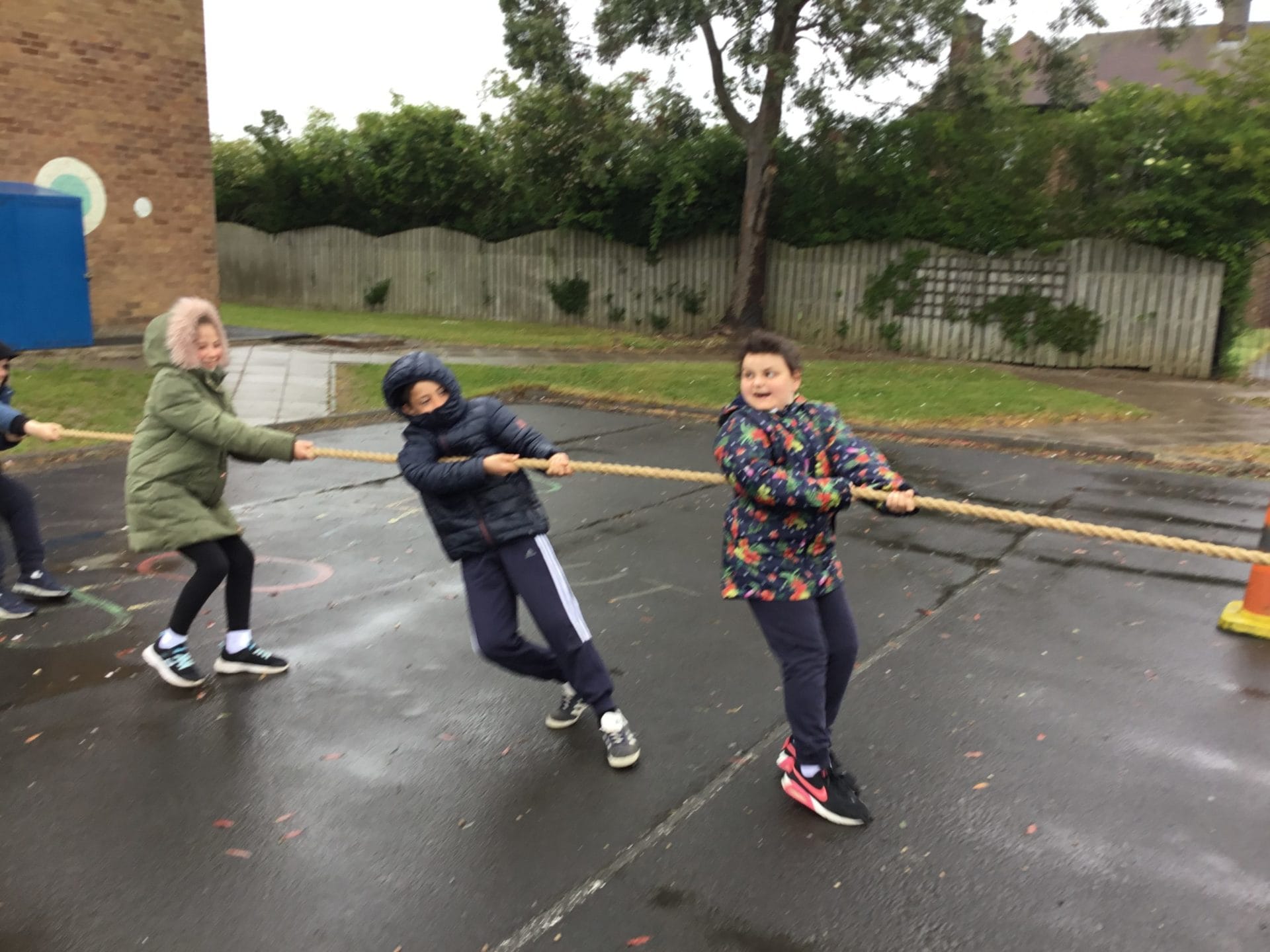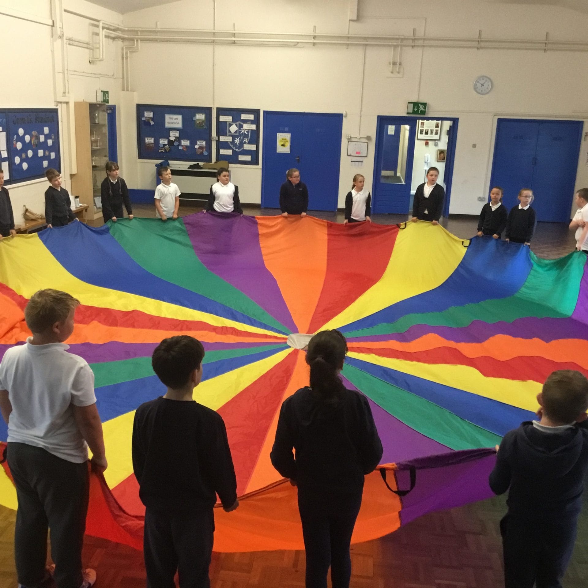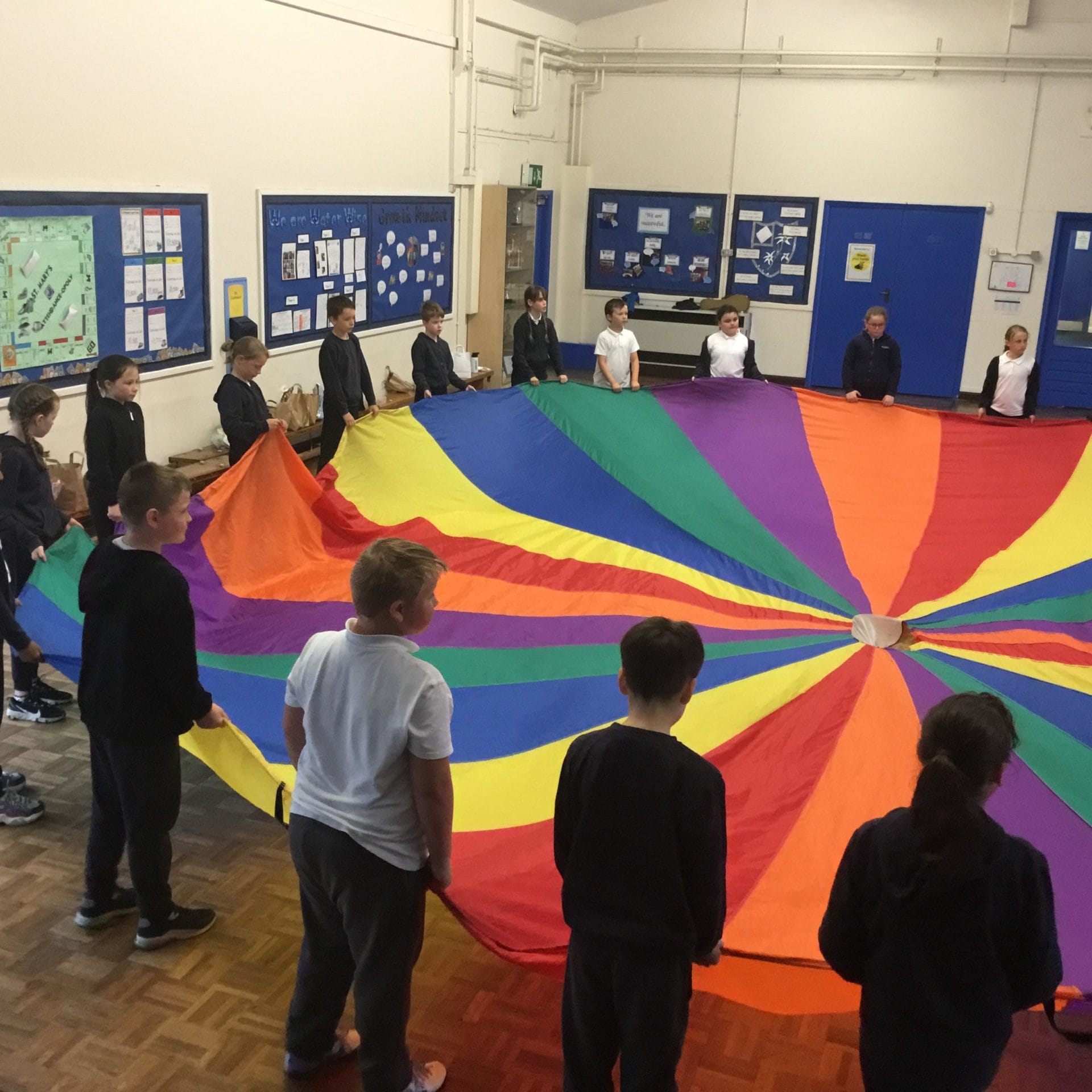 We put lots of effort into tug-of-war. We were eaten by sharks and cats when we were under the parachute and then we all disappeared!