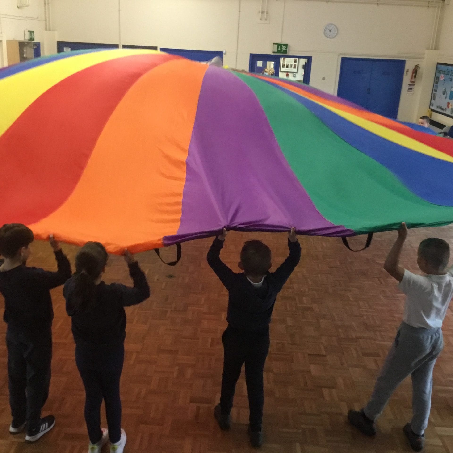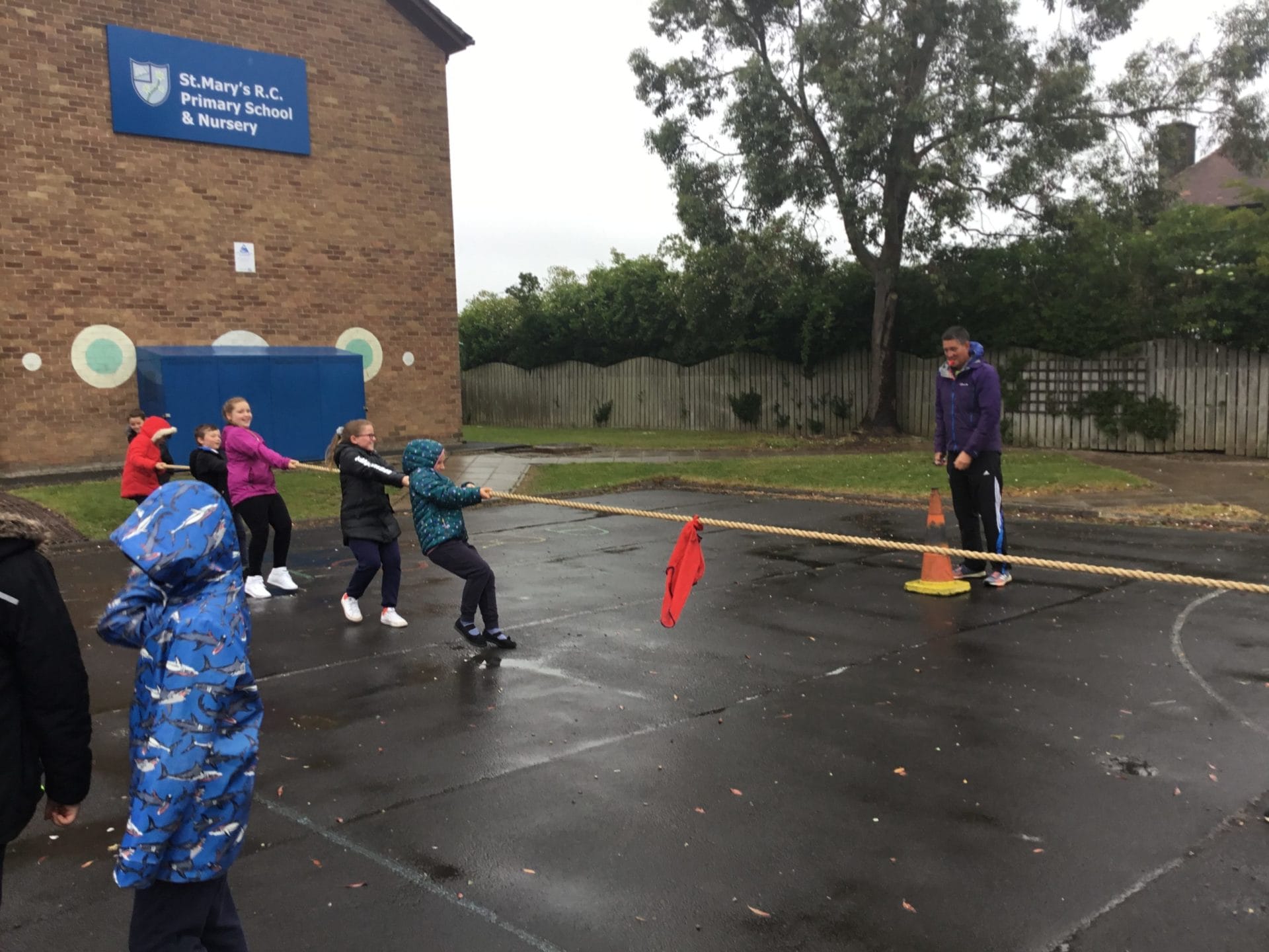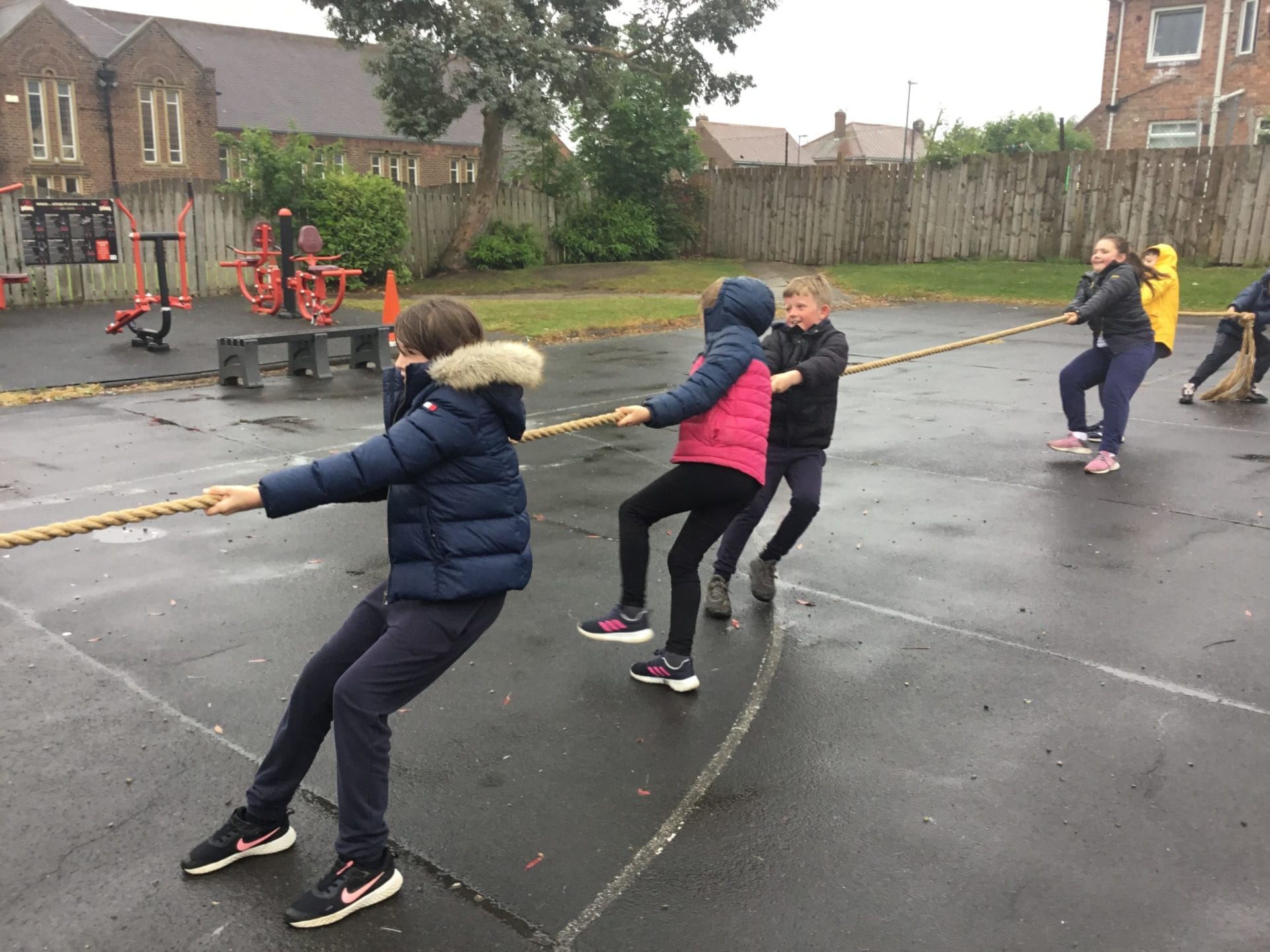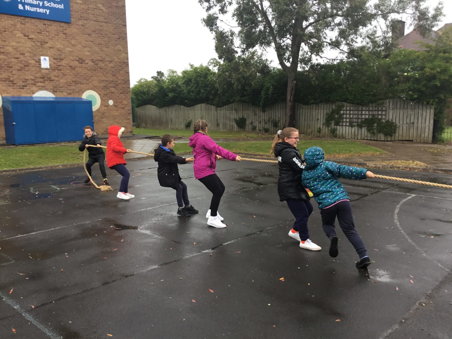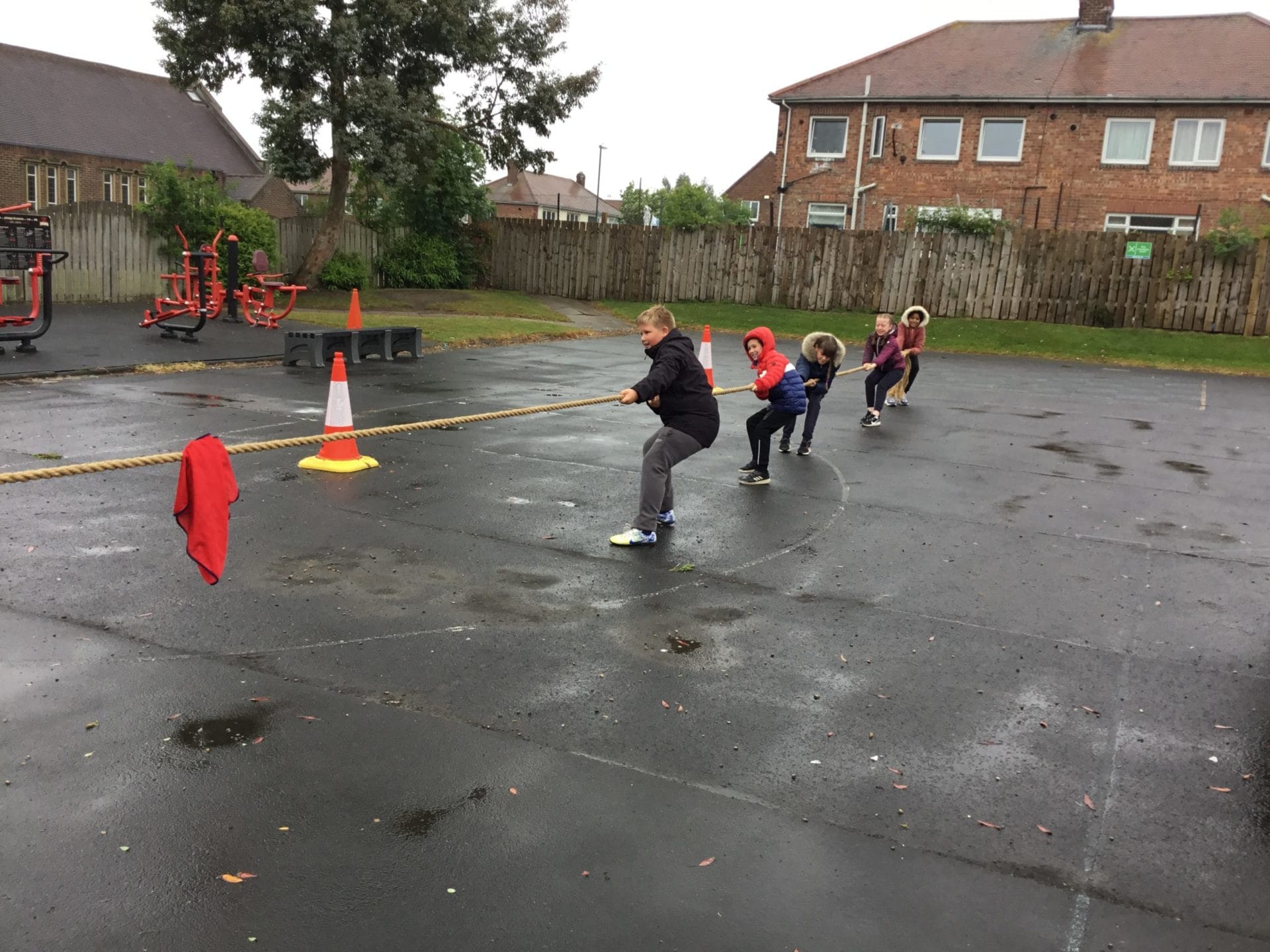 We put lots of effort into tug-of-war. We were eaten by sharks and cats when we were under the parachute and then we all disappeared!
