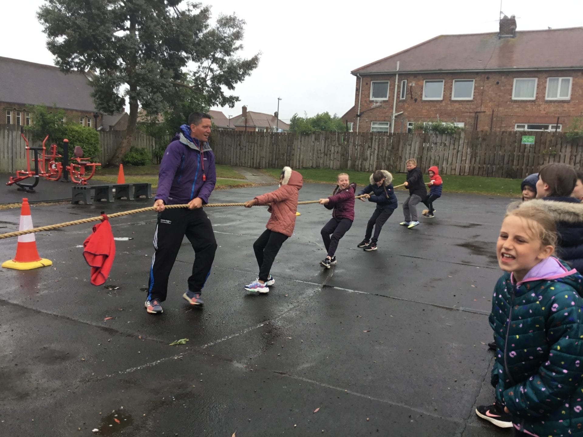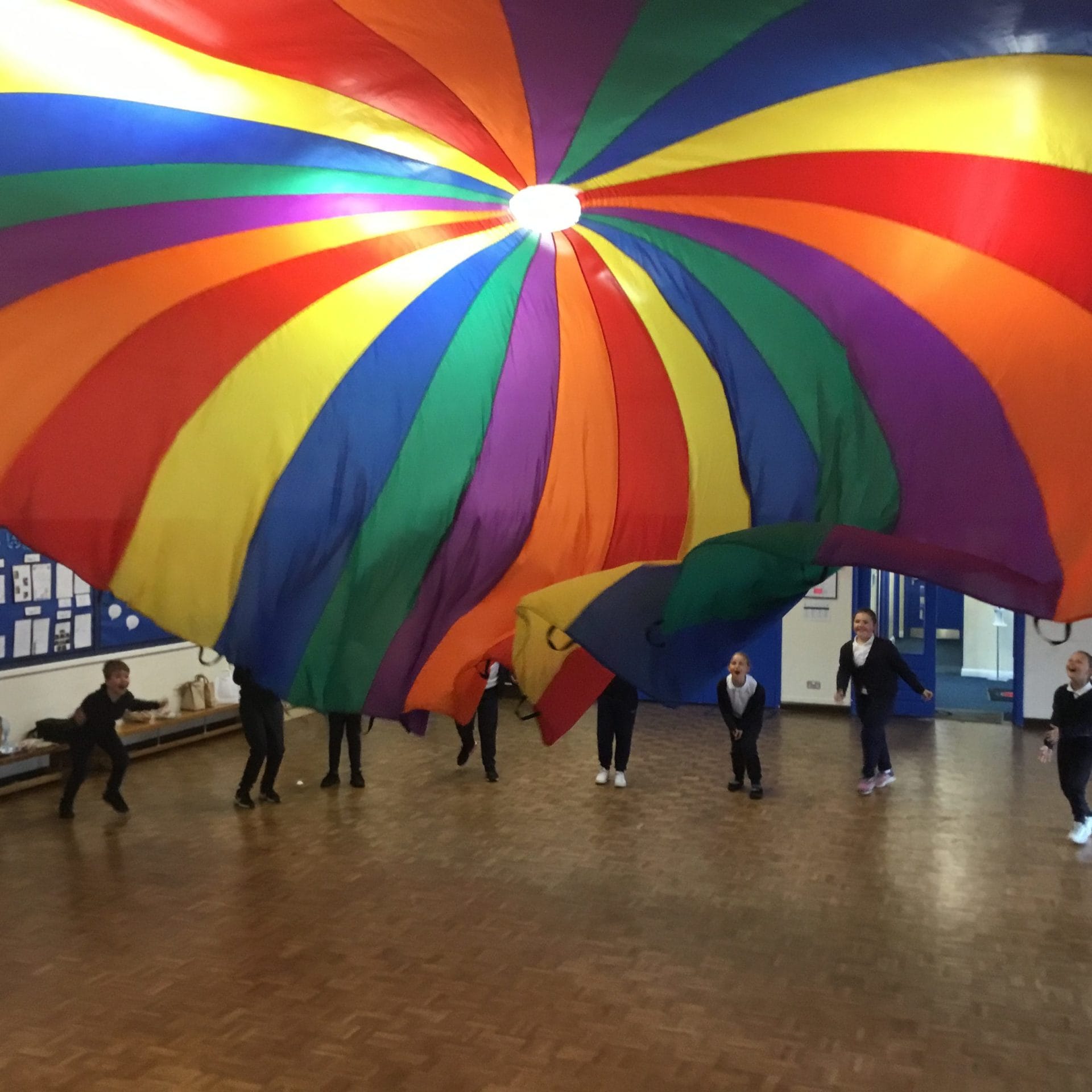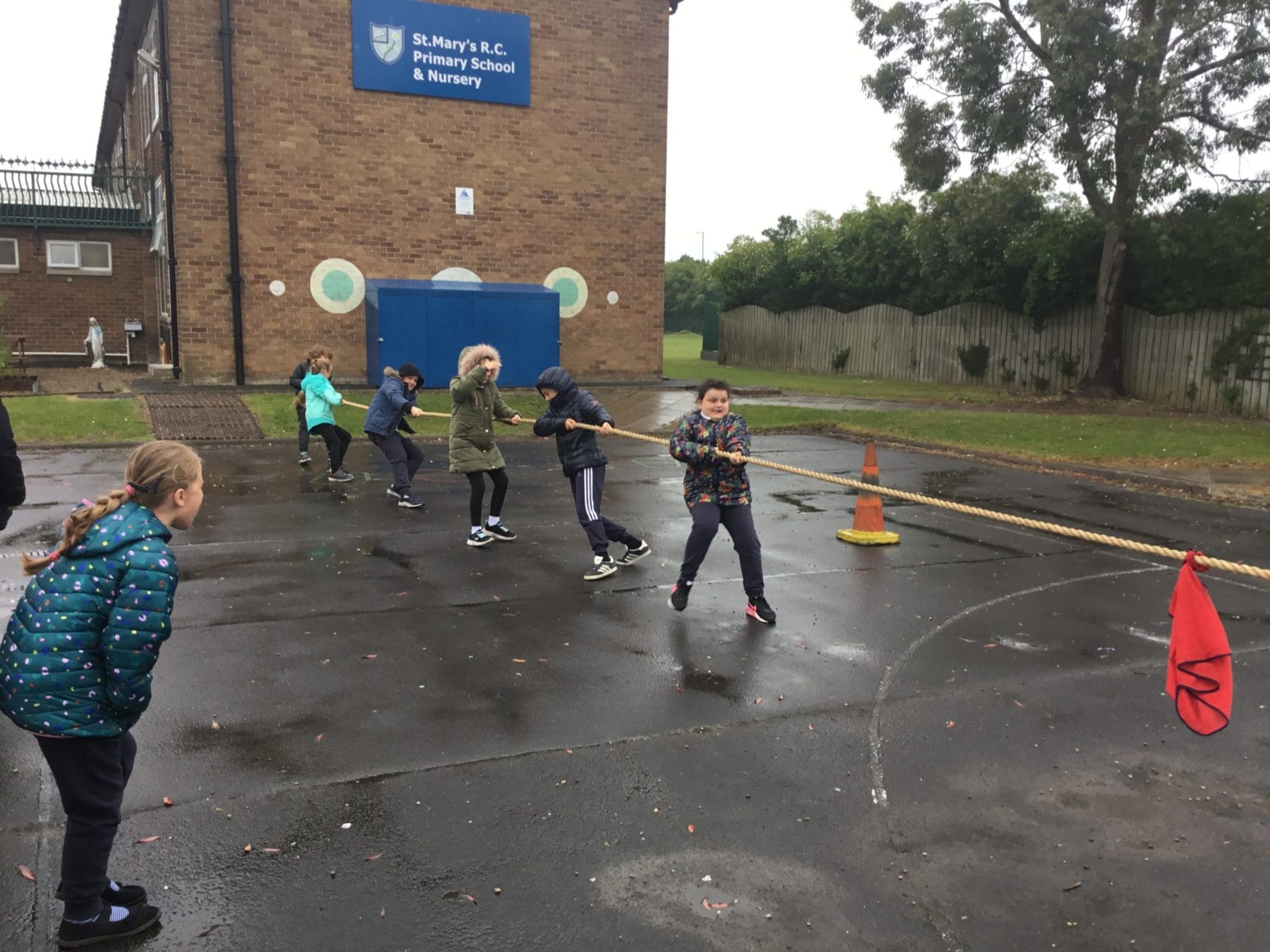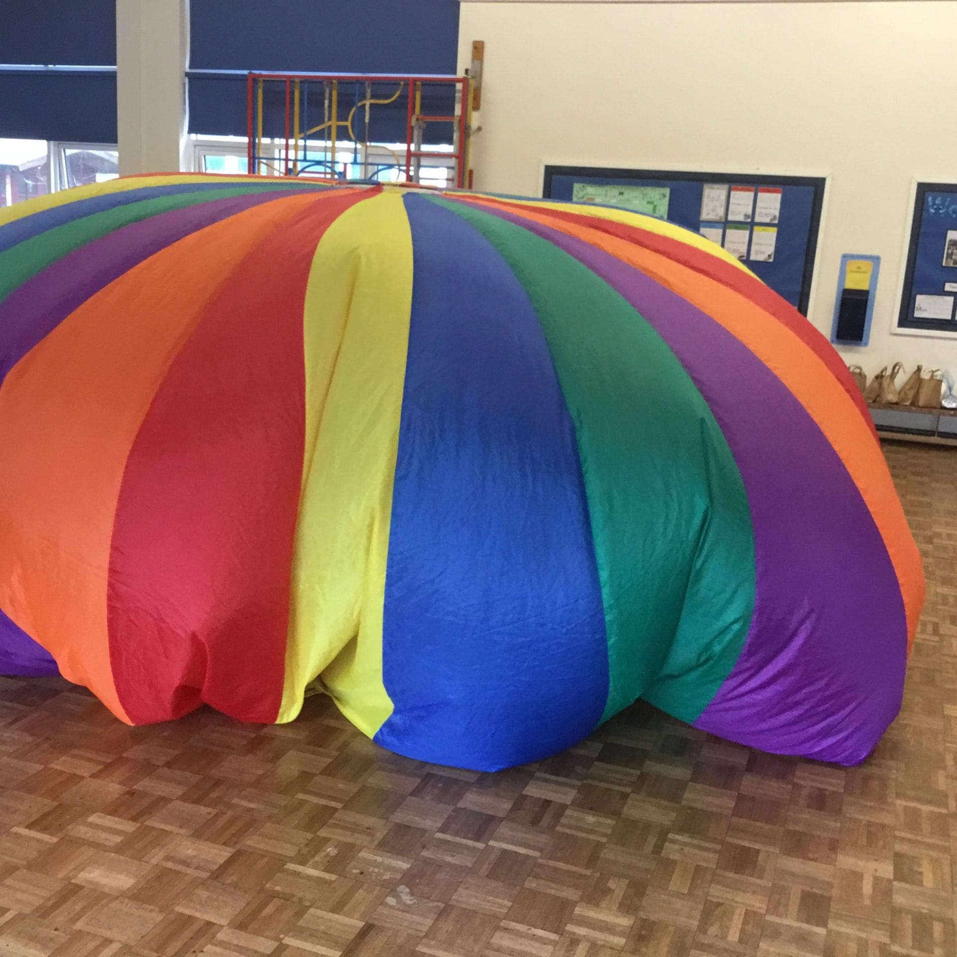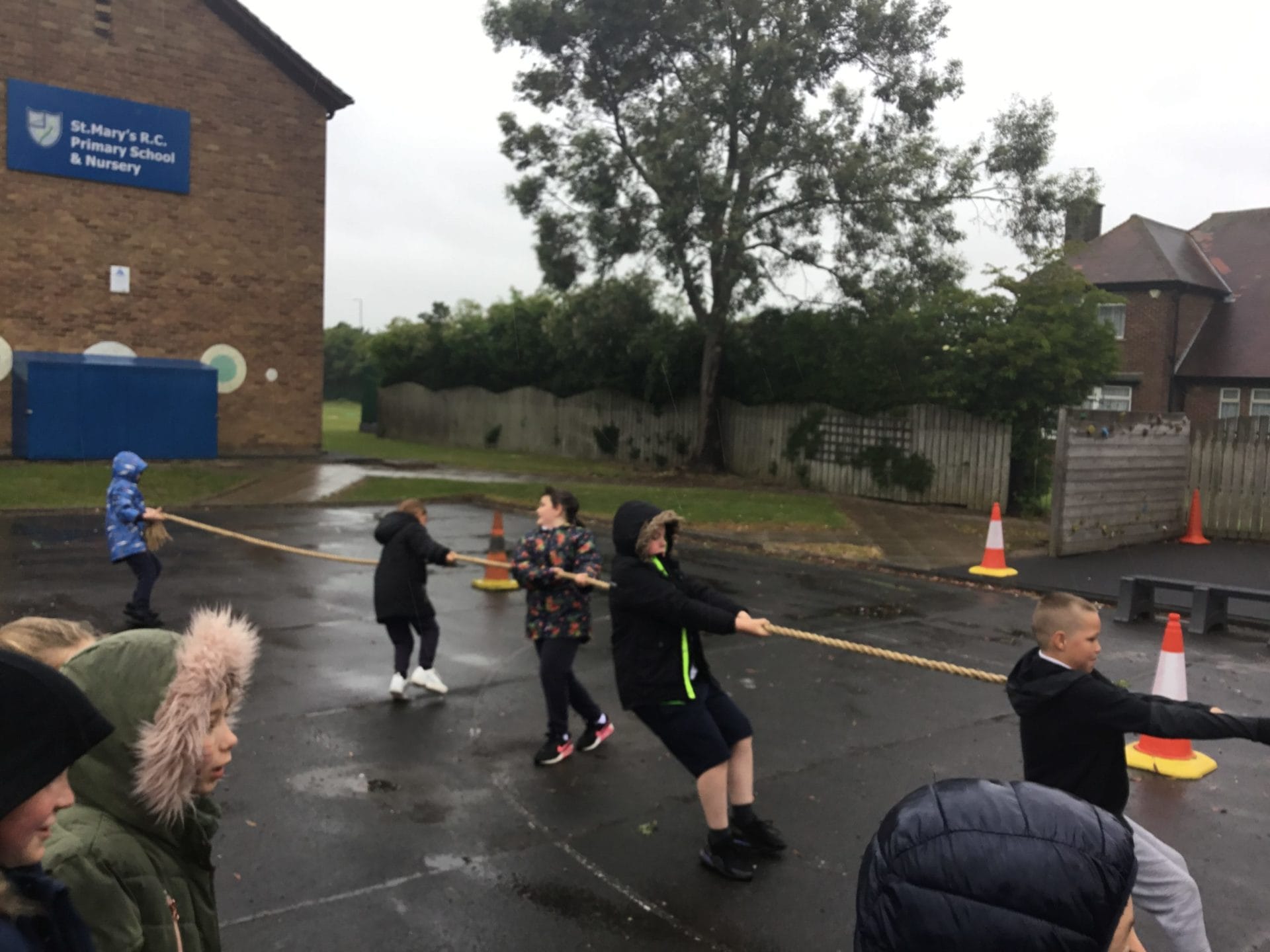 We put lots of effort into tug-of-war. We were eaten by sharks and cats when we were under the parachute and then we all disappeared!