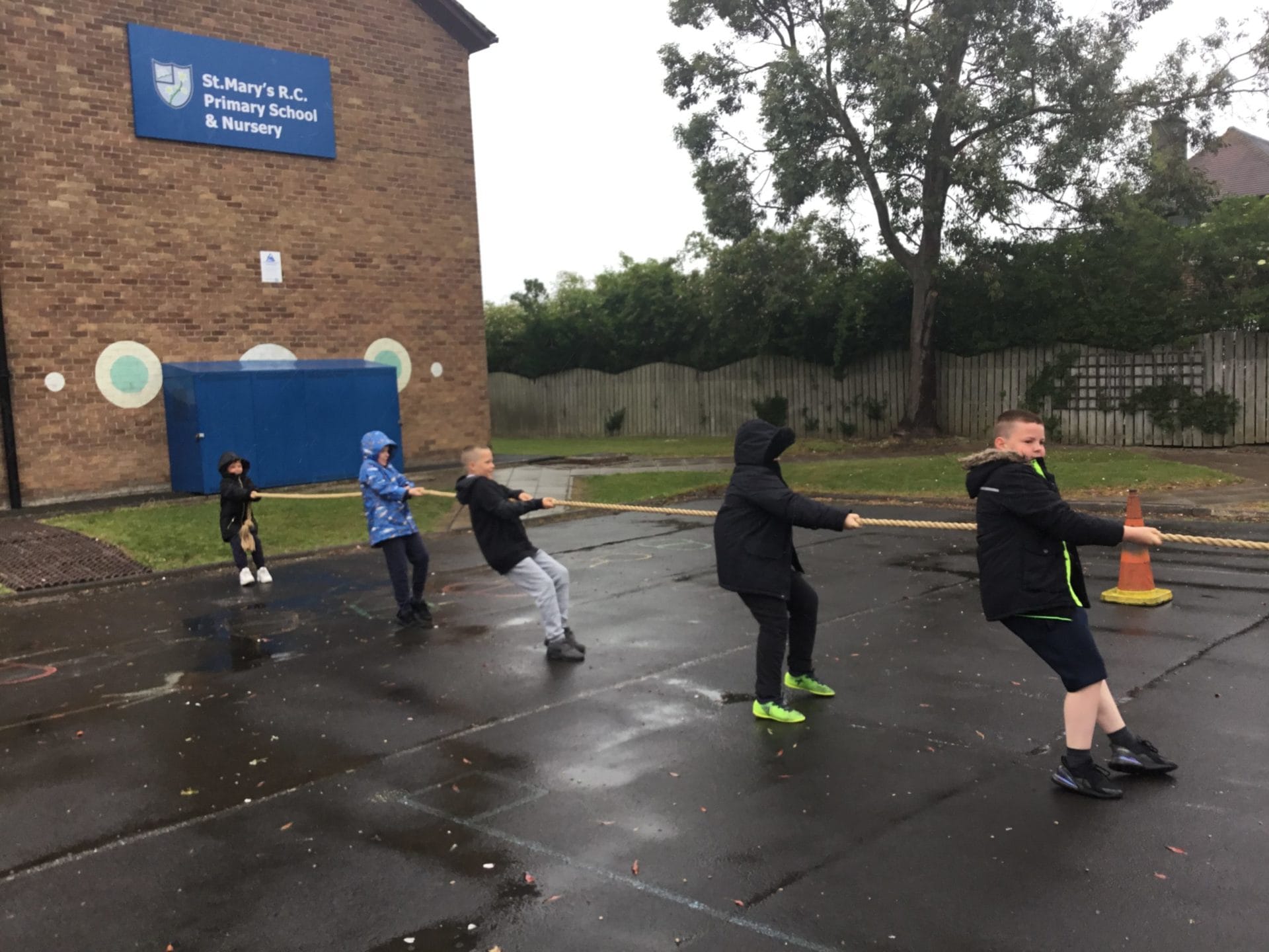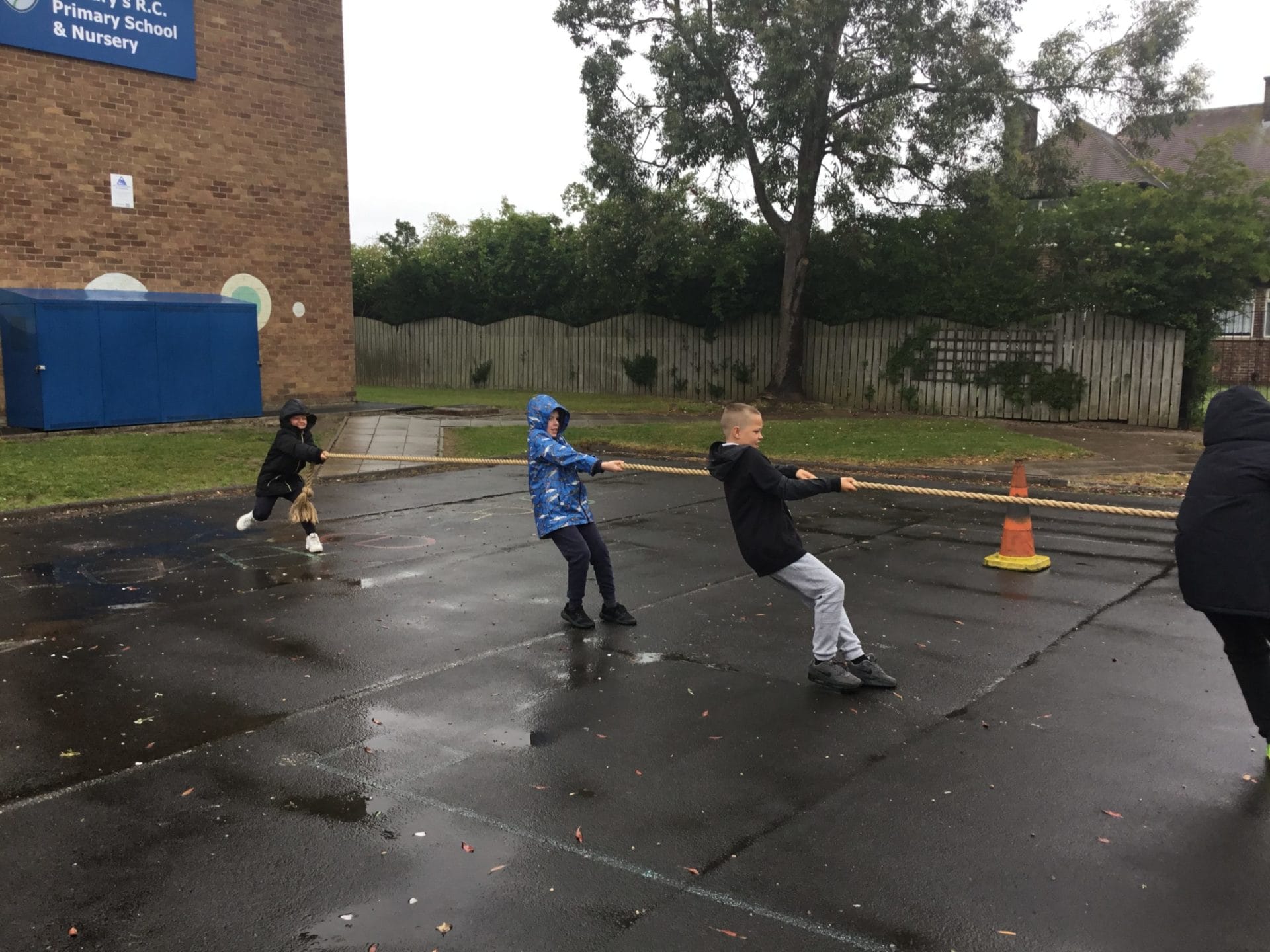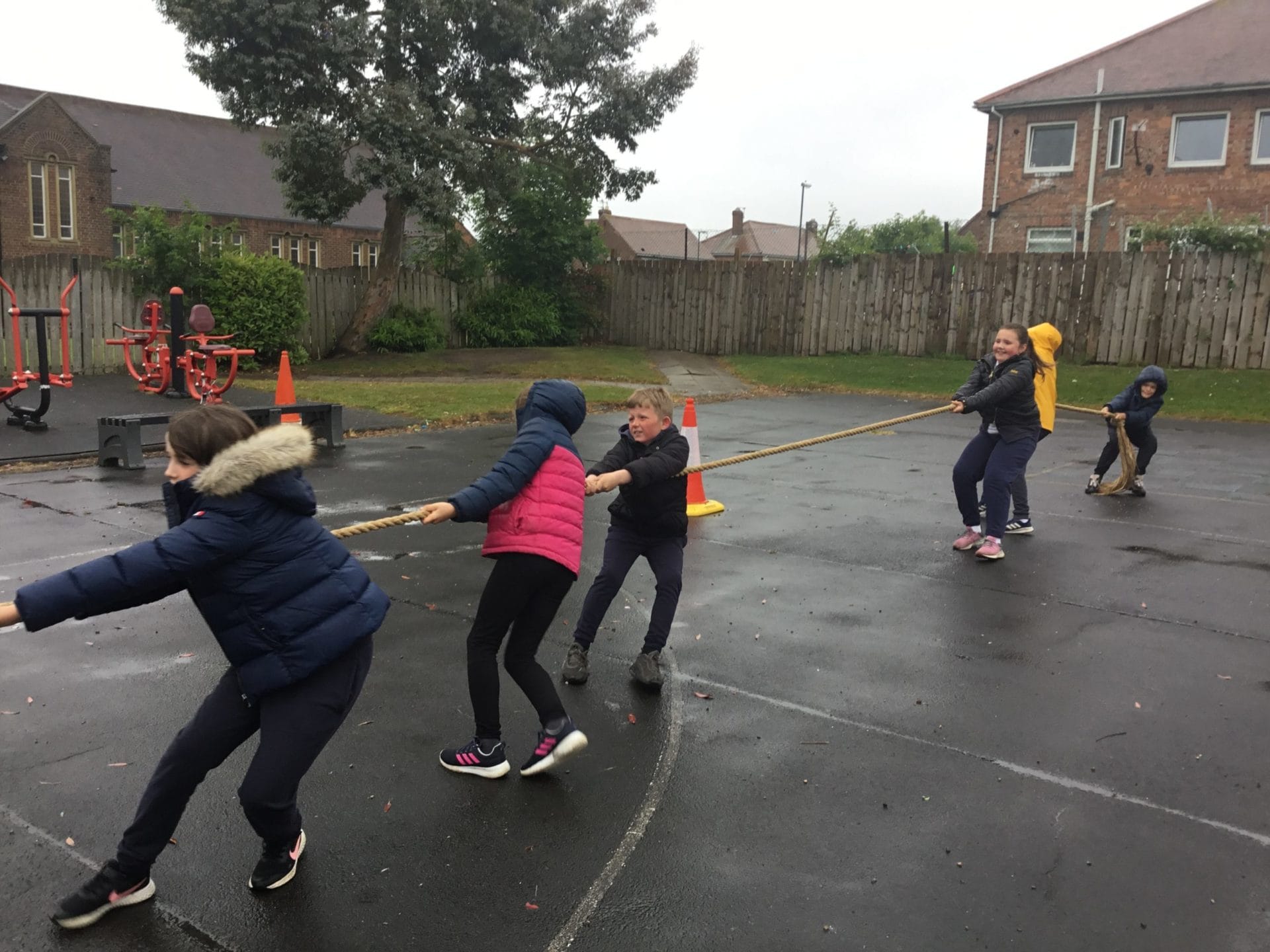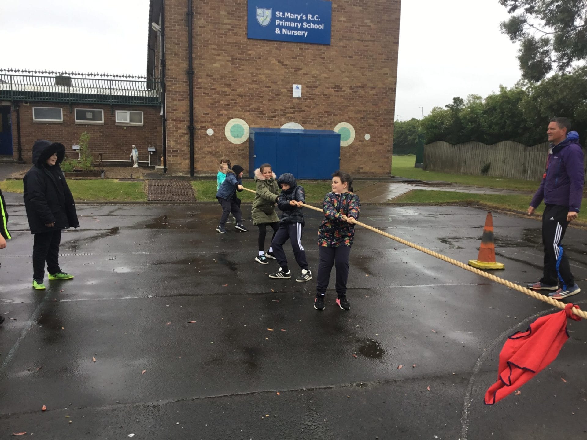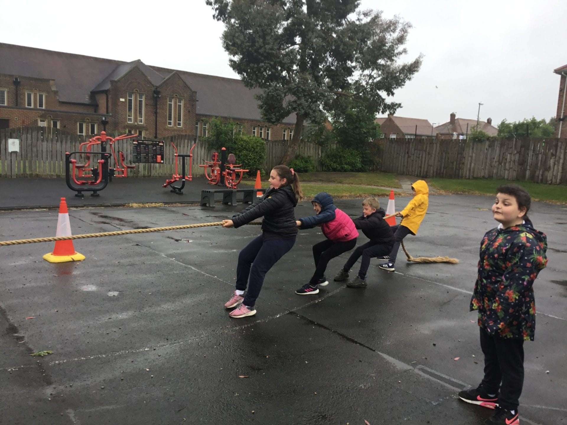 We put lots of effort into tug-of-war. We were eaten by sharks and cats when we were under the parachute and then we all disappeared!