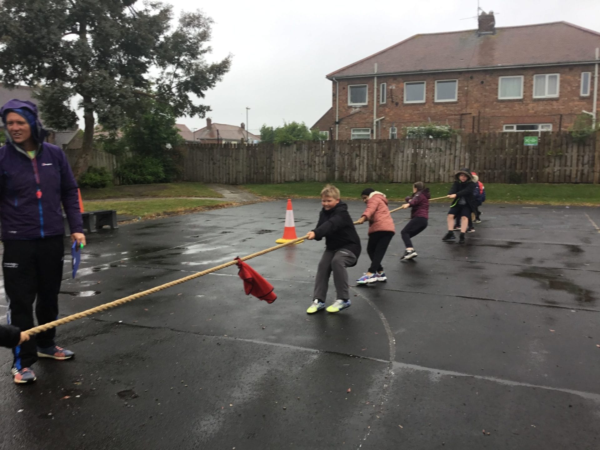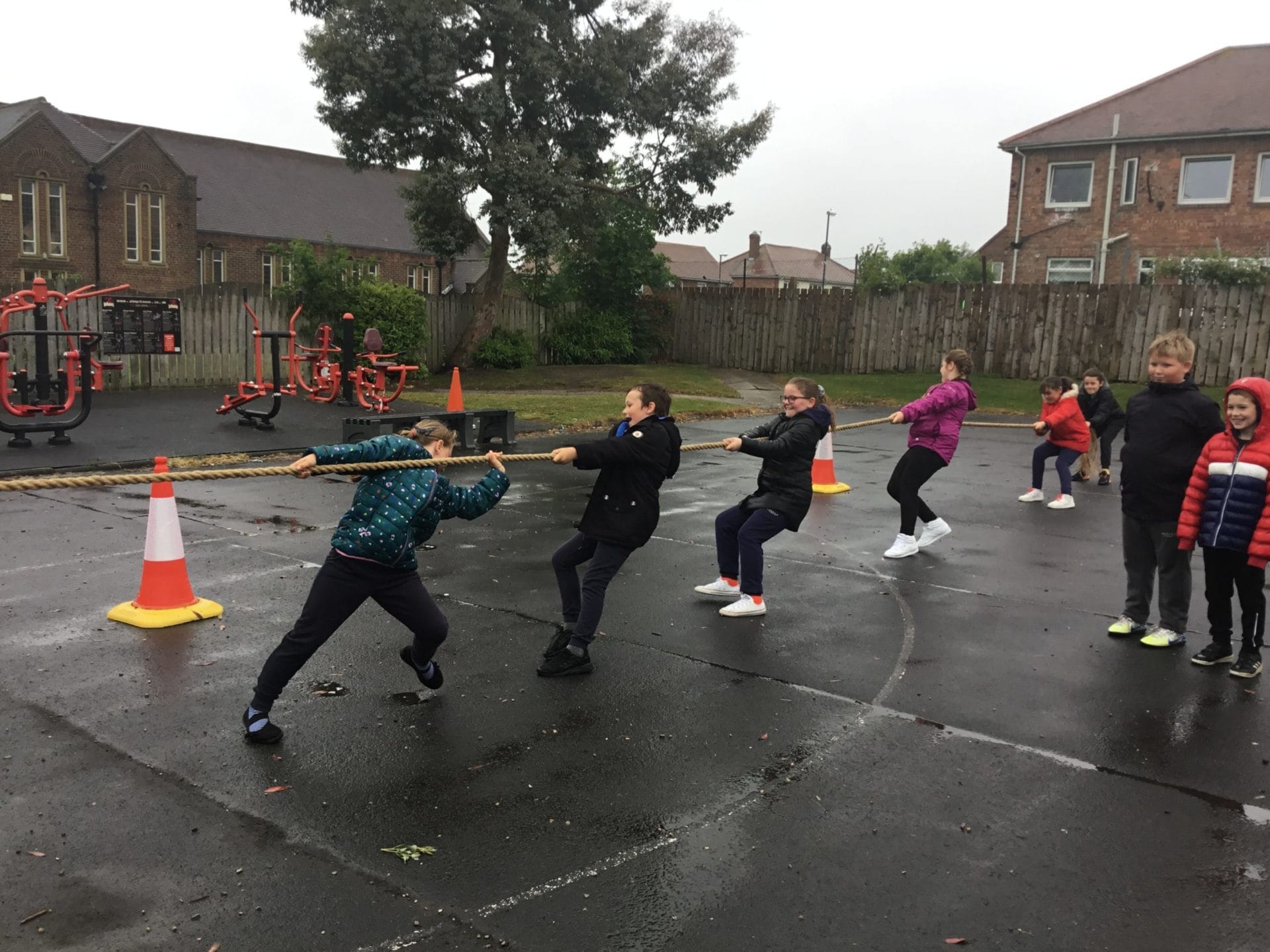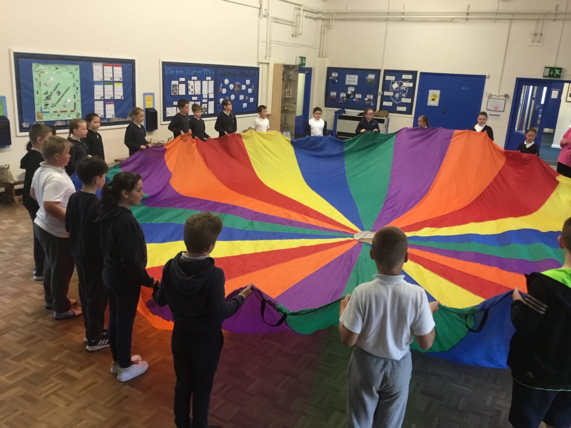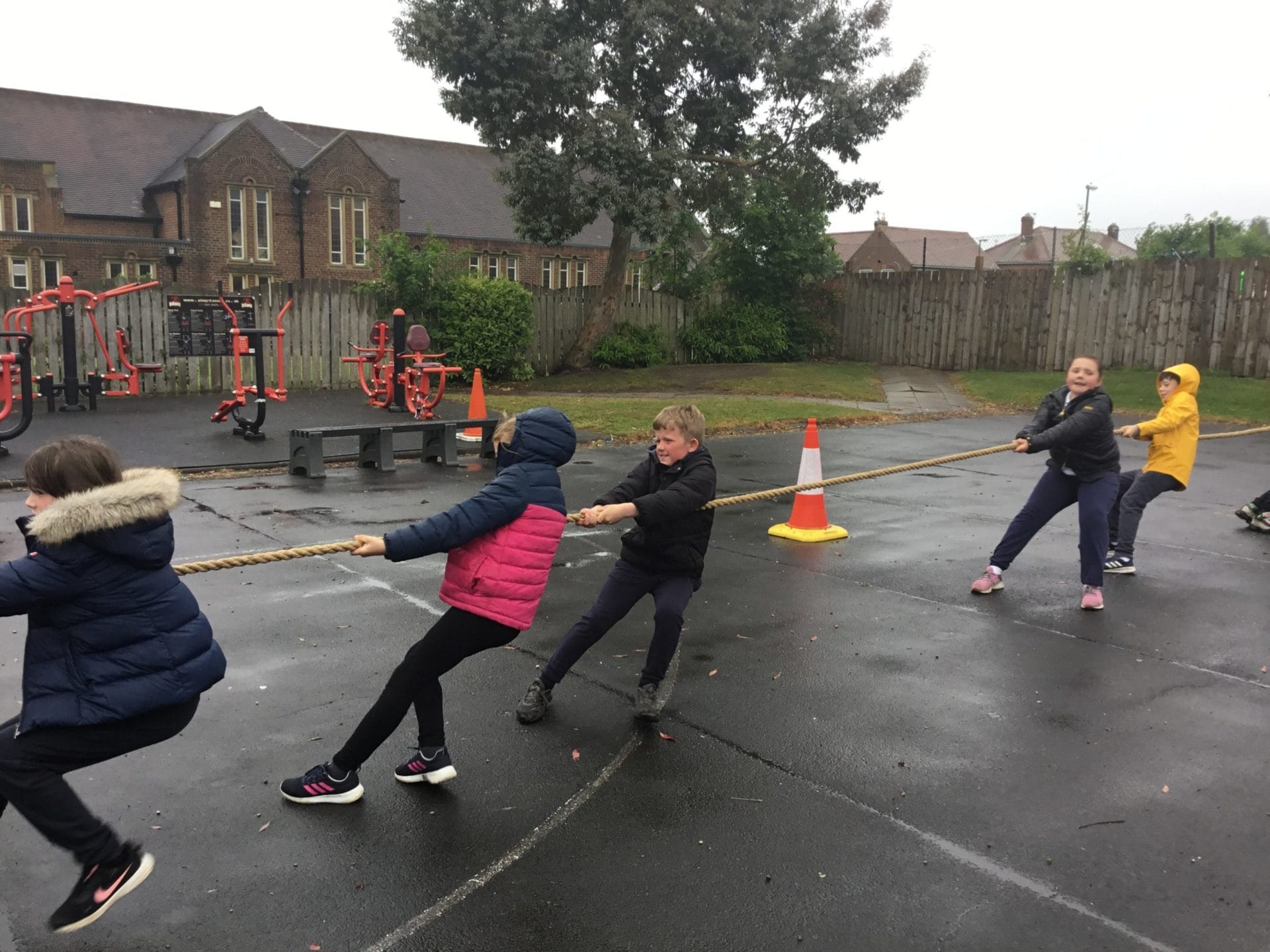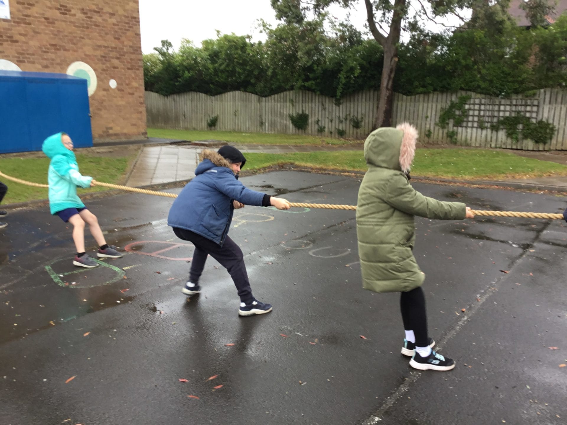 We put lots of effort into tug-of-war. We were eaten by sharks and cats when we were under the parachute and then we all disappeared!