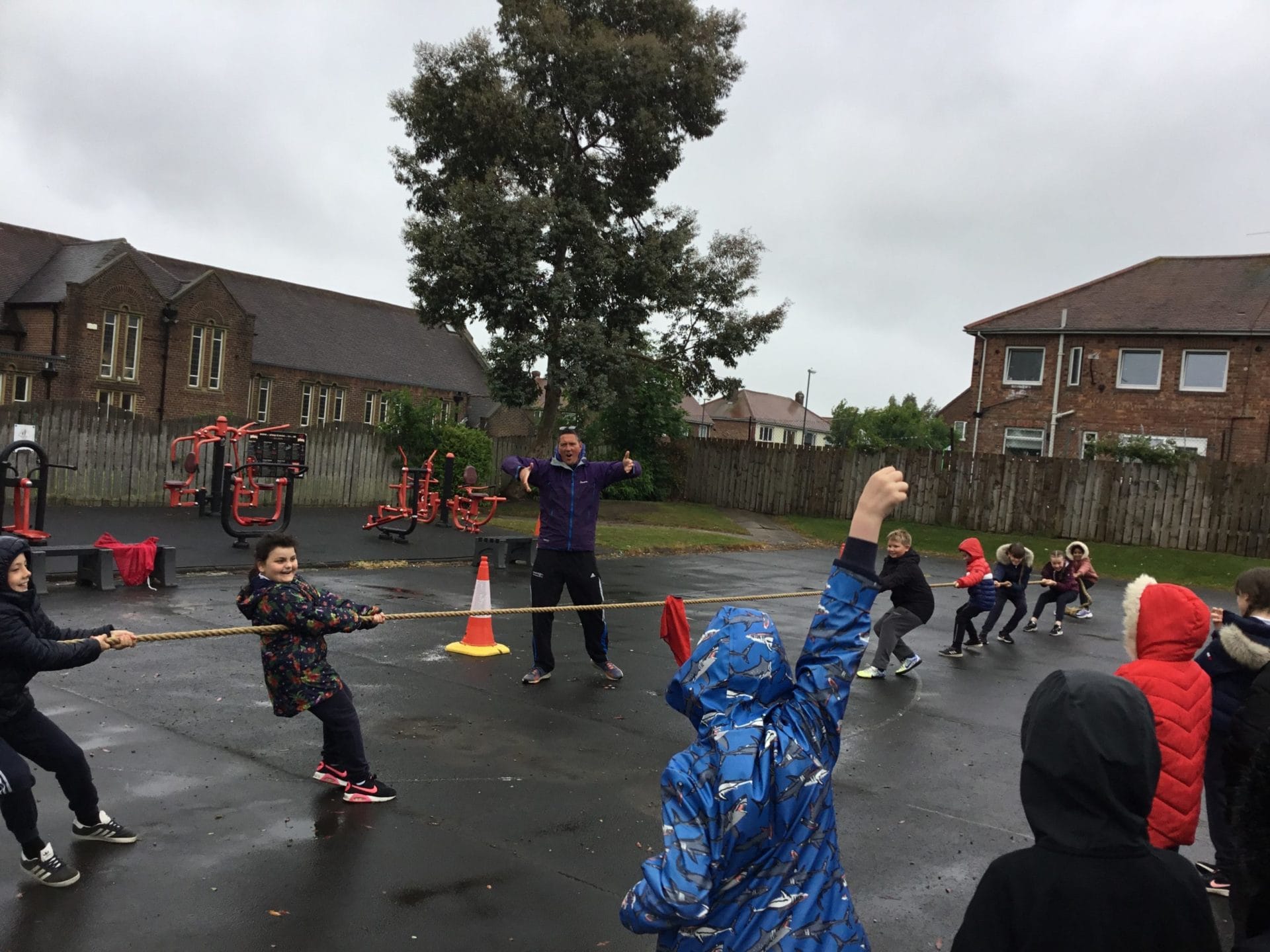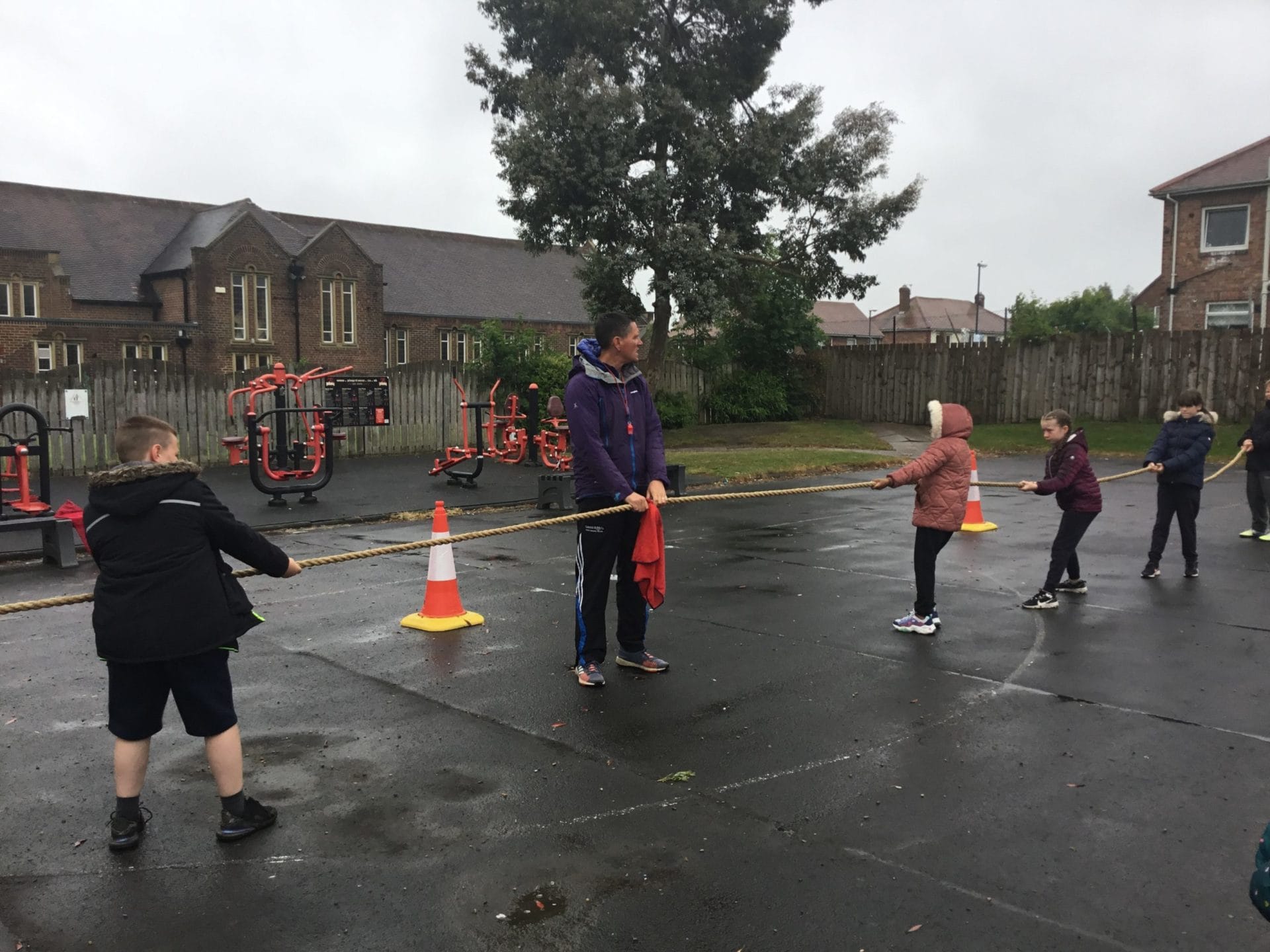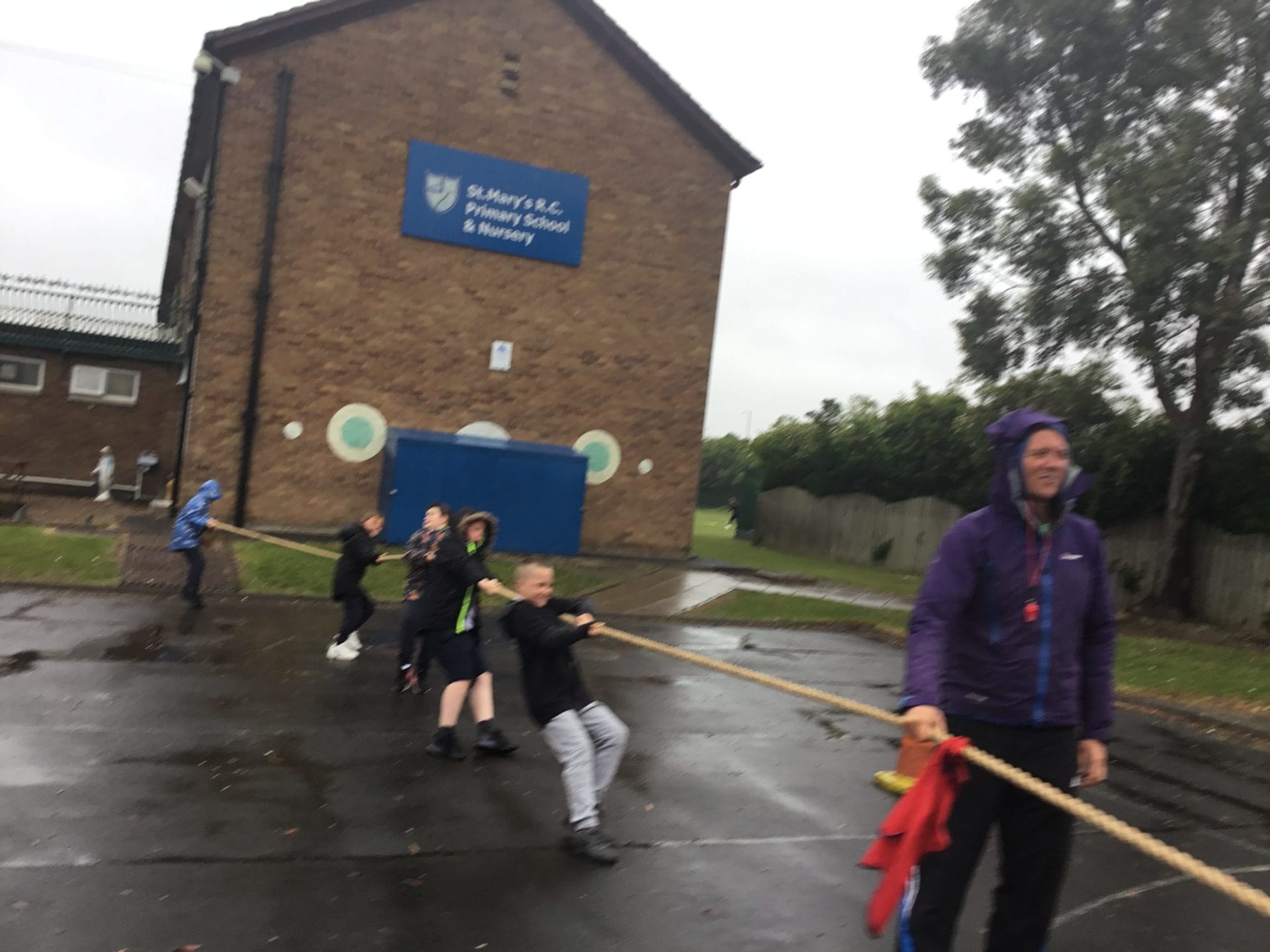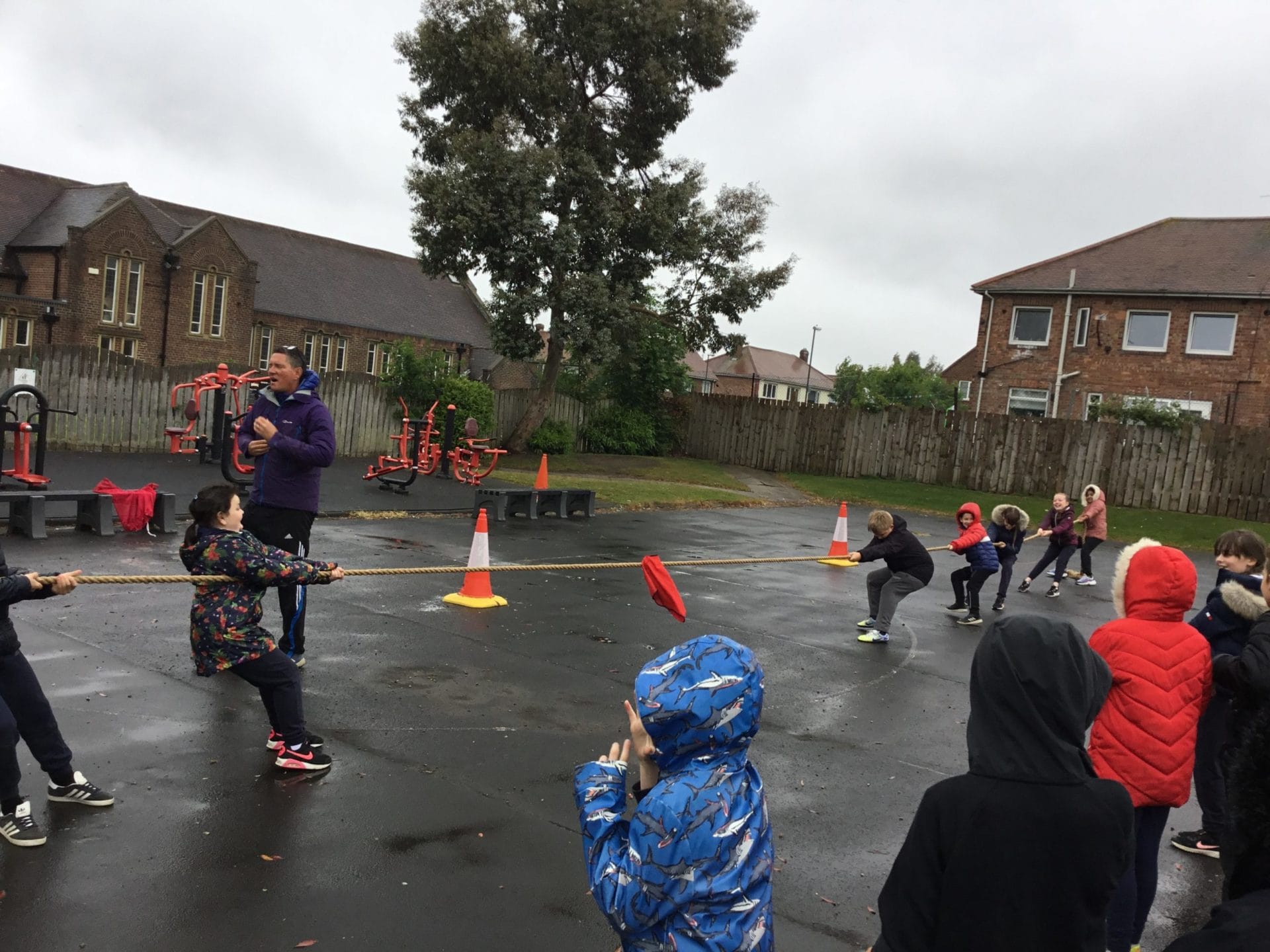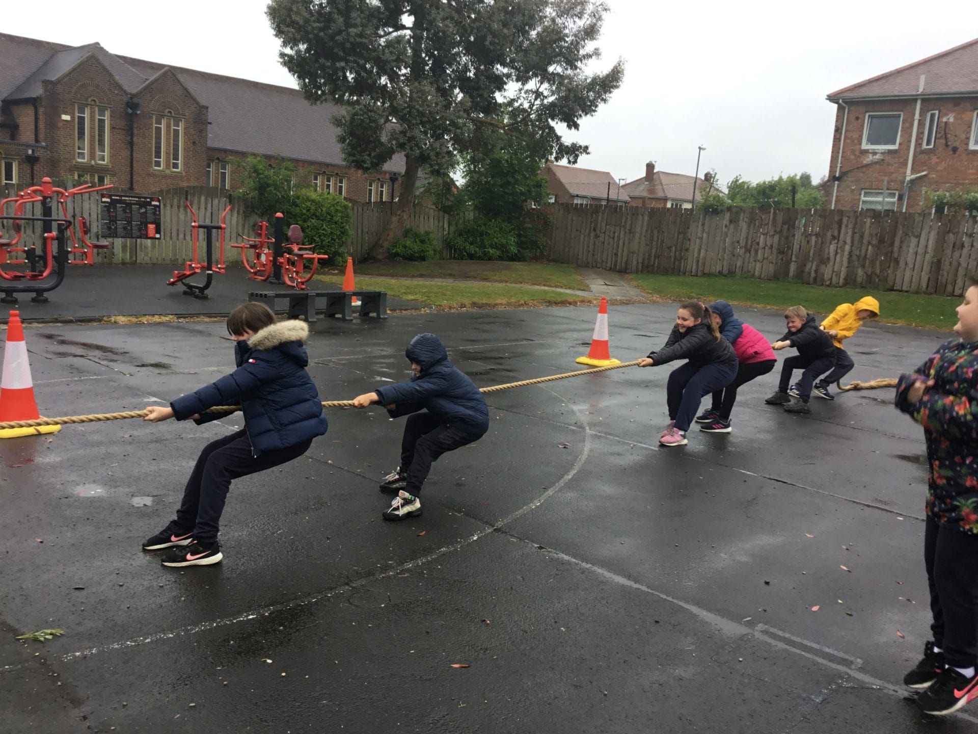 We put lots of effort into tug-of-war. We were eaten by sharks and cats when we were under the parachute and then we all disappeared!
