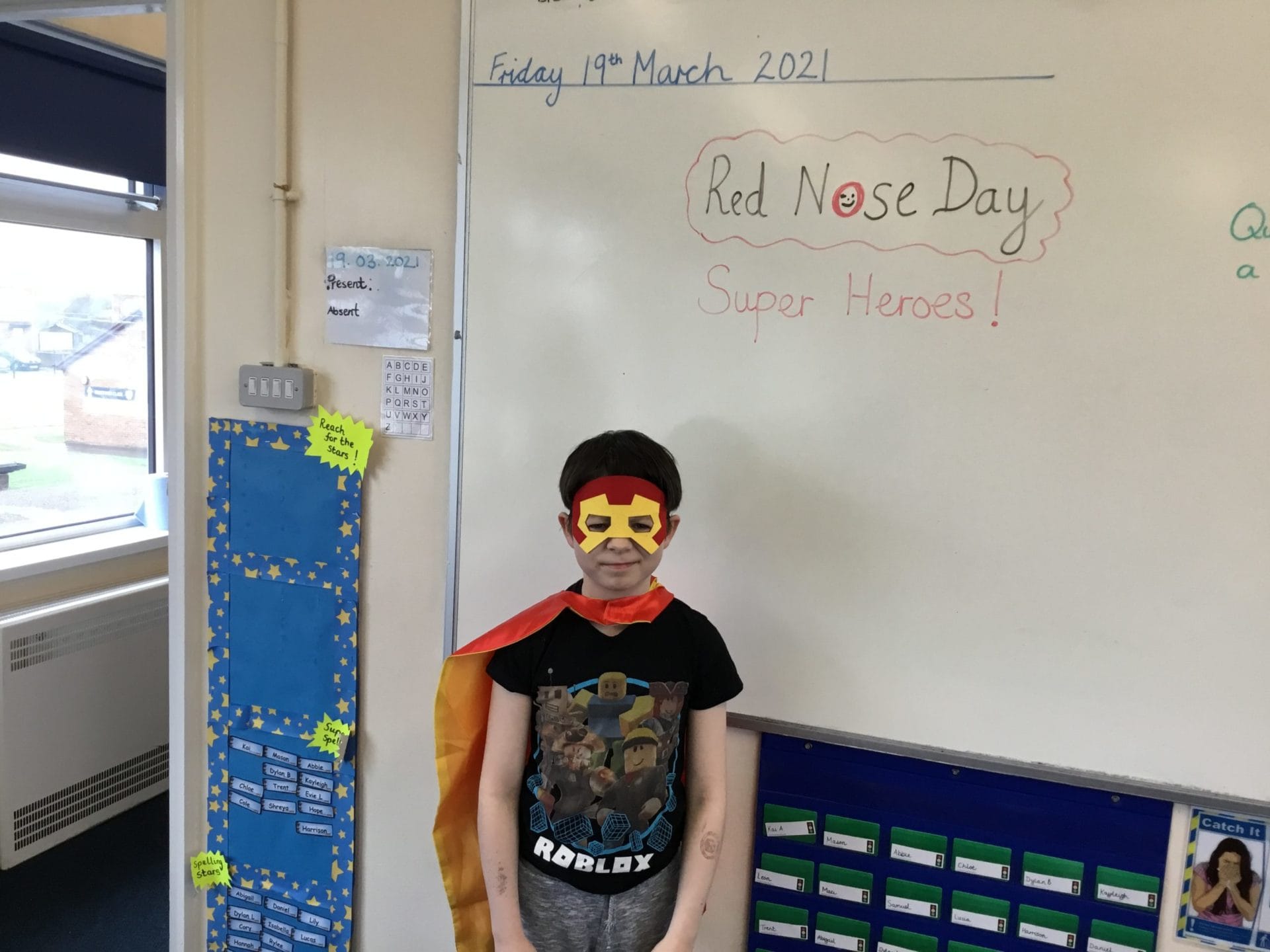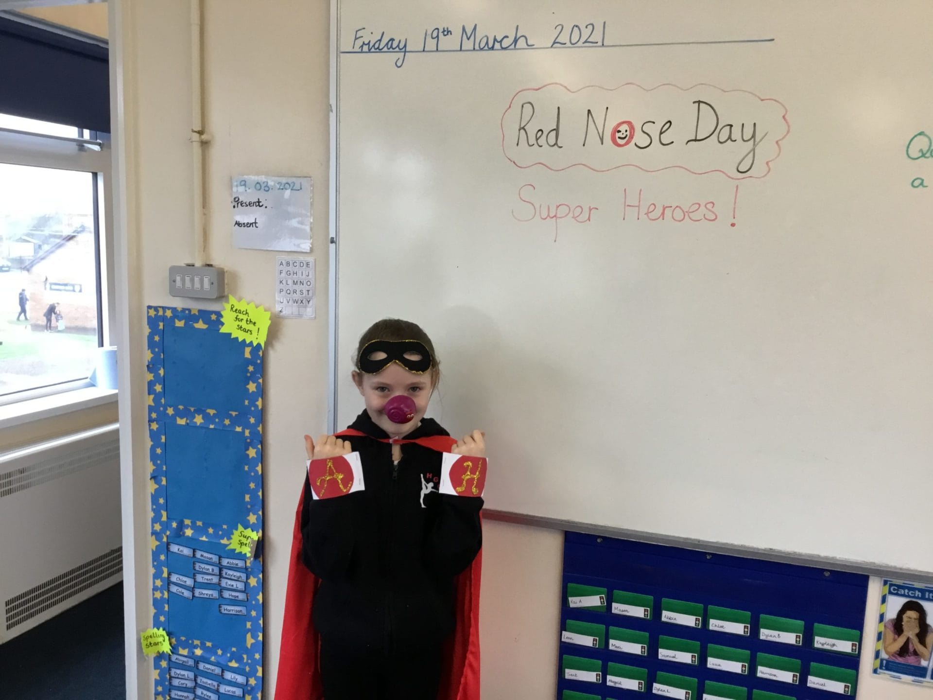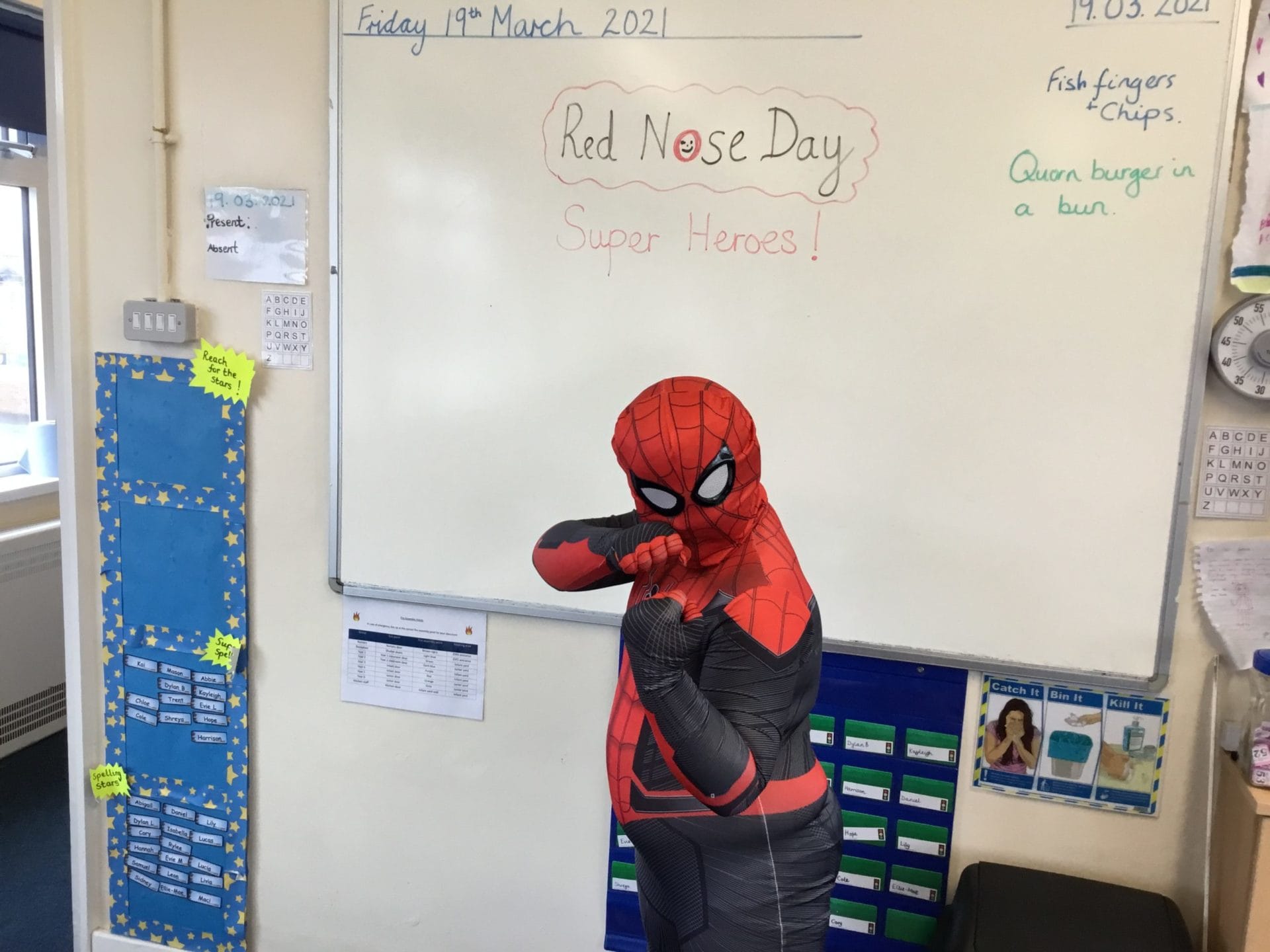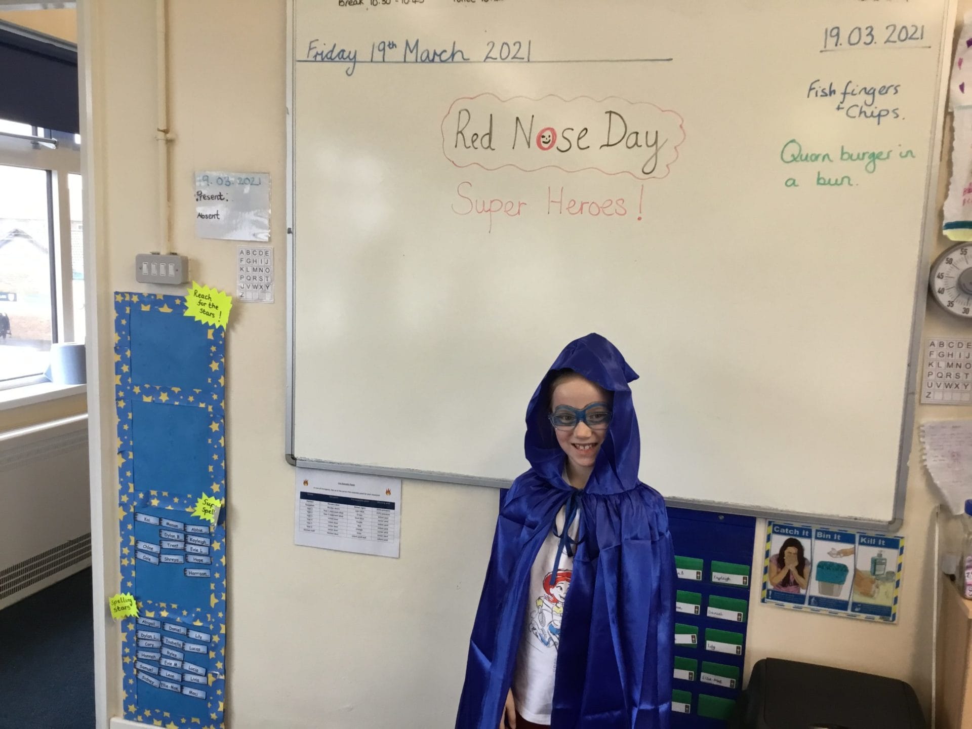 Today to celebrate ‘Red Nose Day’, we dressed as superheroes.