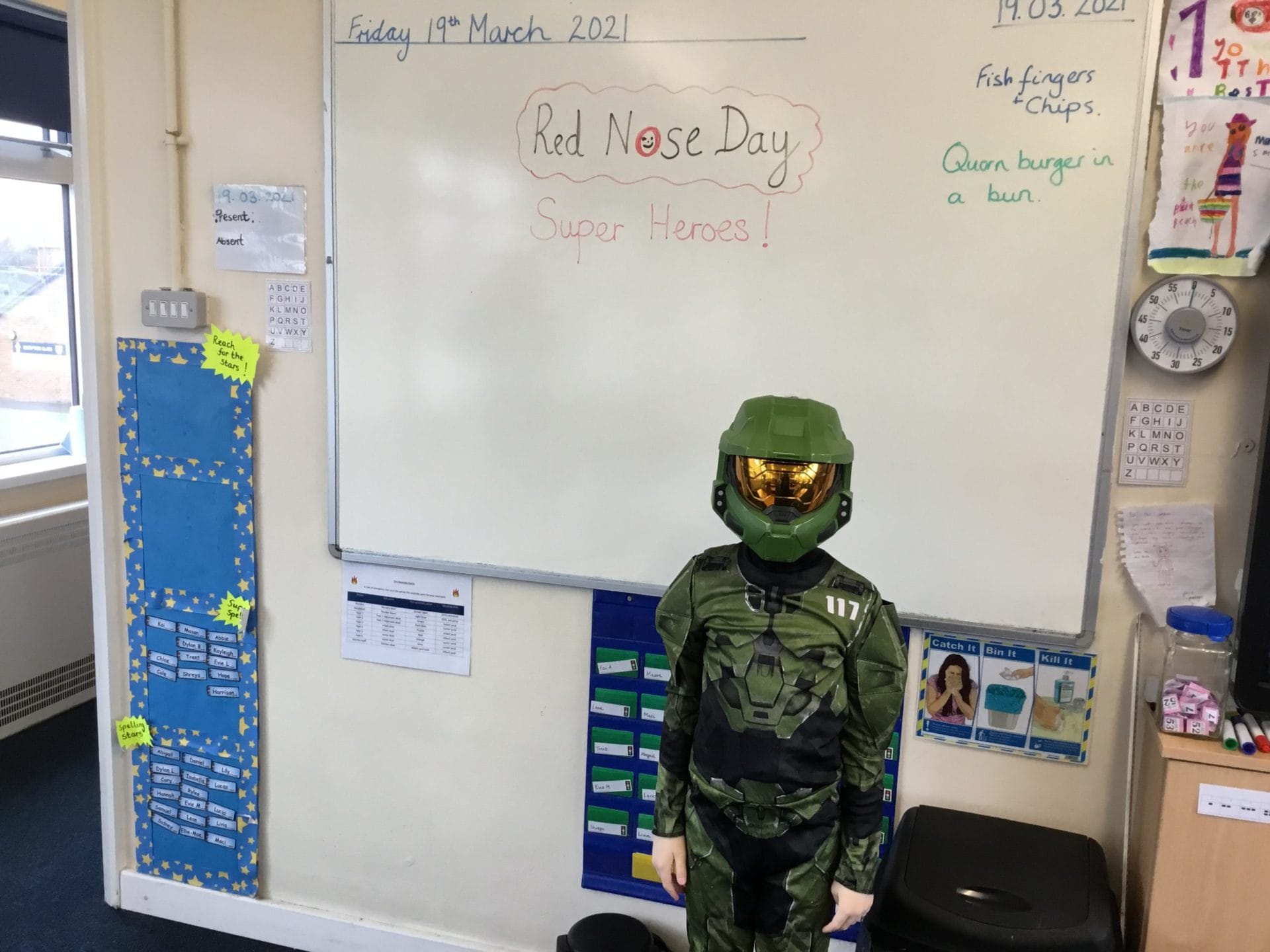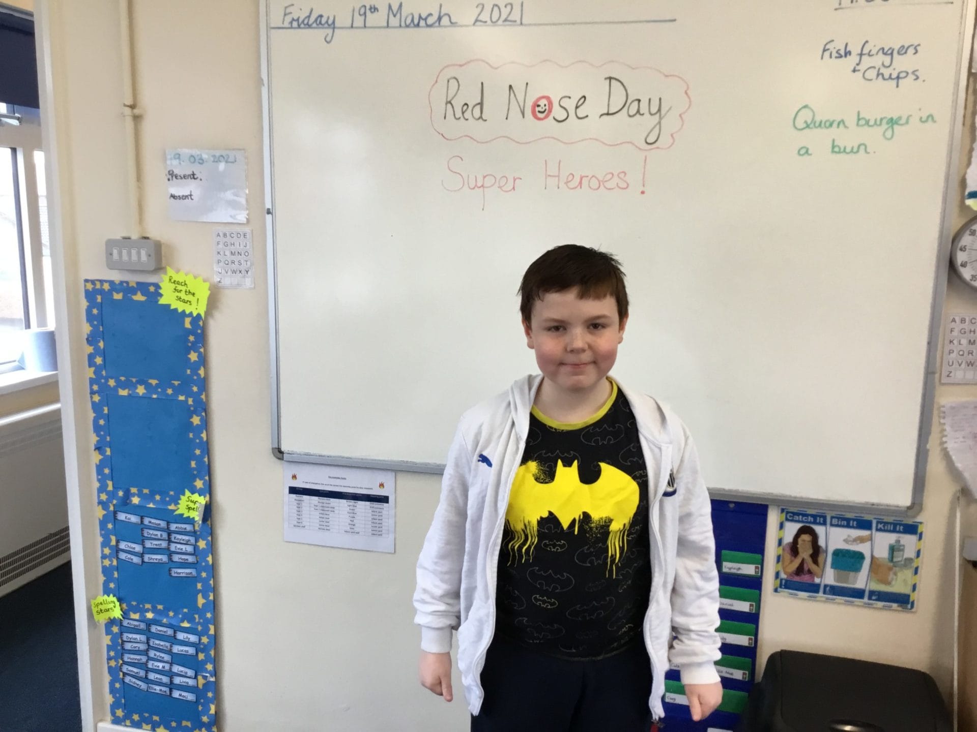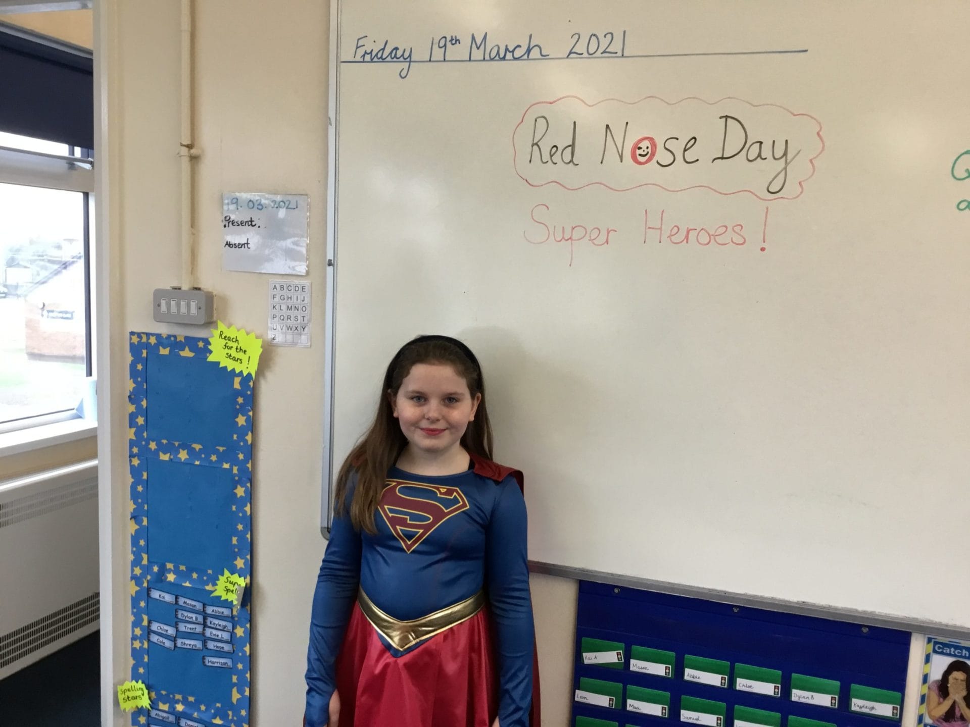 Today to celebrate ‘Red Nose Day’, we dressed as superheroes.
