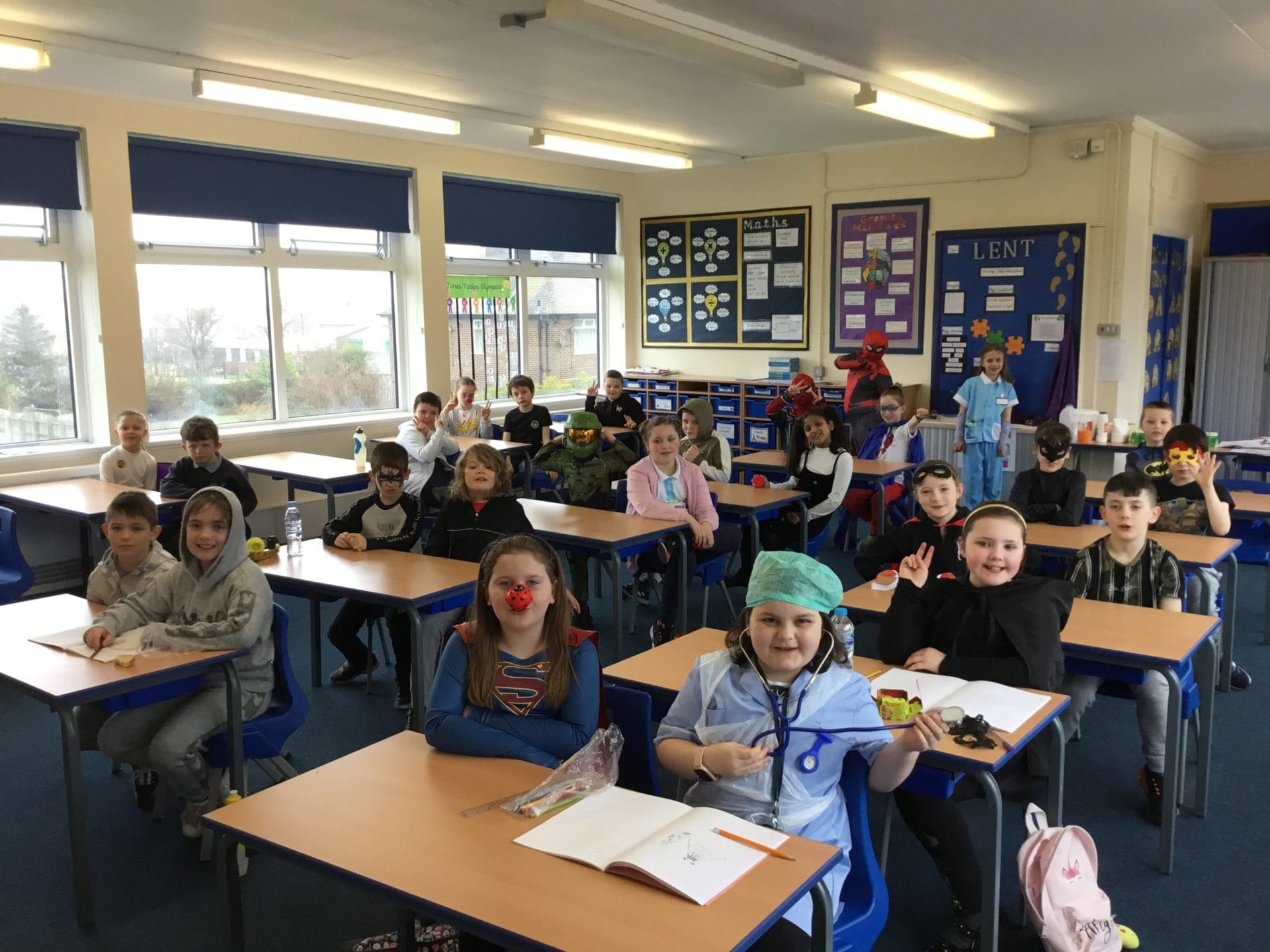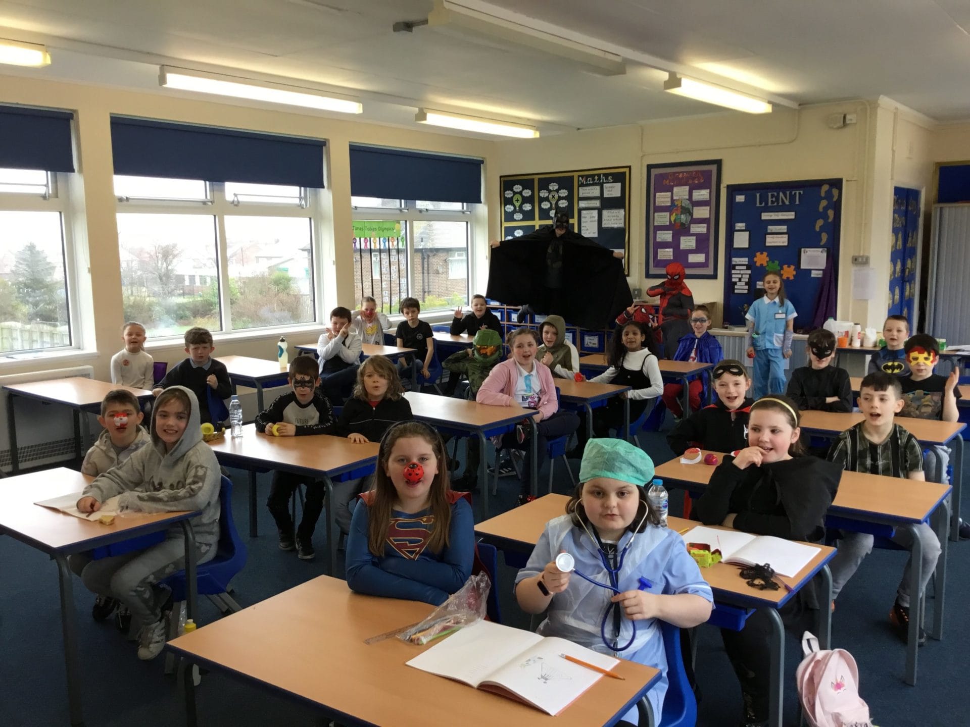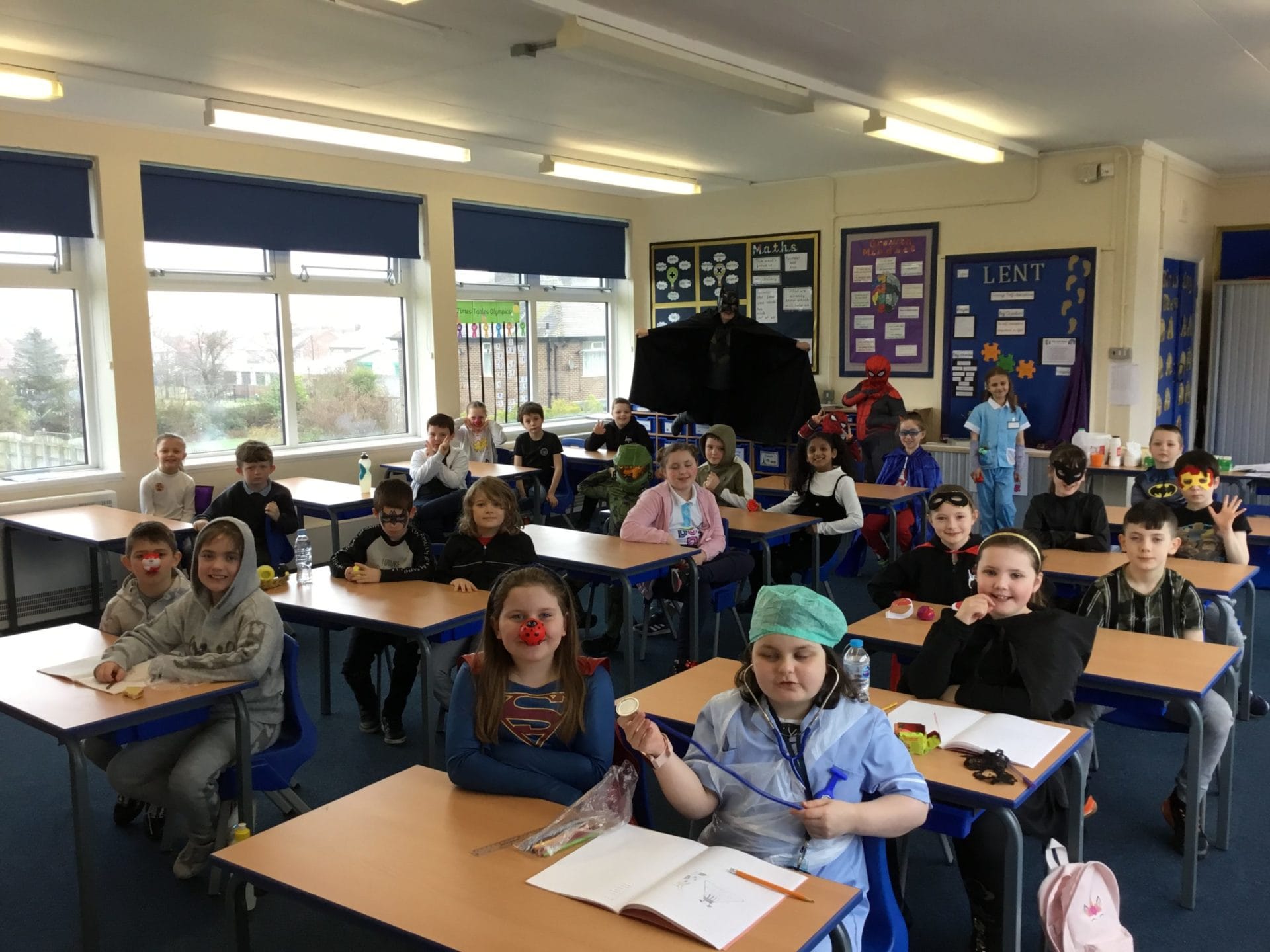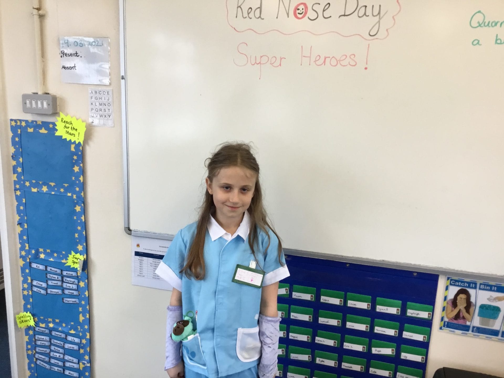 Today to celebrate ‘Red Nose Day’, we dressed as superheroes.