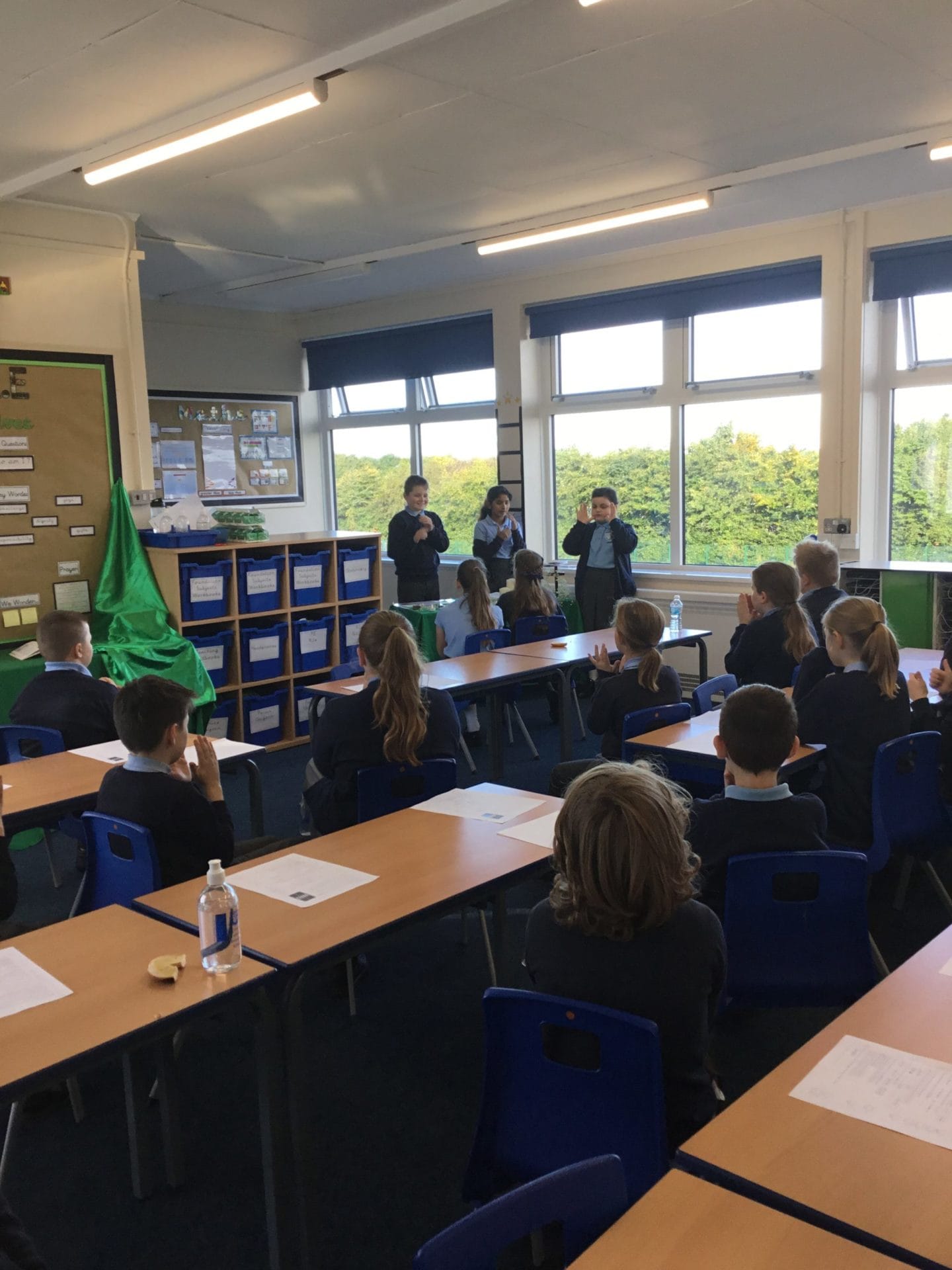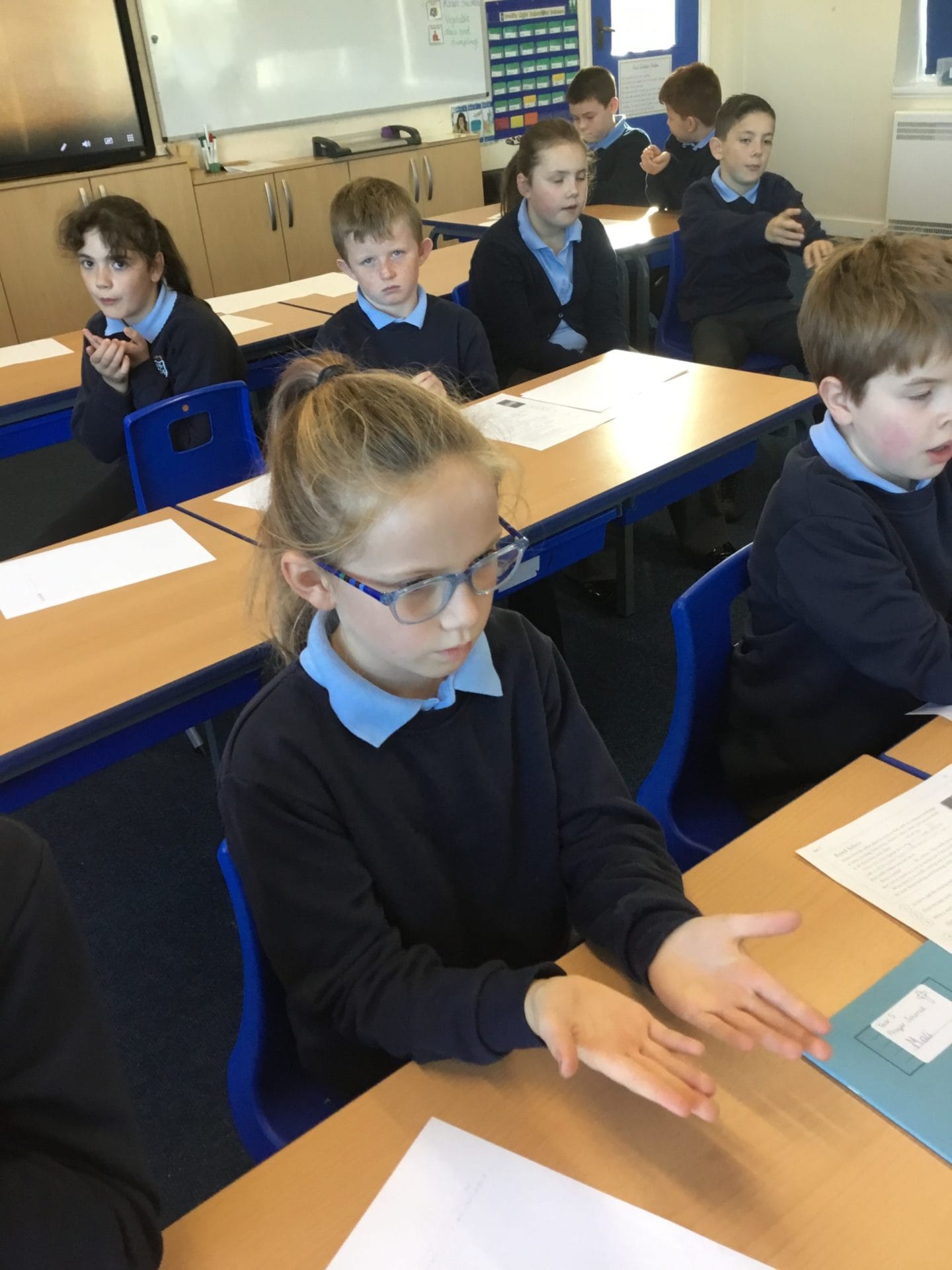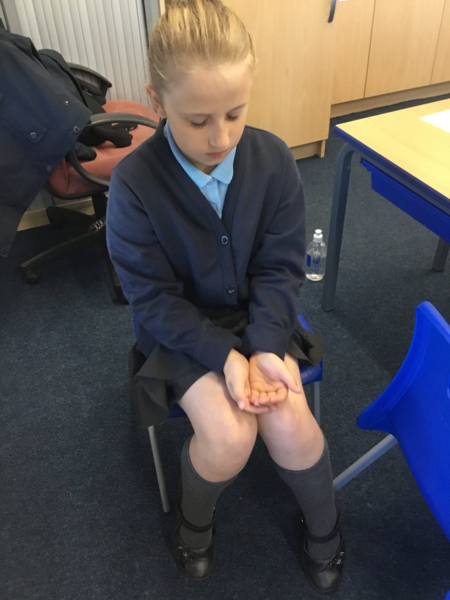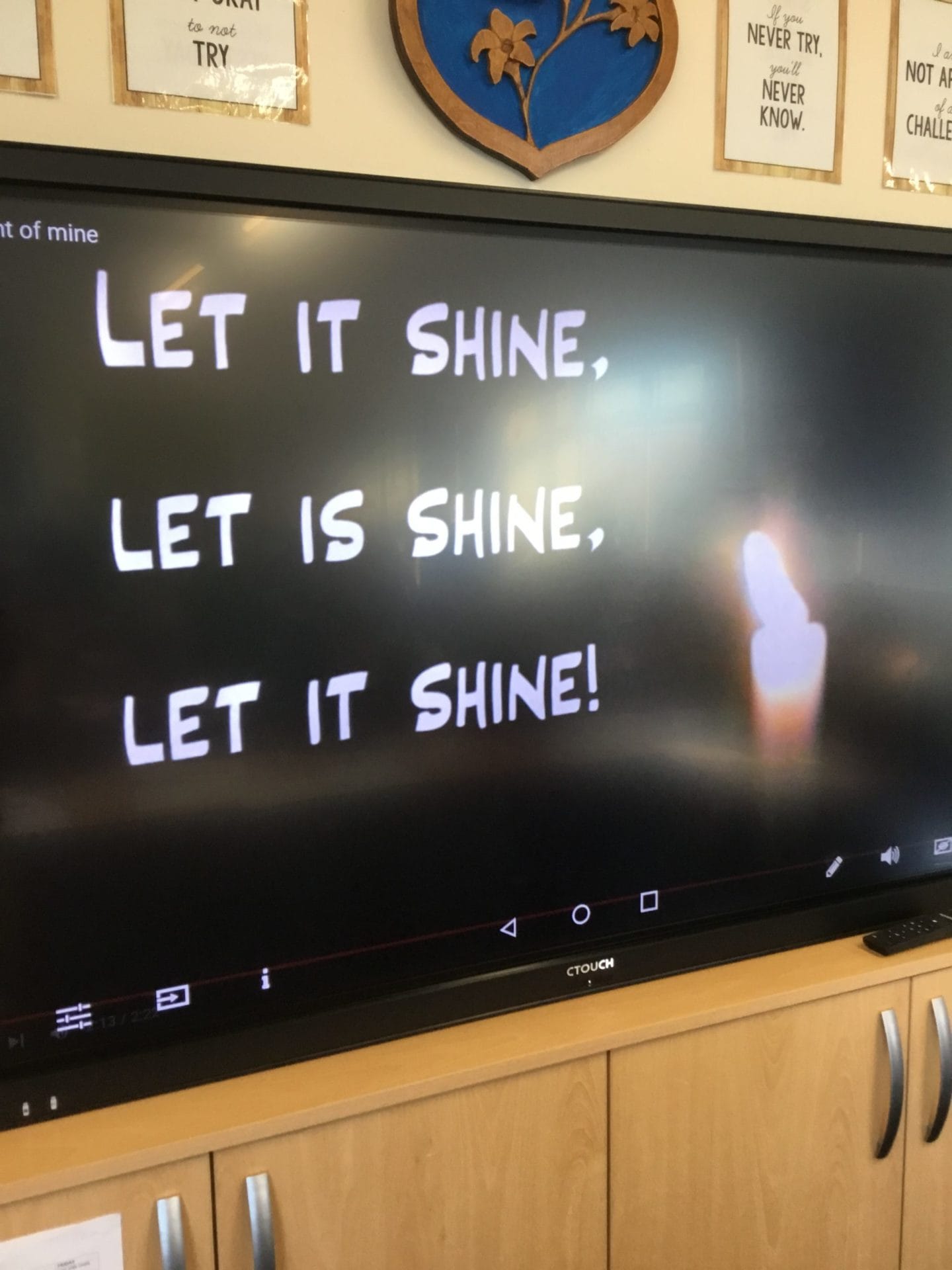 Today Shreya, Kayleigh and Lucas led our class liturgy. We sang ‘Gather’ to start and come together. Lucas read a reading from Matthew 7: 1-5 and we reflected on the word. The children were asked to place both hands together in a bowl shape and think of a sad or scary memory. They then blew their hands to blow the memory away. We celebrated by singing the hymn ‘This little light of mine.’