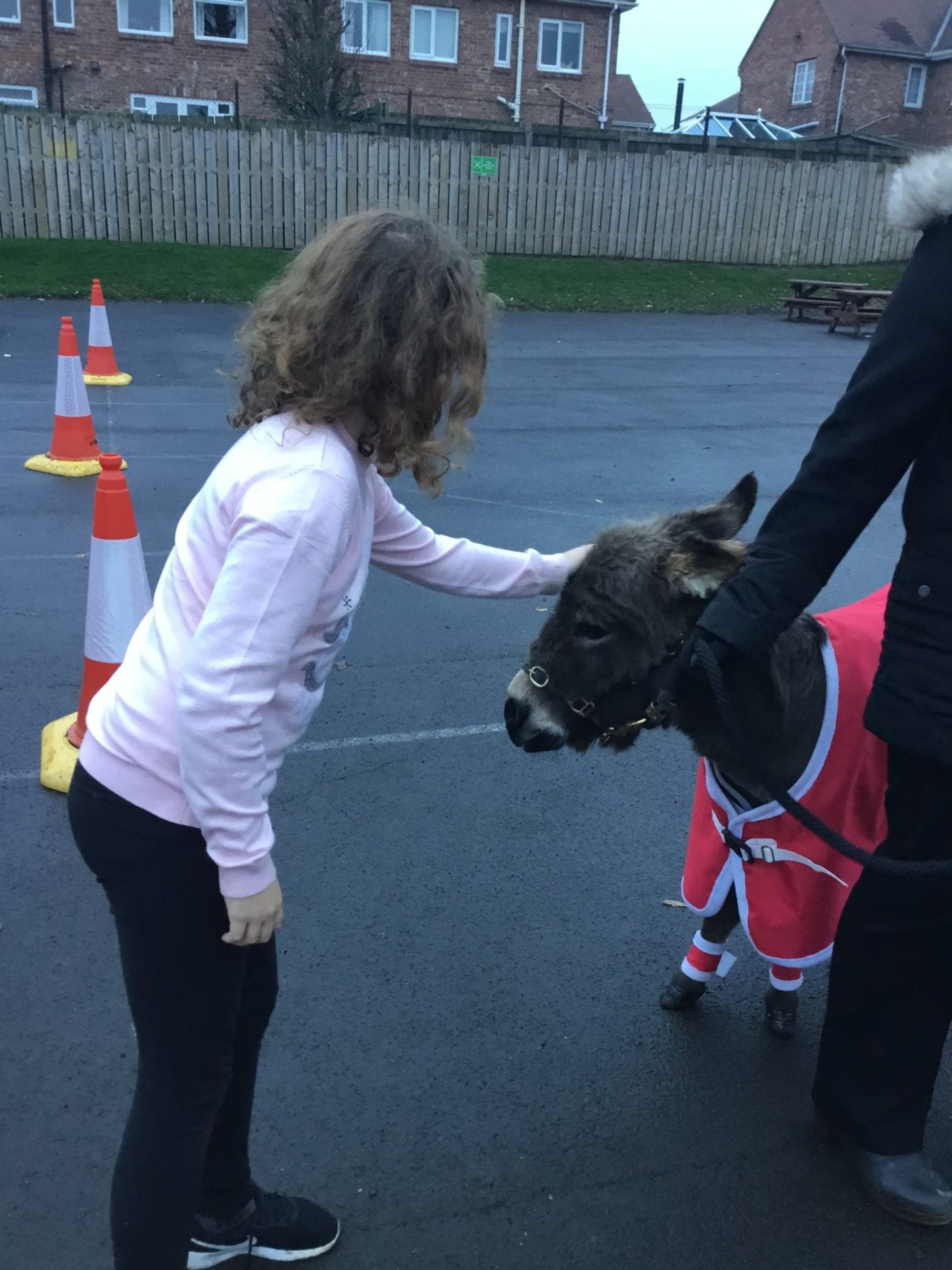 Today, Year 5 had the pleasure of meeting four-year-old Teddy, the miniature donkey. He was so well behaved and cute. He is actually fully-grown and will not grow any bigger meaning he can’t be rode on.