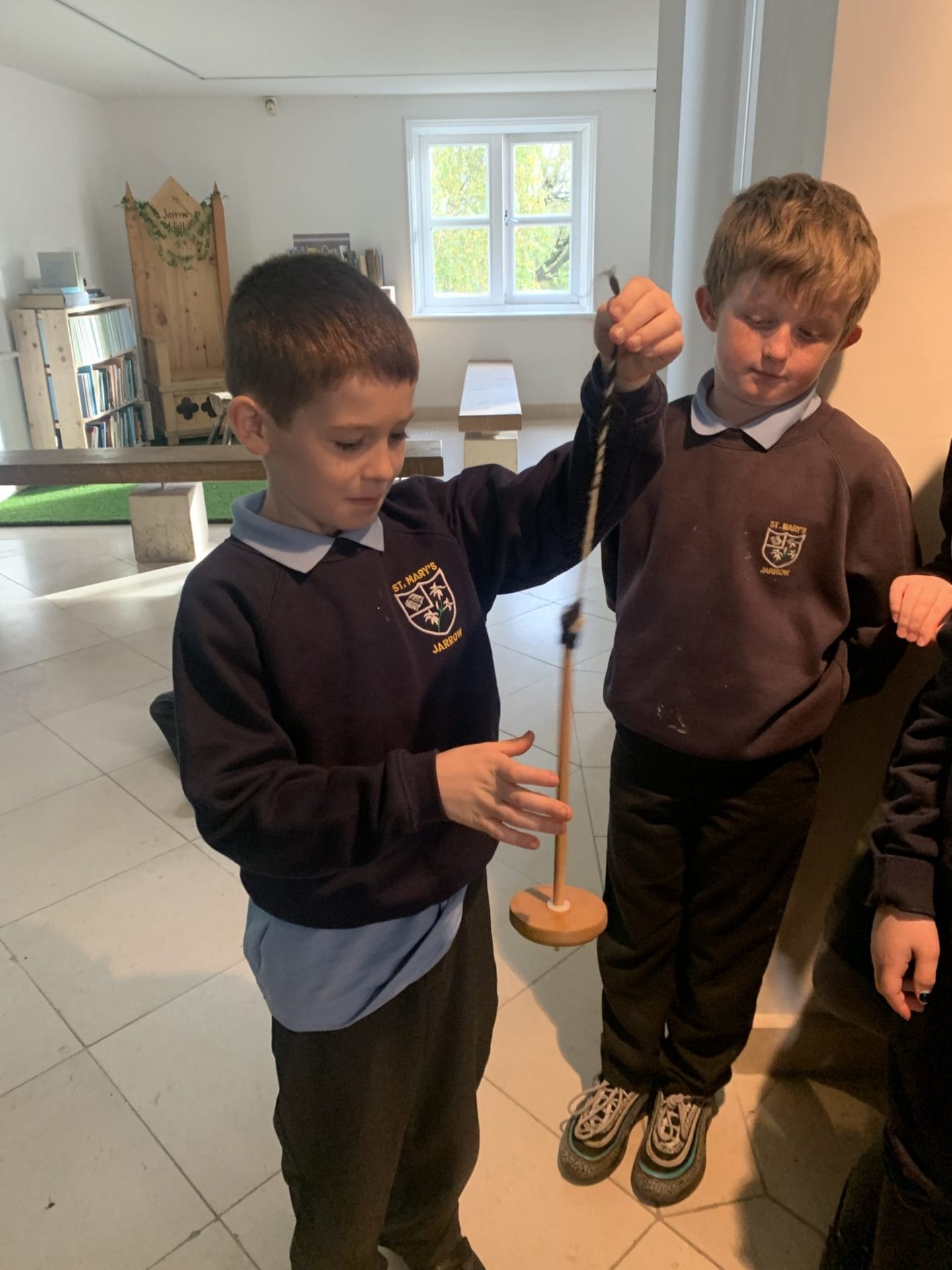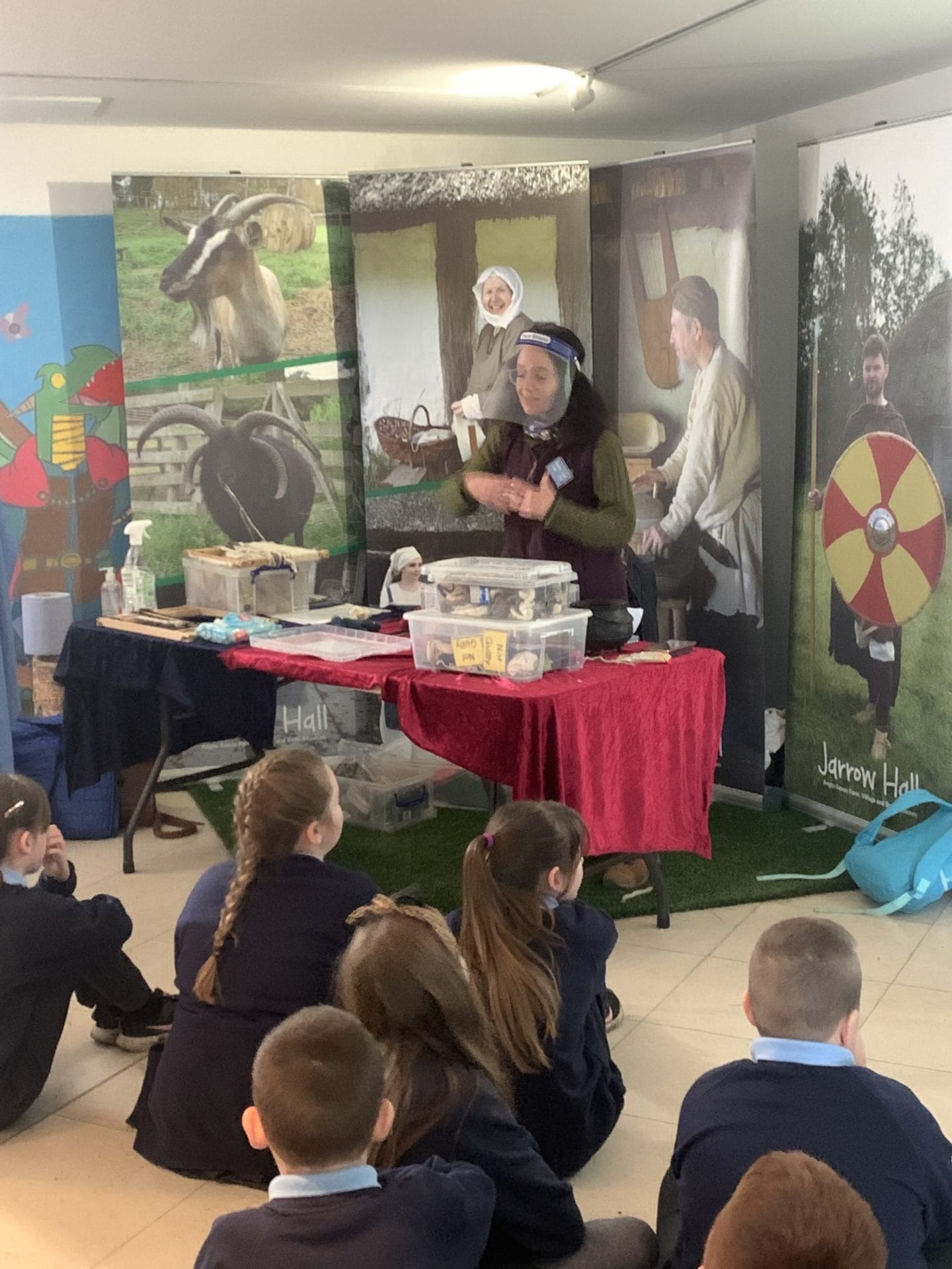 Today the children had an amazing time at Jarrow Hall where they learned all about Anglo-Saxon life. They started the morning learning about Anglo-Saxon farming and what the animals were used for. They were shocked that the Anglo-Saxons rarely ate meat and that the animals weren’t only used as a food source. They then had the chance to explore a replica Anglo-Saxon village. They listened to the story of ‘Beowulf’ which was told brilliantly by Catherine who was our guide and educator for the day. On the afternoon, the children were shown how clothing was made using the fleece from the sheep. They even had opportunities to try weaving themselves! Finally, they found out about crime and punishment in Anglo-Saxon times.