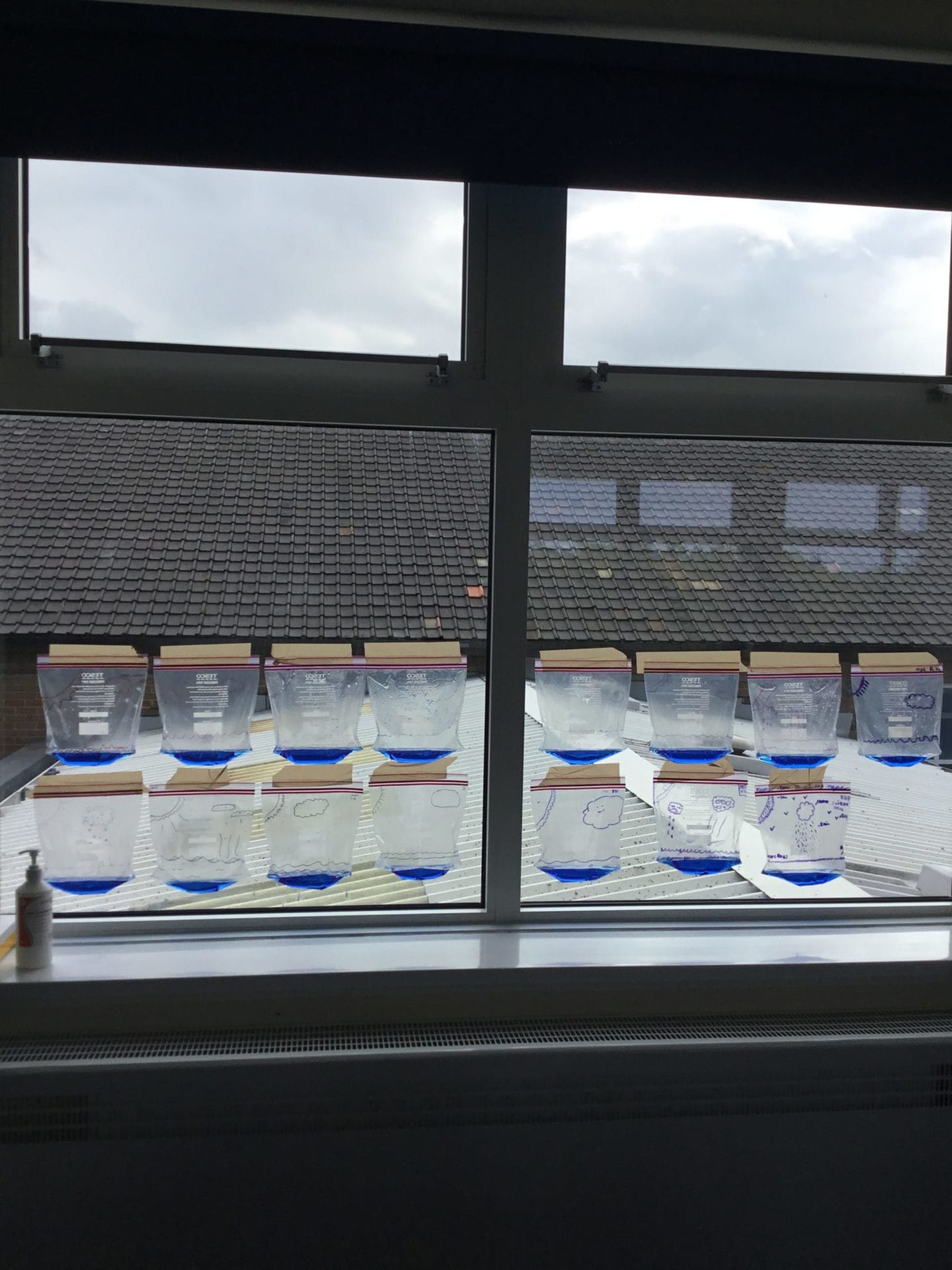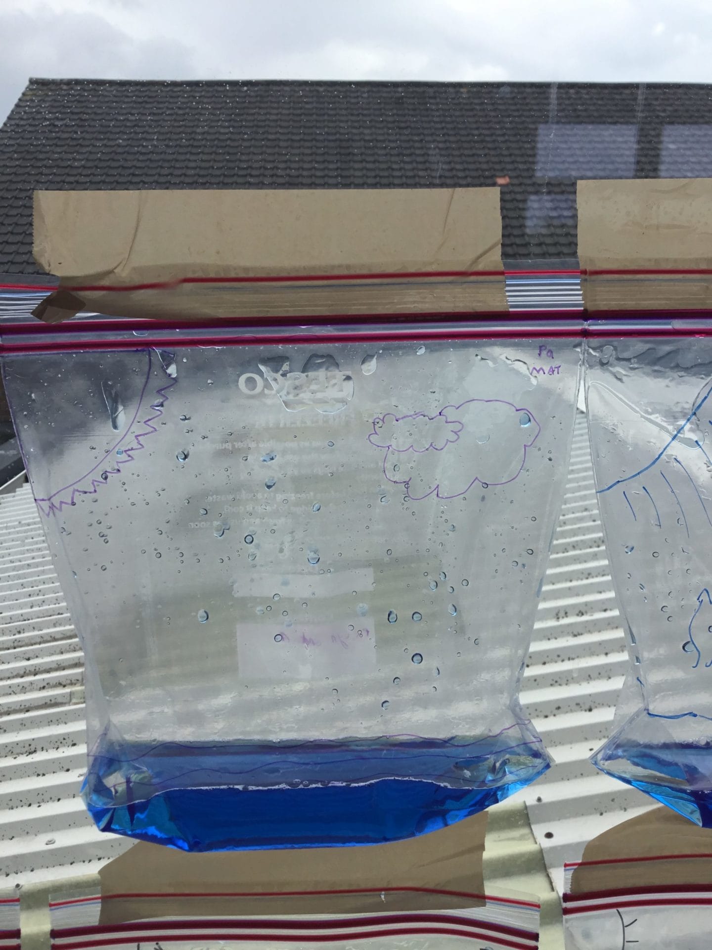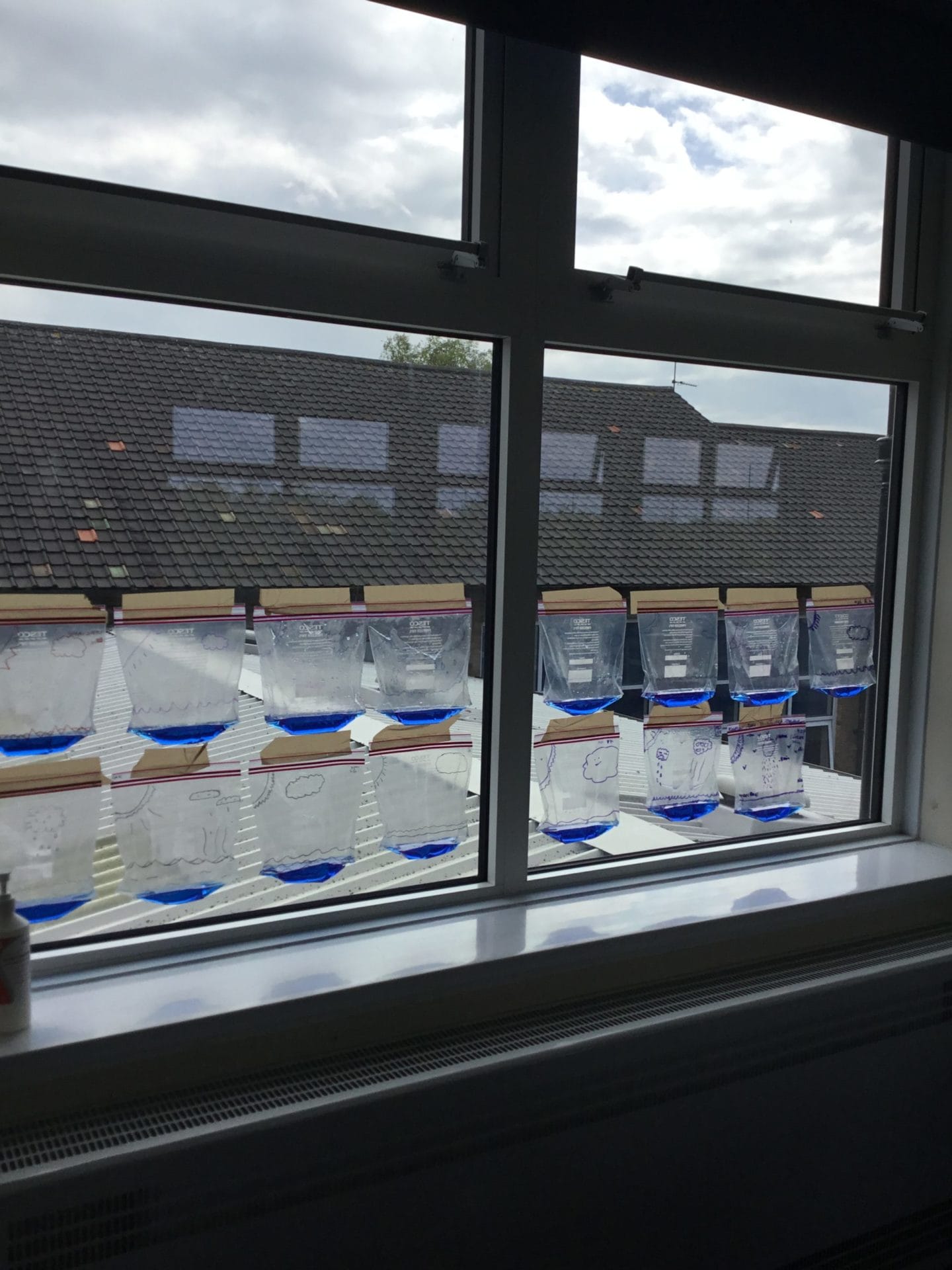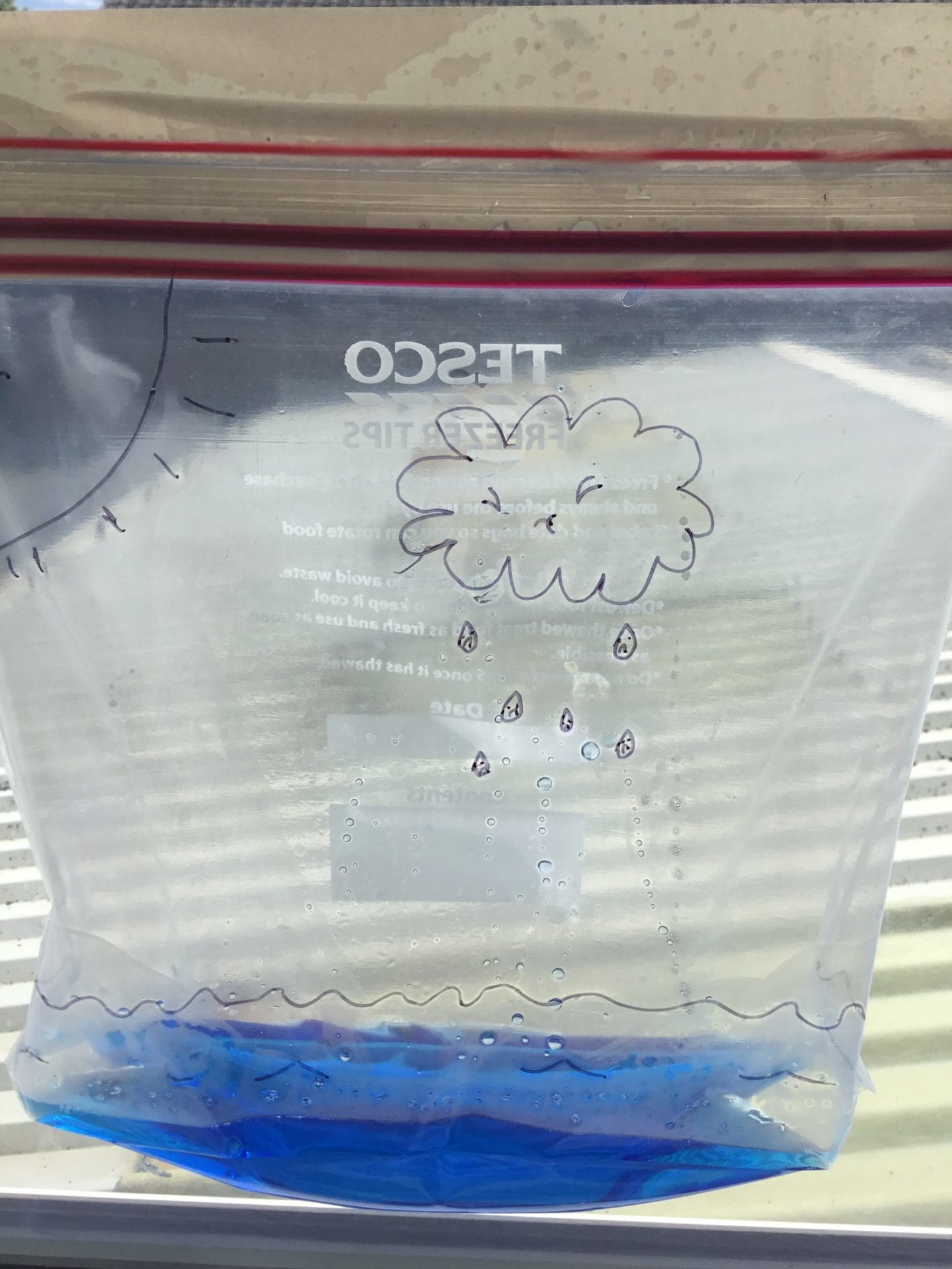 As part of Water Wise Week, the children created the water cycle in a bag to see the processes involved. Firstly, the children used permenant markers to draw a sky in the upper half of your plastic bag. Include clouds and the sun, as they are important elements to the water cycle. Next, the added blue food colouring to water and carefully poured the water into the plastic bag and zip it closed. Once the water was added to the bag and sealed it up, it’s was time to hang it up on a window! It was important to pick a window that gets a lot of sunshine for best results. Finally it was time to observe. Eventually, droplets of water started sticking to the side of the bag. Some of these were up high (in the clouds) while other droplets will be on their way back down (like rain). Why is this happening? It’s because the water in the bag is being heated up against the sunny window. That water turns into a gas through the process called evaporation. In nature, evaporated water vapour goes into the atmosphere, but in our bag, it has nowhere to go, so it ends up sticking to the sides of the bag, turning back into a liquid as condensation. That condensed water then slides back into the pool of water below as “rain”.