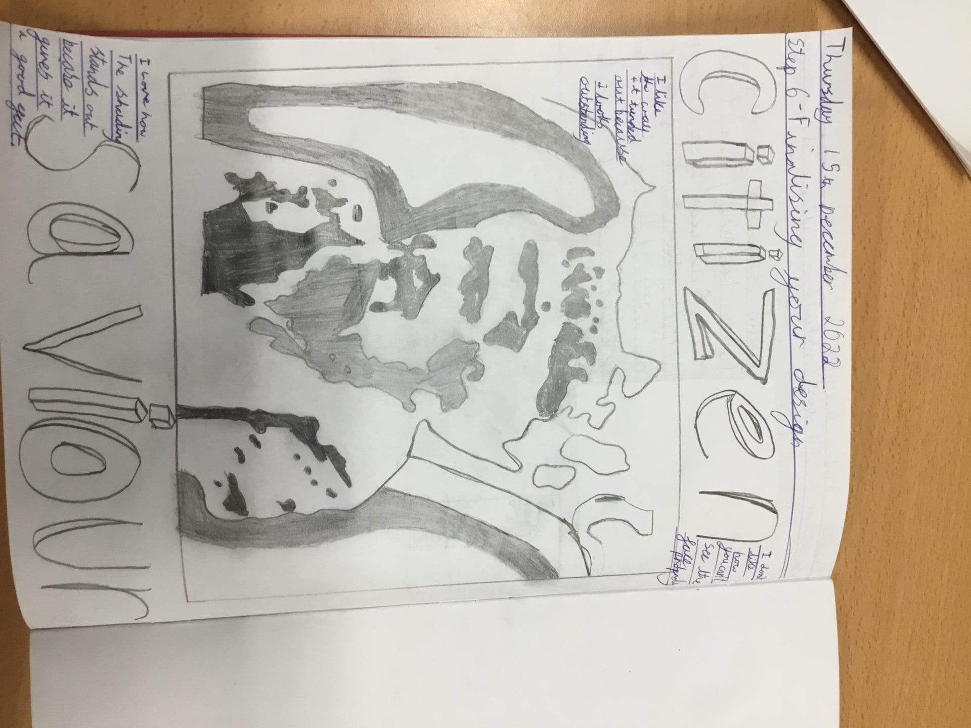 They were encouraged to play around with the composition of their poster and the lettering they used. Finally, they coloured their picture using grayscale. I was so impressed with the level of talent and skill.